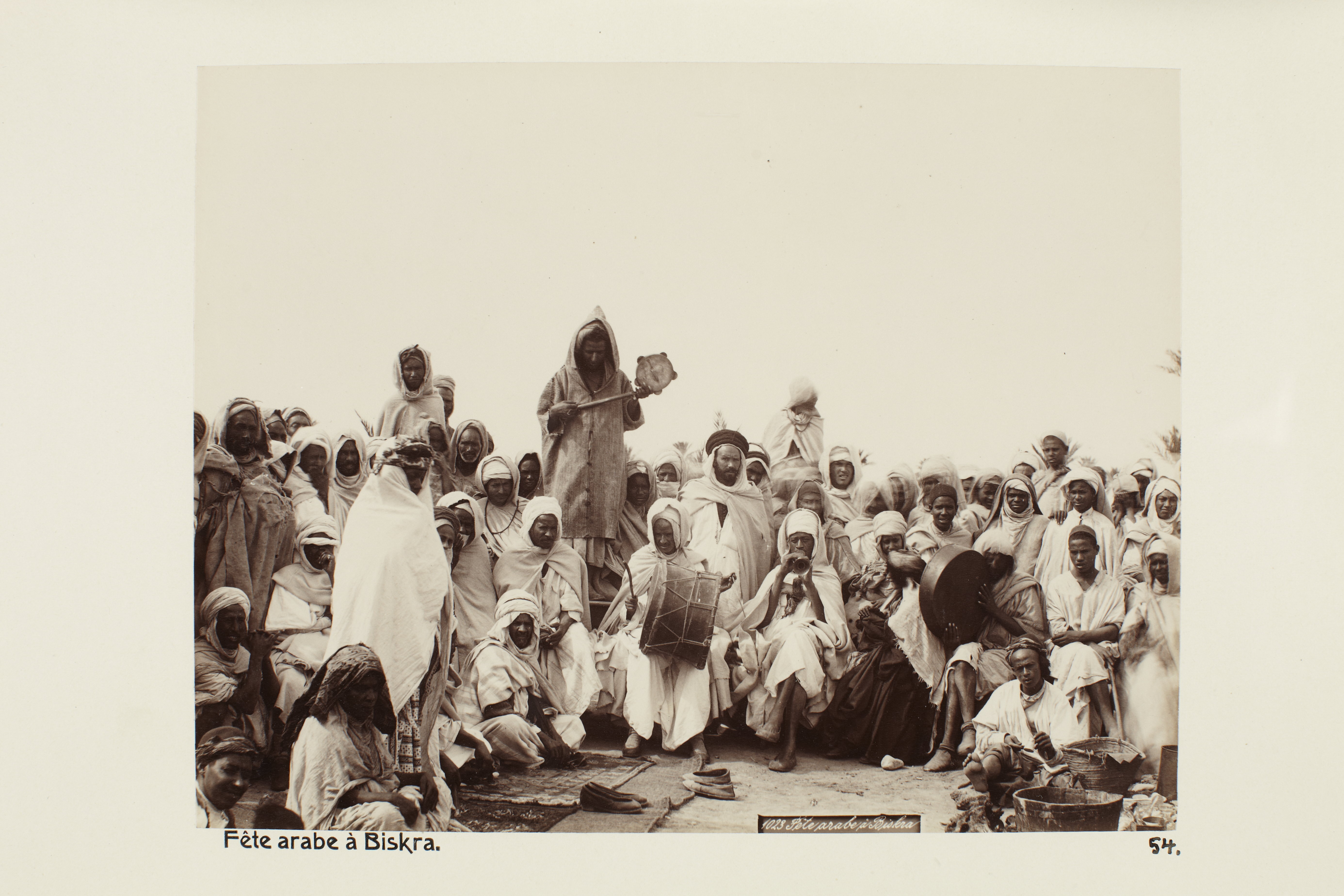 BISKRA, Algeriet. Arabisk fest i Biskra. Foto från resa genom Algeriet och Tunisien samt åter över Schweiz, 11 februari - 19 maj 1889. Samtliga foton i gruppen LXVI:F. är inköpta av Wilhelmina von Hallwyl i Alger, Biskra, Tunis, Constantine, Oran och Blidah vid hennes vistelse i nämnda städer tillsammans med sin make, Walther von Hallwyl, sin mor, Johanna Kempe, f. Wallis, dottern Irma samt fröknarna Caroline Pflaum och Ida Uhse. Uppgifterna kommer från fröken Ida Uhses reseanteckningar.