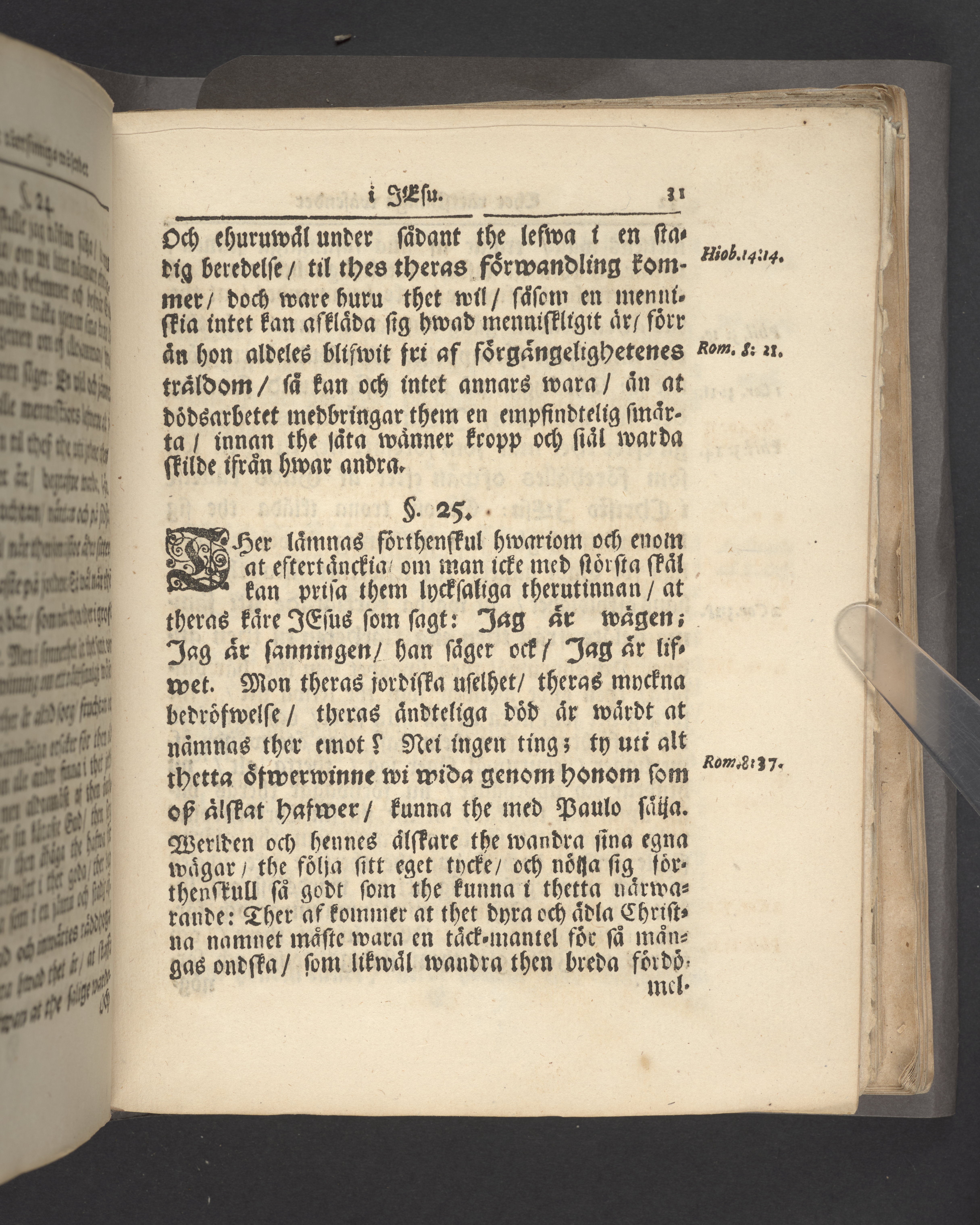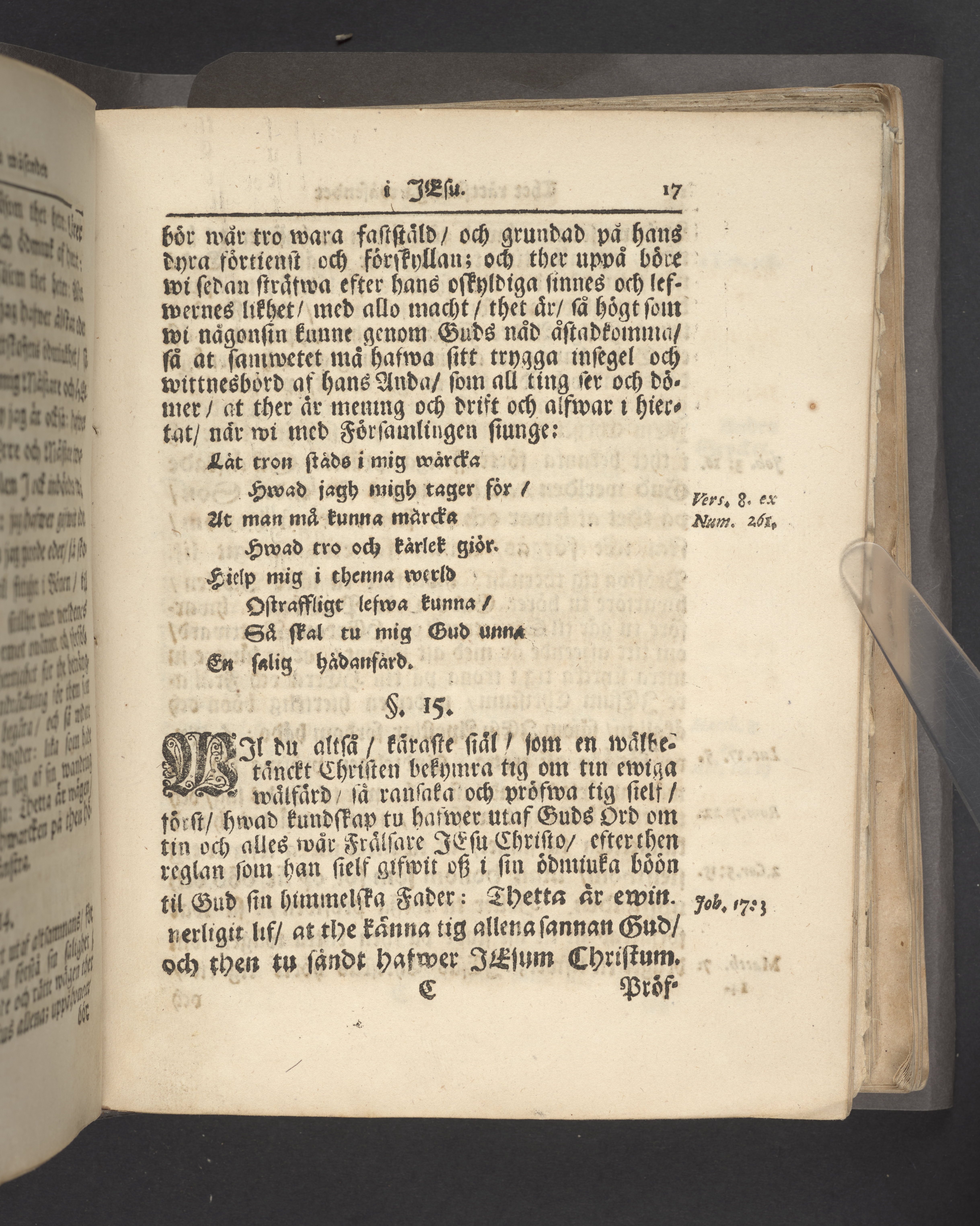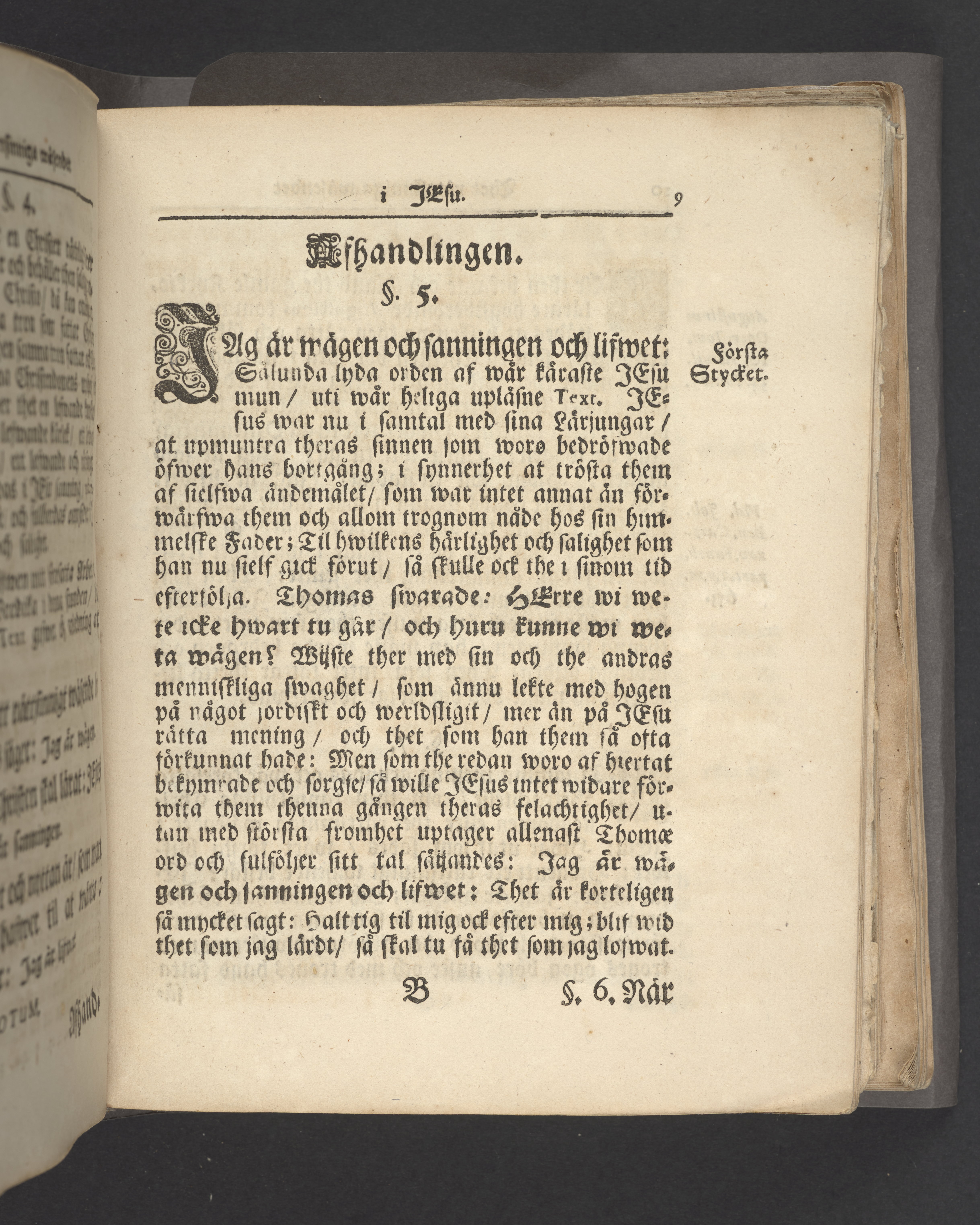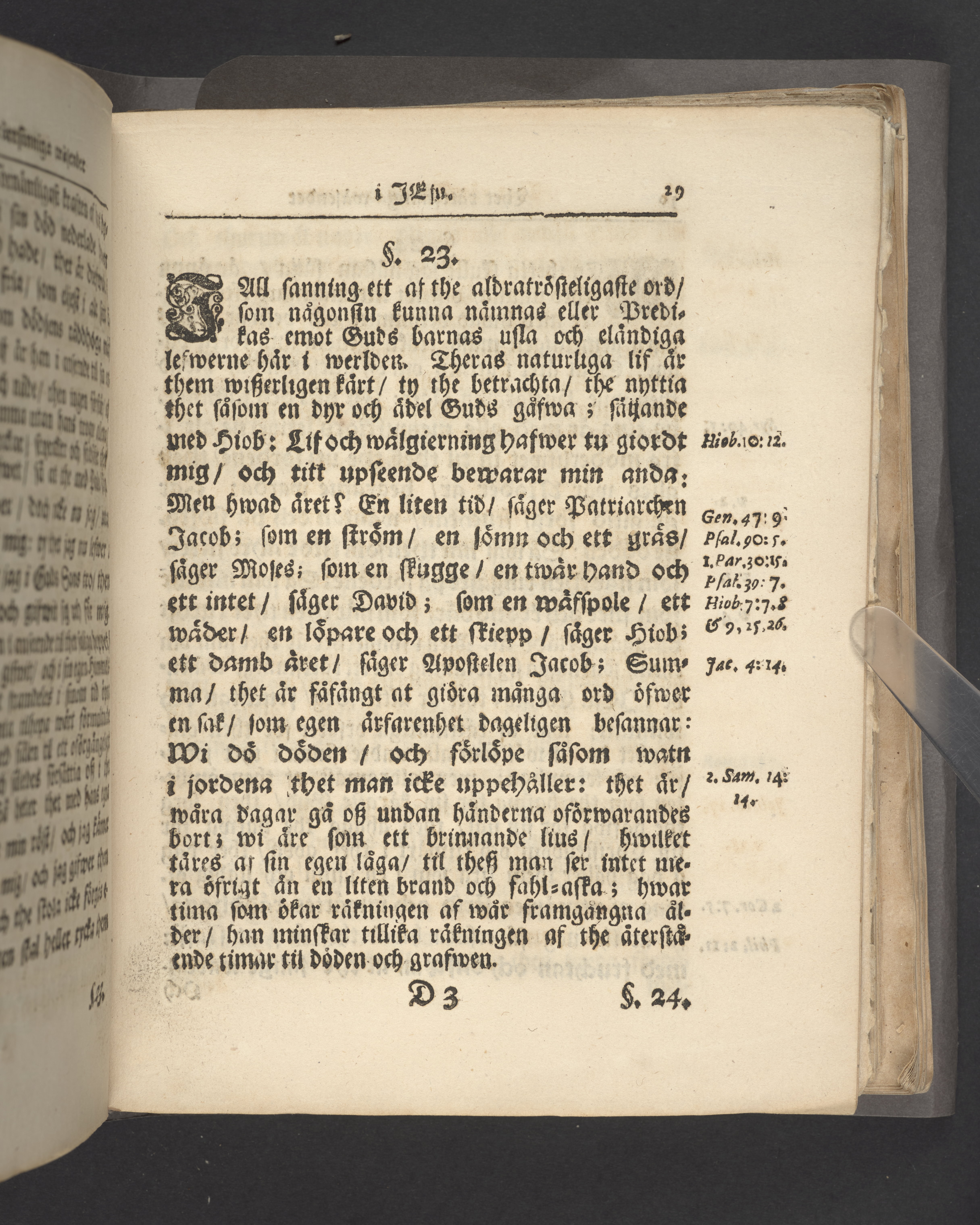Färgat övre snitt. Högst upp på titelsidan anteckning i bläck uppgifter om födelse- och dödsdatum för den avlidna.