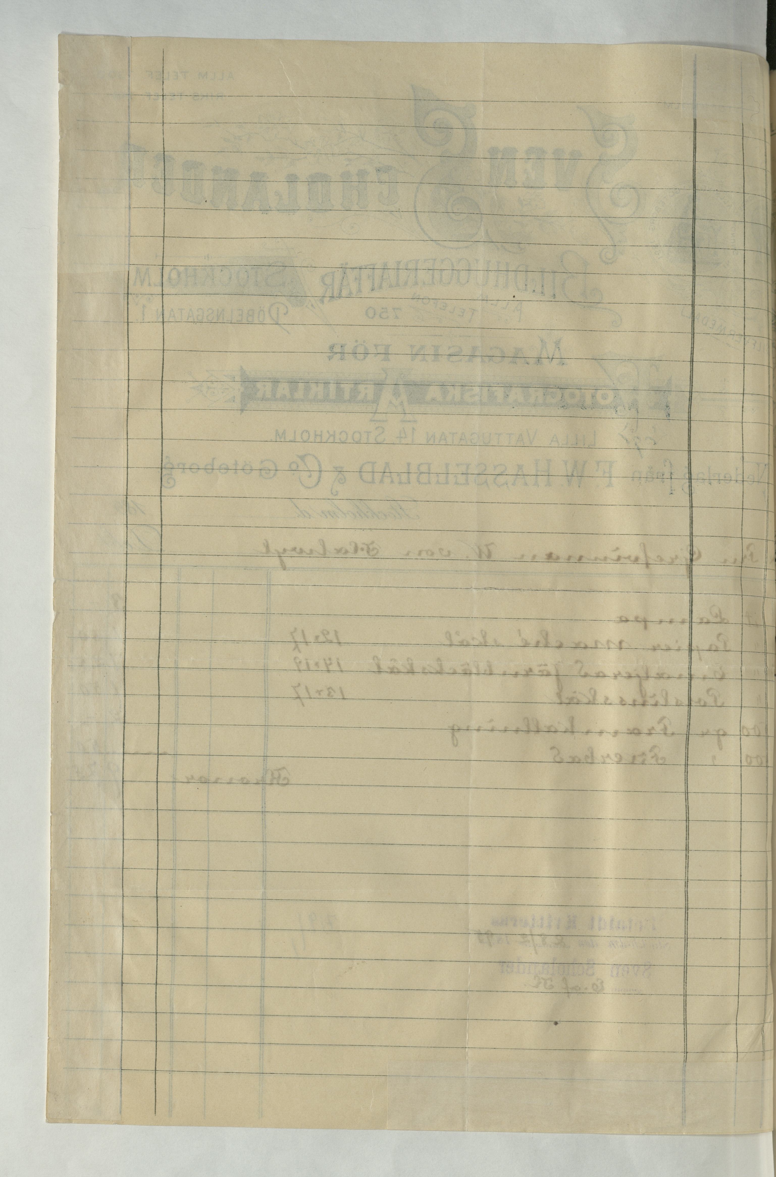 Kvitto från Sven Scholander, Bildhuggeriaffär för fotografiska artiklar