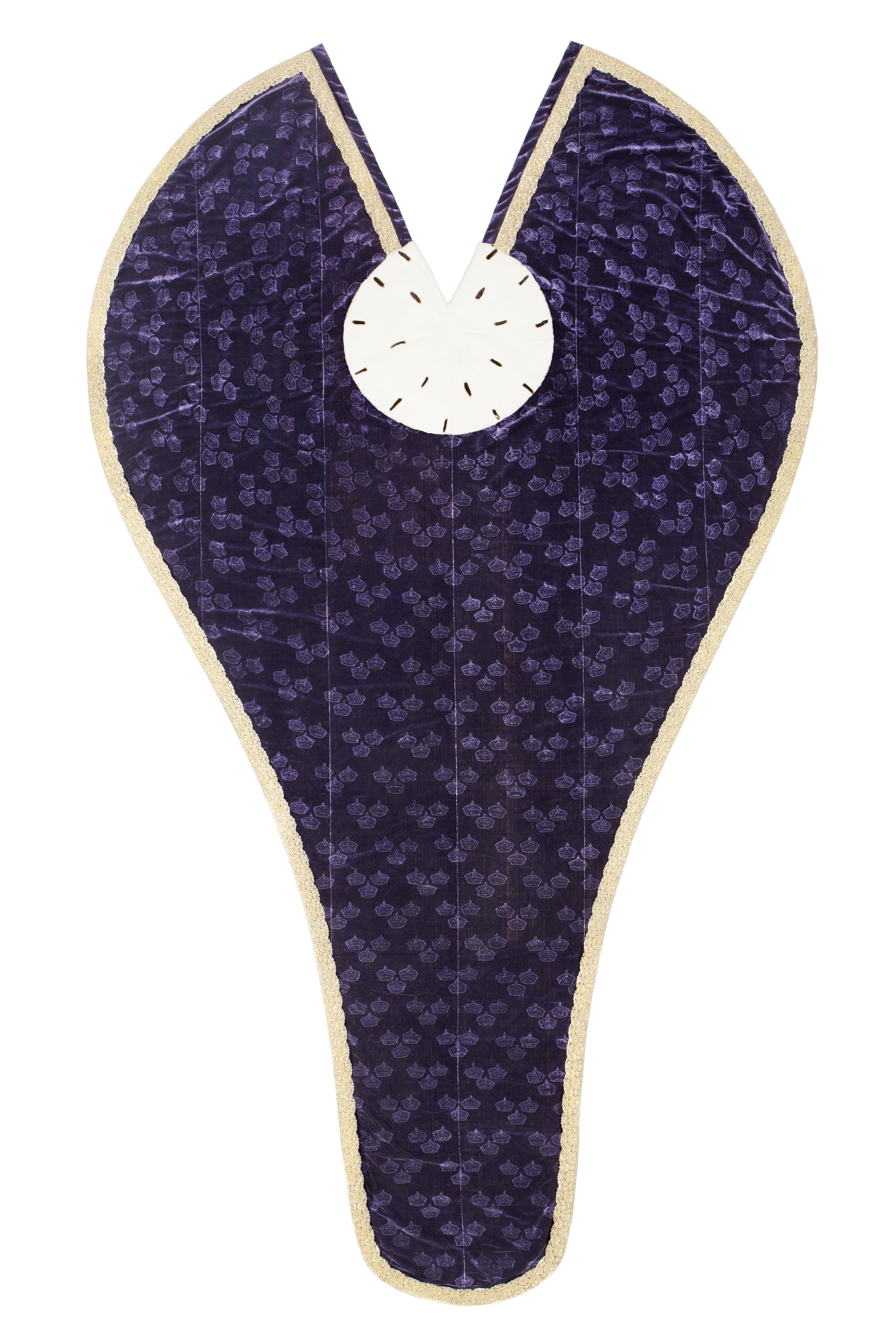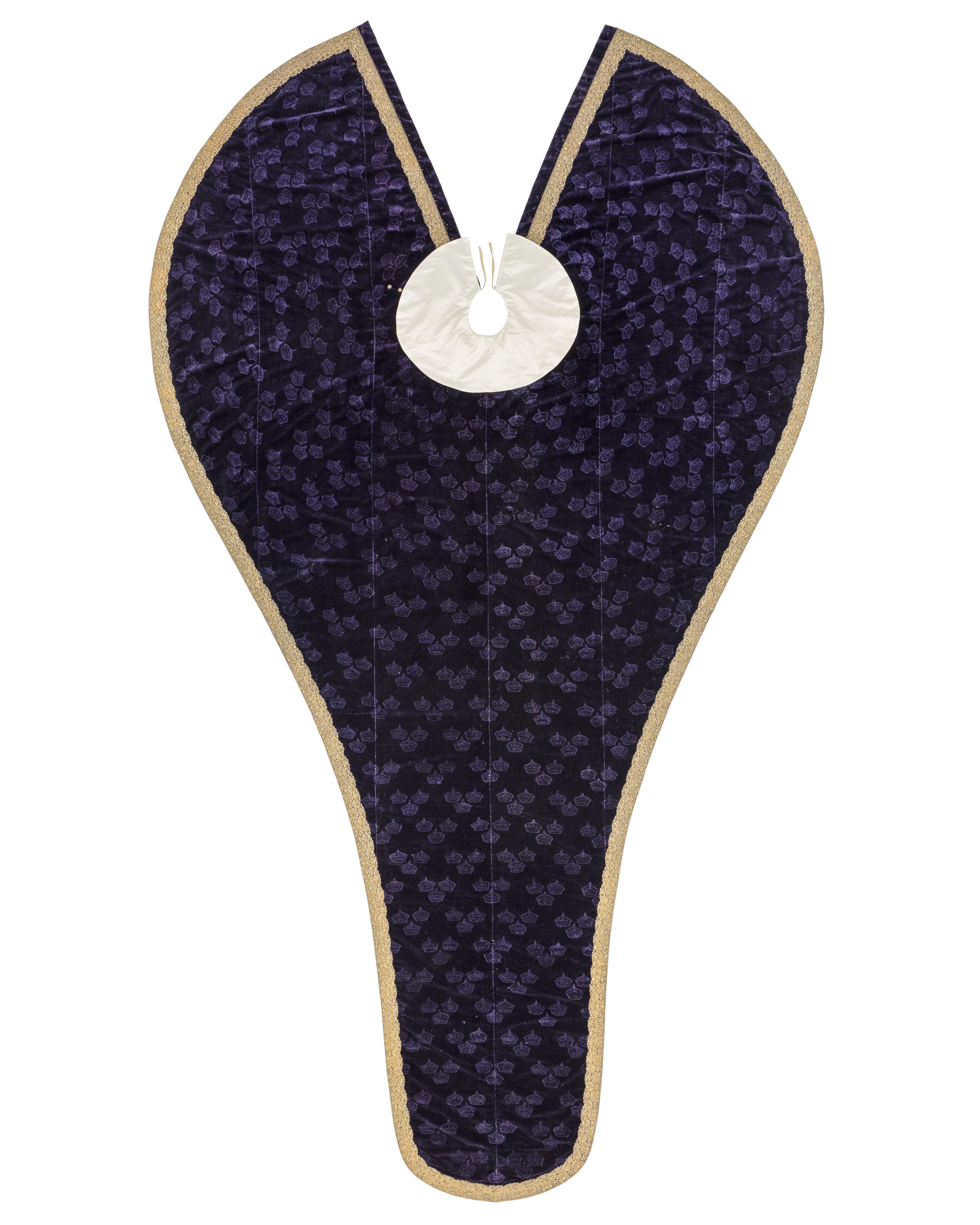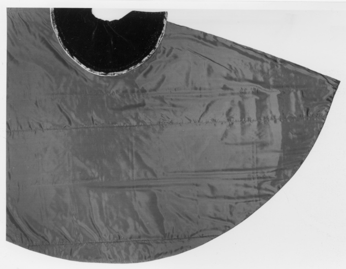 Kröningsmantel av purpurfärgad sammet, rundskuren med utdraget långt, smalt släp. Närmast päronformad, sydd av 6 stycken 520 mm breda våder på det bredaste partier - över axlarna. De båda mittersta våderna utdragna till släp. Totallängd bak 3950 mm, längd fram 1330 mm, största bredd 3120 mm. Ursprungligen var manteln dekorerad med strödda slutna kronor, placerade 3 och 3, tillsammans 764½, samt längs hela kanten en 76 mm bred bård - allt utfört som guldbroderi med pärlor. Av denna dekor återstår numera blott kantbården (mönsterrapport: 72 mm), dock berövad sina pärlor, som sprättades bort för att anbringas på Adolf Fredriks och Lovisa Ulrikas kröningsmantlar 1751. Kronorna som var 65 mm höga och 80 mm breda var placerade i koncentriska cirklar över hela ytan, numera är blott intrycken efter dem skönjbara. De bortsprättades 1774 för att utbrännas. Ursprungligen var manteln fodrad med hermelin samt den rundskurna kragen och brämet belagda med hermelin. Till Karl XI:s kröning 1675 byttes hermelinsfodret ut mot foder av vit taft. Manteln beställdes ursprungligen i Paris till drottning Kristinas kröning 1650-10-20 varifrån den också levererades. Den begagnades därefter av Karl X Gustav vid hans kröning 1654-06-06 i Uppsala och av honom vid Hedvig Eleonoras kröning i Stockholm 25/10 samma år samt av Karl XI vid hans kröning i Uppsala 1675-11-28 och vid Ulrika Eleonoras kröning i Stockholm 1680-11-25. Bars även av Fredrik I vid dennes kröning 1720.