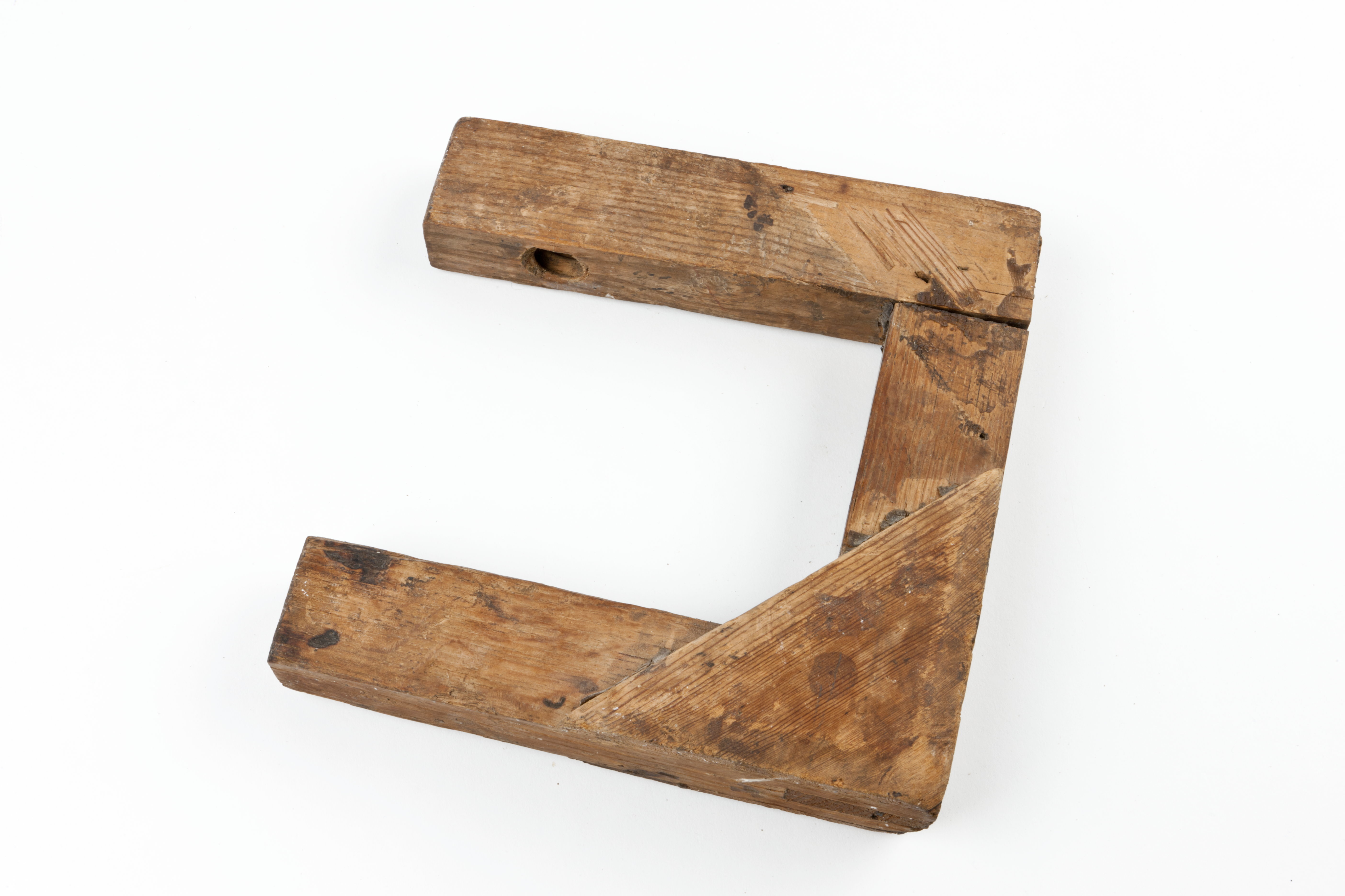 Med furulister limmade på ramens vertikala stycke. Skruv av björk med svarvat skaft.