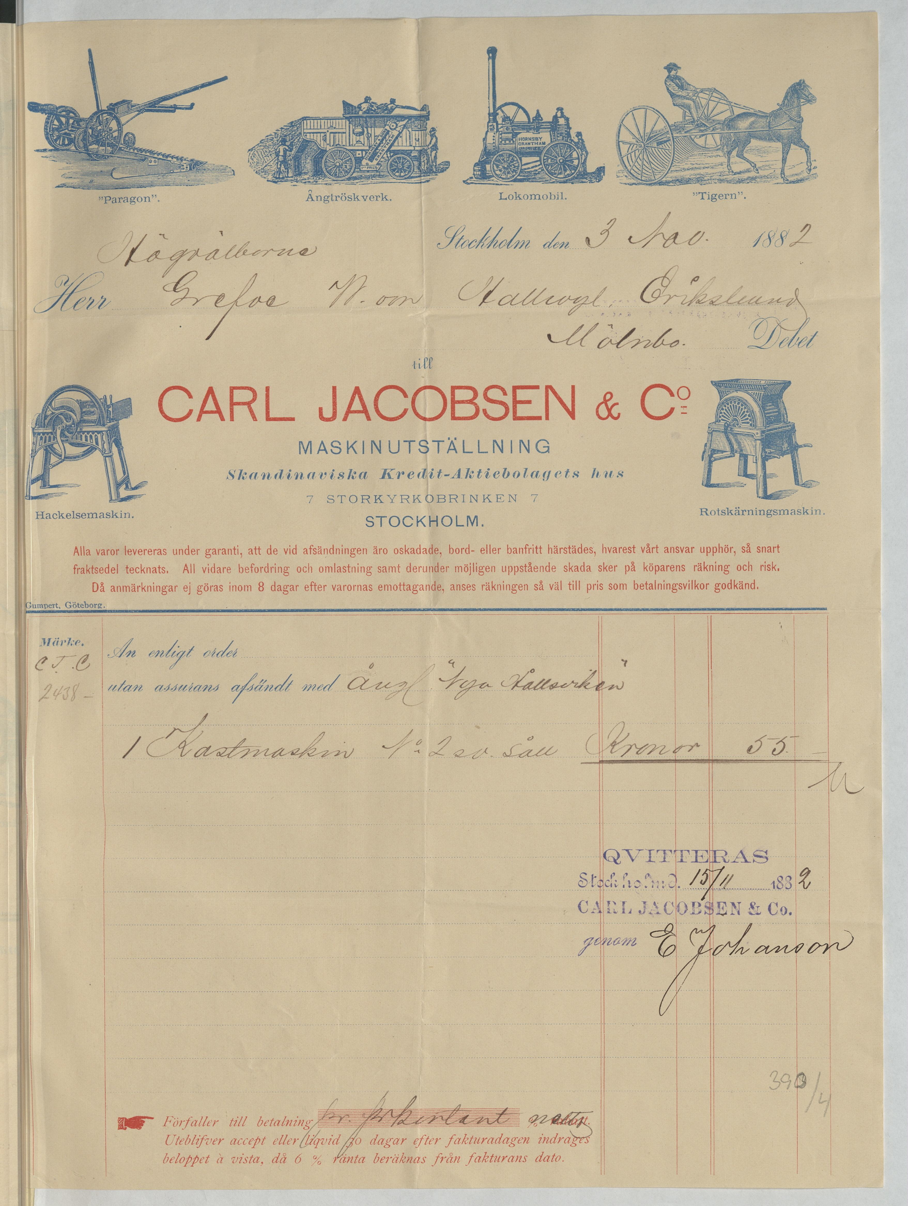 Kvitto från Carl Jacobsen & Co. Maskinutställning