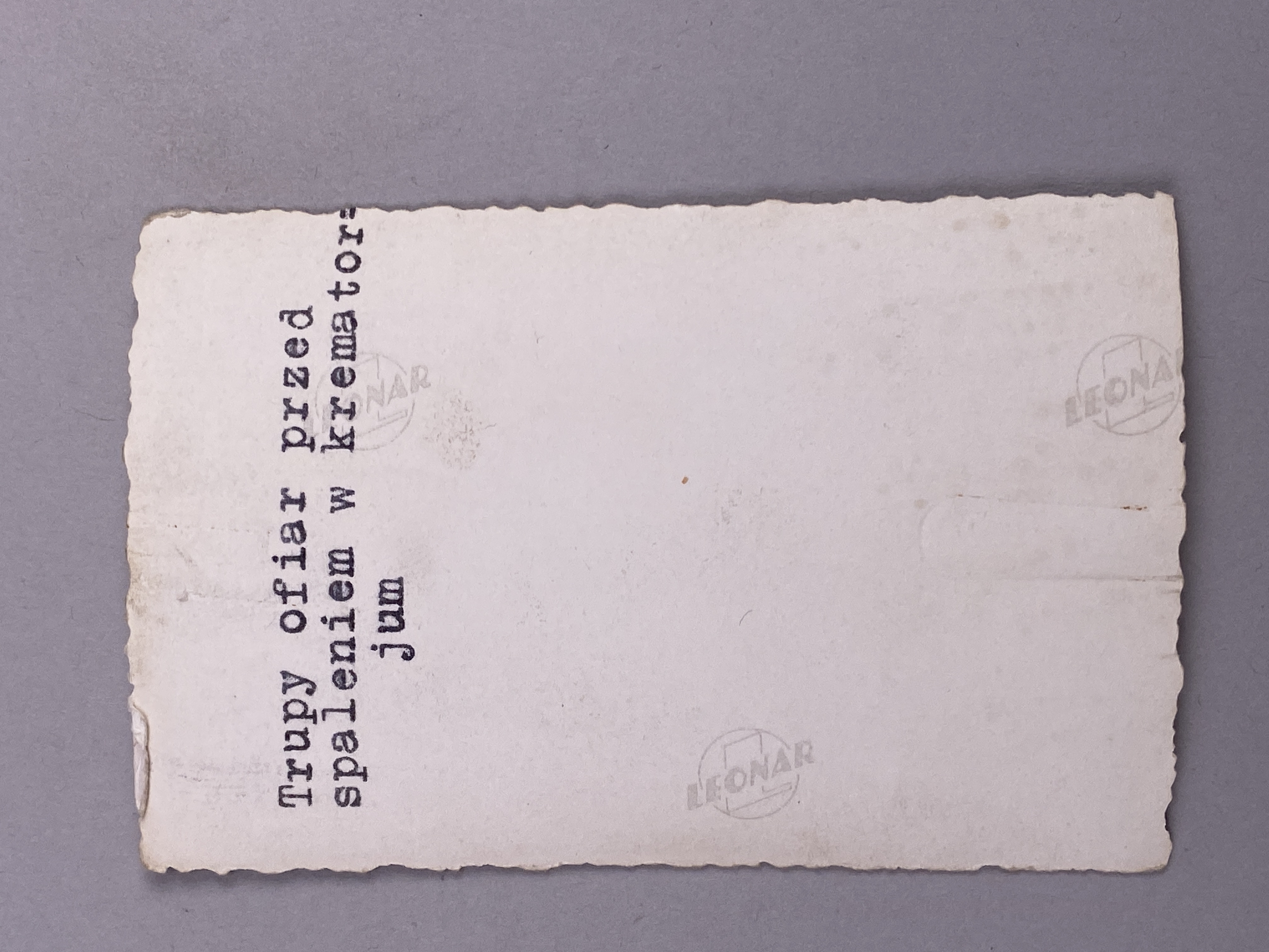 Signatur/Påskrift: Trupy ofiar przed spaleniem w krematorjum (Offrens lik innan de brändes i krematoriet)
