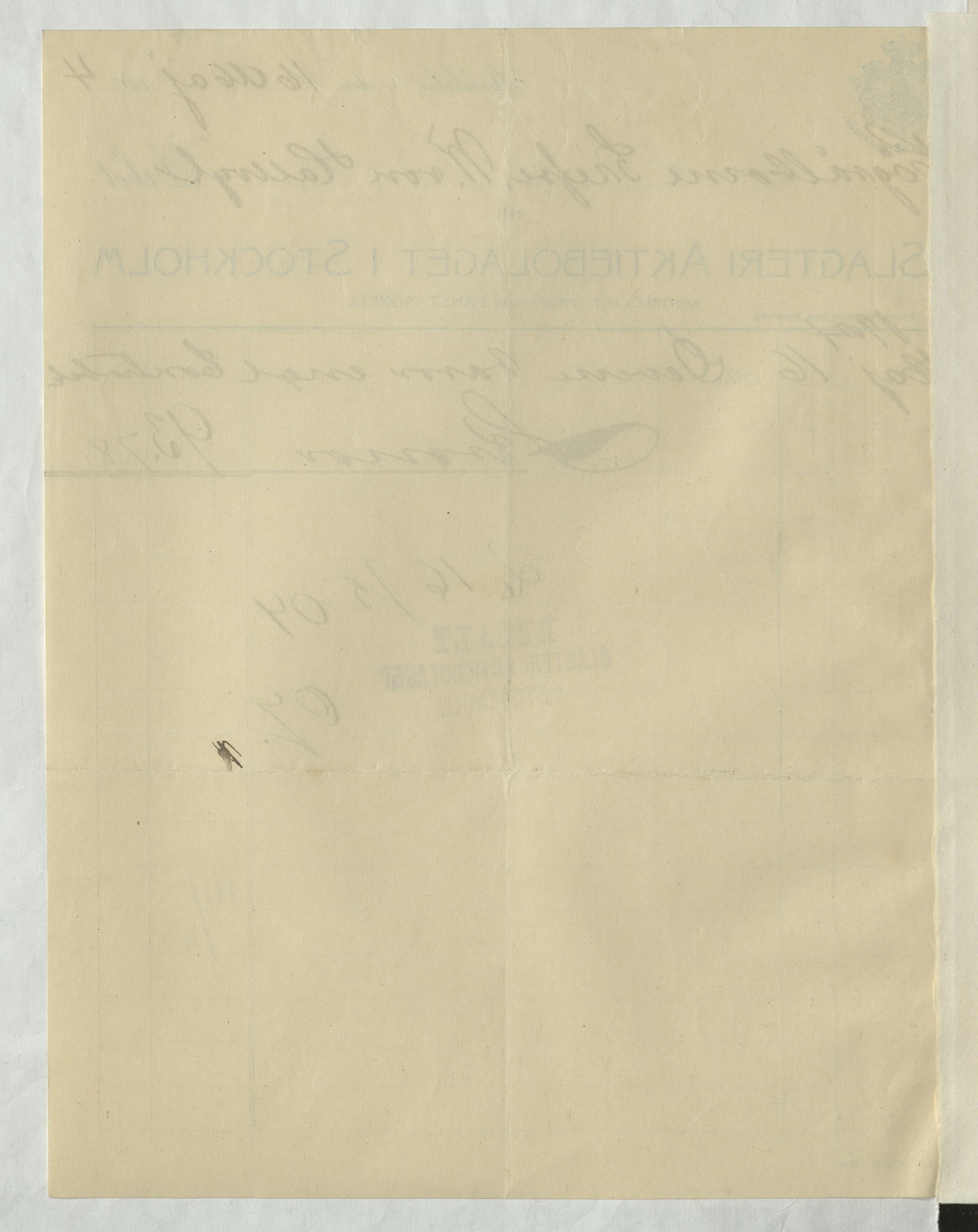 Kvitto från Slagteri Aktiebolaget i Stockholm