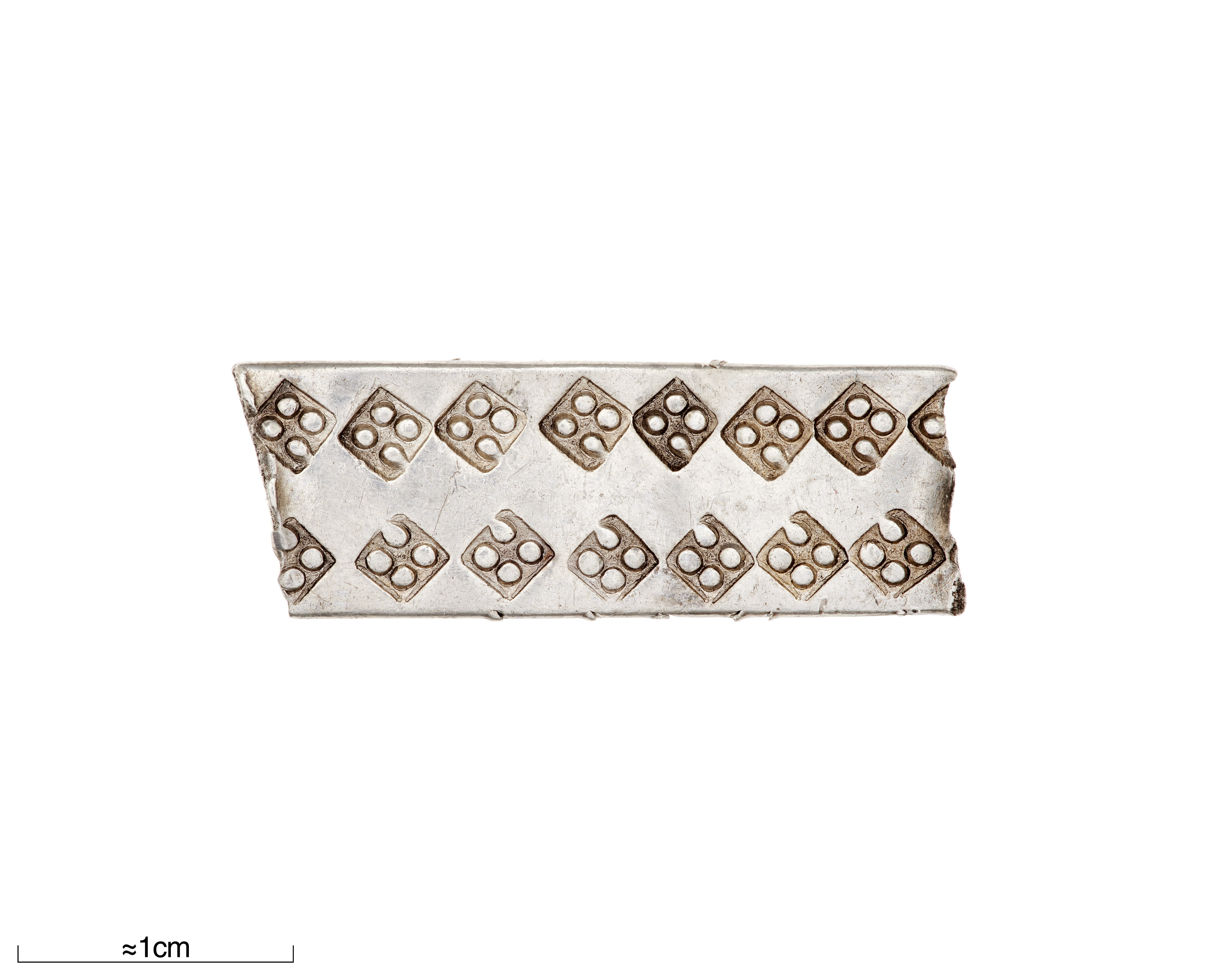 Bandformigt bleck med stämpelornering