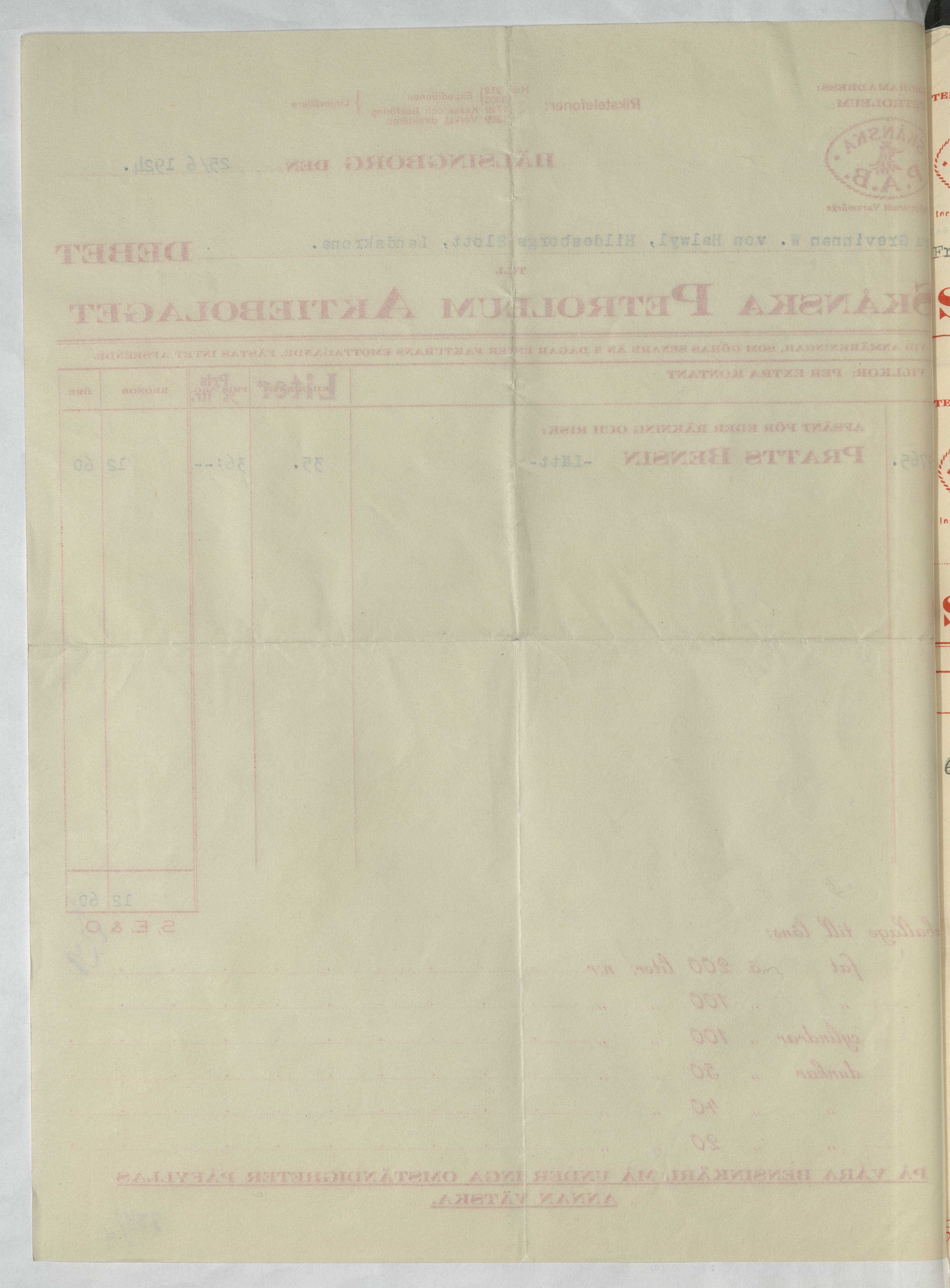 Kvitto från Skånska Petroleum Aktiebolaget