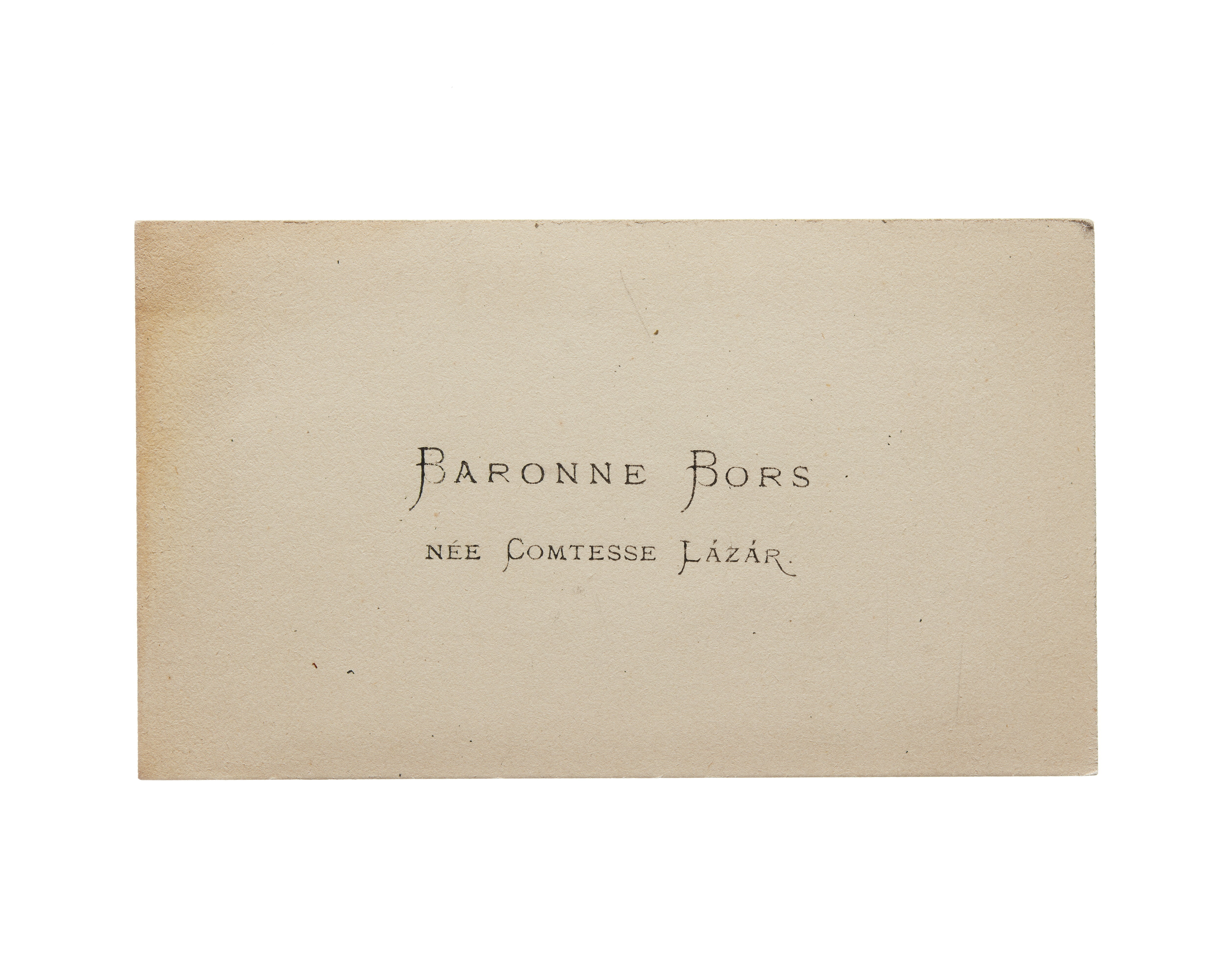 Visitkort från Baronne Bors, Nee Comtesse Lazar