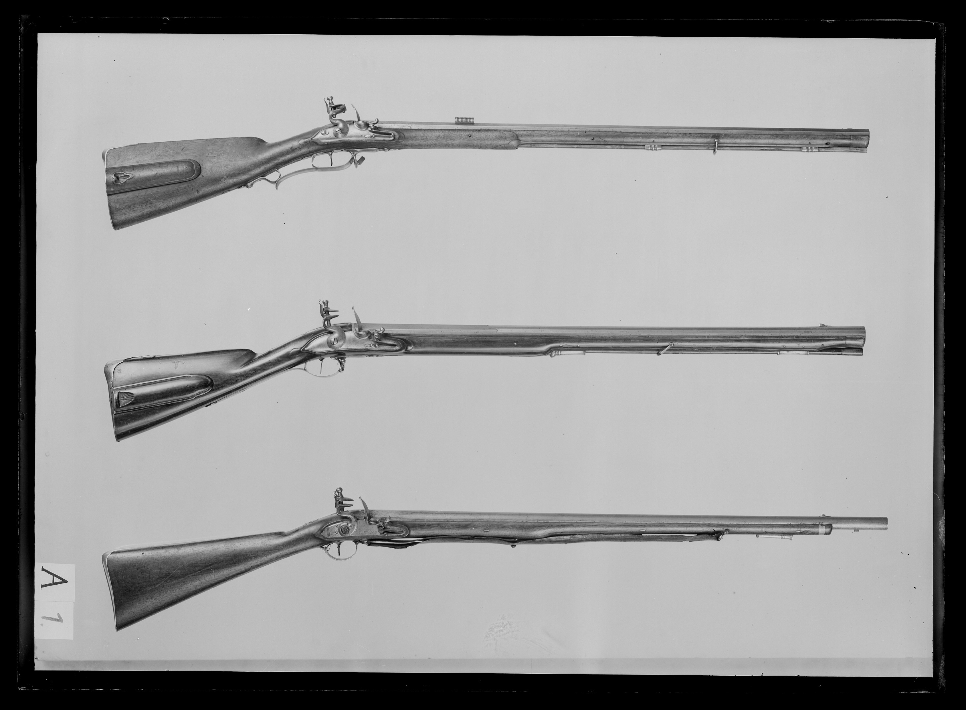 Åttsidig, åttaräfflad pipa av stål, vid pipbasen dekor i form av försänkt pärlstav. Svansskruven utbytt, rester av I(?) slaget över skarven på pipdelen.Svansskruvblad med rundad ände, därpå graverat: 2. Riktmedel: Inlaxade riktmedel, ståndsikte av stål med profilerat, ursprungligen svärtat rörskydd. Stolpkorn av mässing. Fästning: Fyra häften. Pipan fäst med krysskruv, bakre låsskruven i hak i svansskruvplattan samt tre pipstift av stål och främre rembygelns skruv. Flintlås med välvt låsbleck, smal kantlist. Graverad bladranka vid bakspetsen, framför hanen signatur: "NVSBAUM // STOCKHOLM". S-formig, välvd hane, hangren med ryggås nertill. Ovala käkar, överkäken lös, käkskruv med tillplattat, kulformigt huvud. Rundad fängpanna med fals. Batteri med välvt fängpannelock, eldstål med ryggås, kommaformig häl, batterifjäder med svängt, flikigt fjäderlöv. Säkring: Bakom hanen en skjutsäkring med ovalt, välvt fingergrepp. Fästning: Två låsskruvar. Svagt S-formig avtryckare. Konturerat avtryckarbleck. Helstock av valnöt, kolv med kindstöd och kolvlåda, plan rygg. Snidad bladdekor vid kindstöd och svansskruvblad, lister vid varbygel och laddstocksrännans ände. Kolvlådelock med inskuret fingergrepp. Näsband av horn, övriga beslag av stål, bakplåt med bred, tvärt avskuren flik på kolvryggen, två skruvar. Ändbeslag på kolvlådelocket fäst med två skruvar. S-formigt svängt, välvt sidbleck med oval mittplatta. Två profilerade rörkor. Varbygel, baktill övergående i fri bakre arm, 8-formig, välvd främre arm, avslutning i form av urna med smaltblad. Bakre armens framstolpe fri, den bakre s-formigt svängd, avslutning i form av flikigt blad. Två rembyglar, den bakre i varbygelns framstolpe, den främre mellan rörkorna. Tillbehör: Laddstock av trä, l:187 mm, framtill skodd med horn, l: 27 mm, baktill ett invändigt gängat stålrör, l: 198 mm.