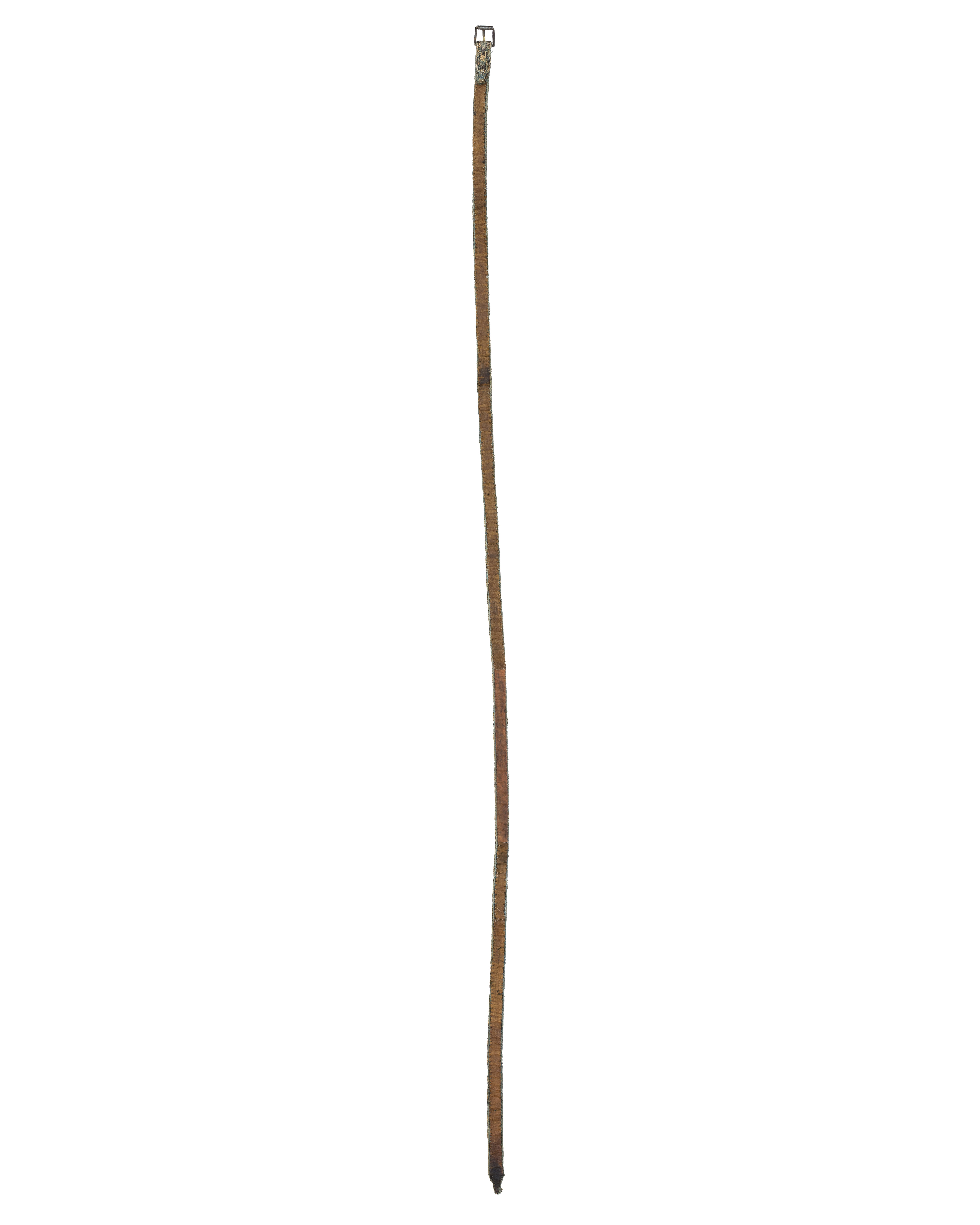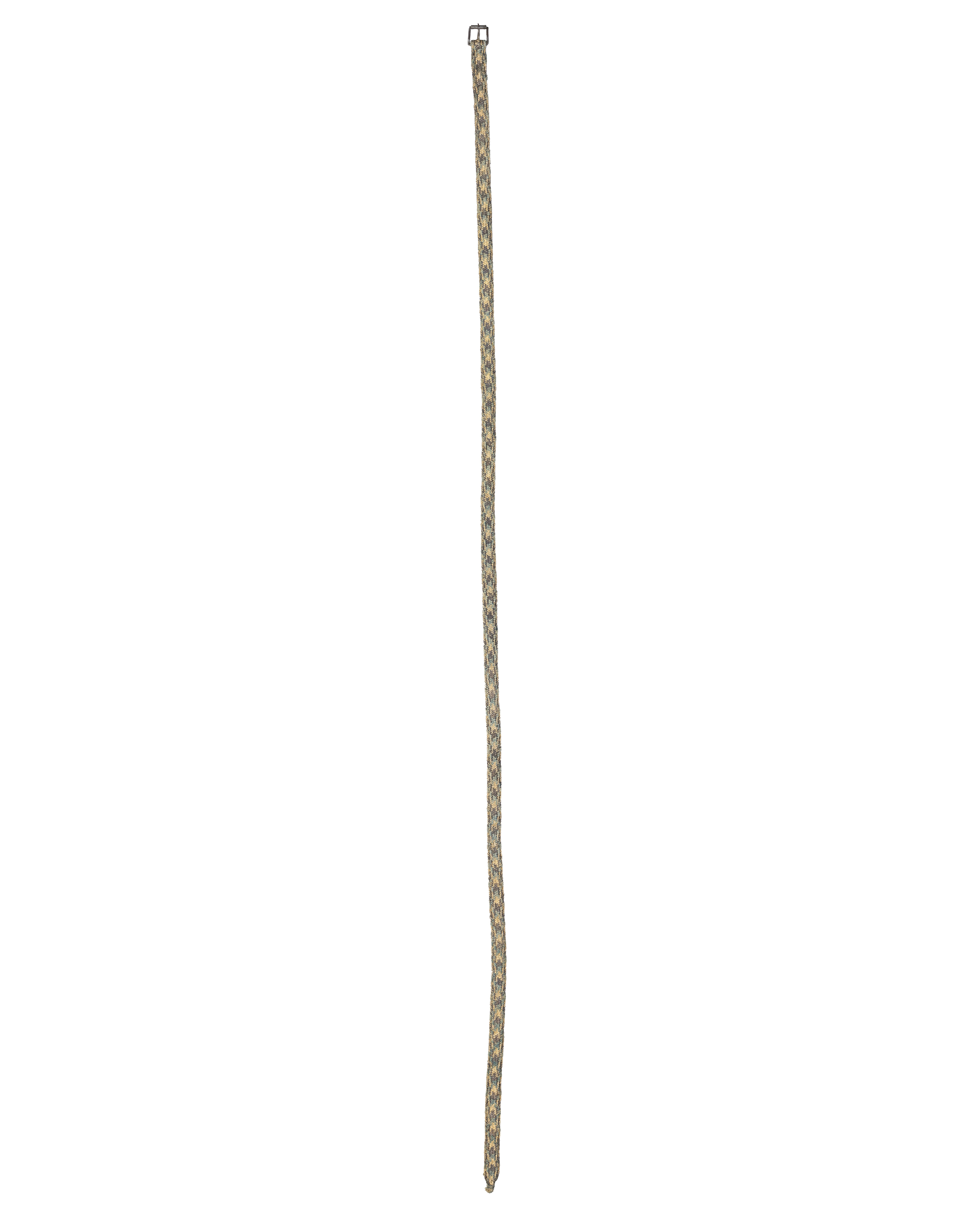 Hand Tygeln flätad af blått Silke med Guld och Silfver ibland, i den ena ändan med Toffs och i dan andra med knapp.