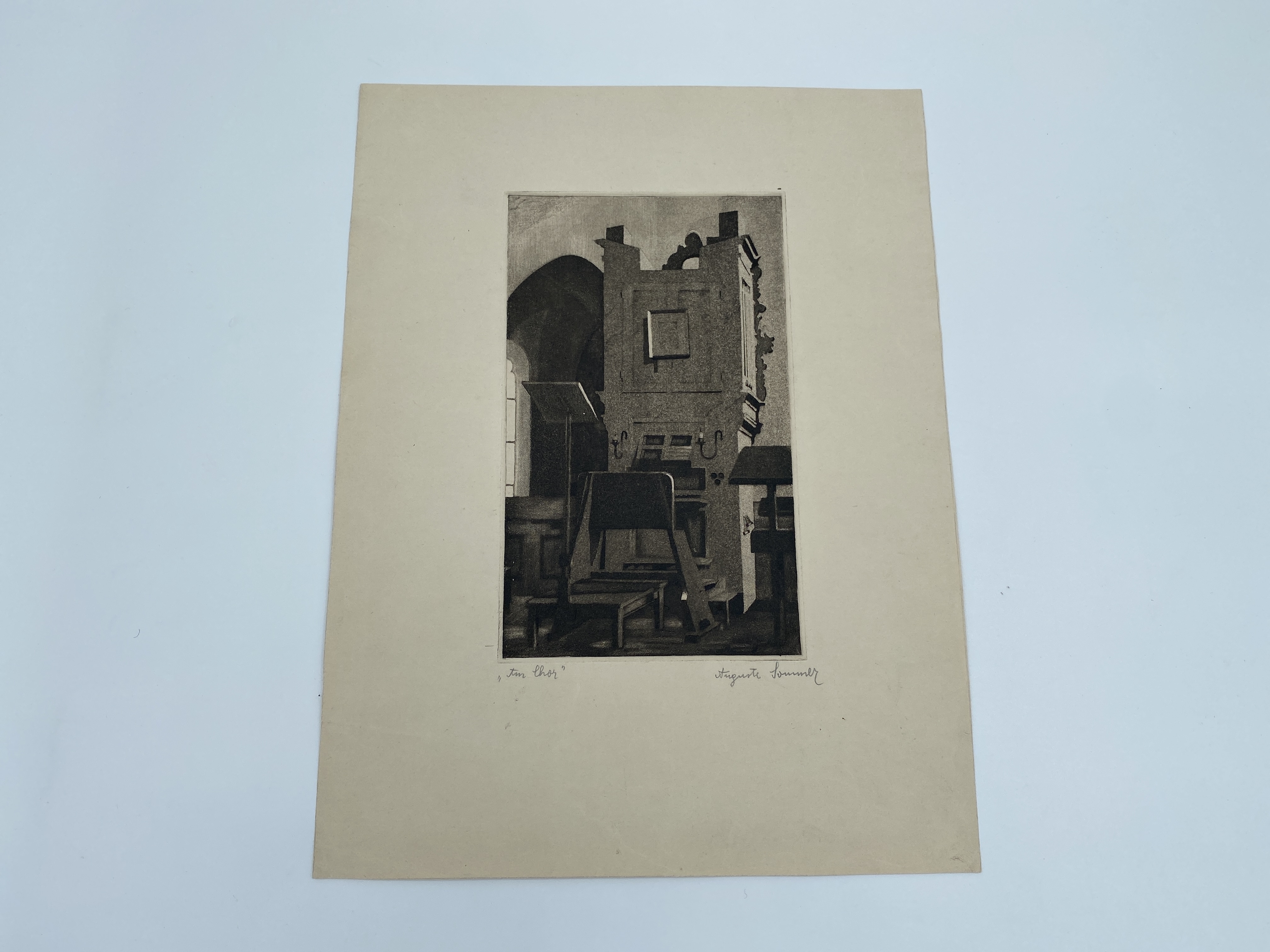 Kopparstick av Auguste Sommer, föreställande interiör.