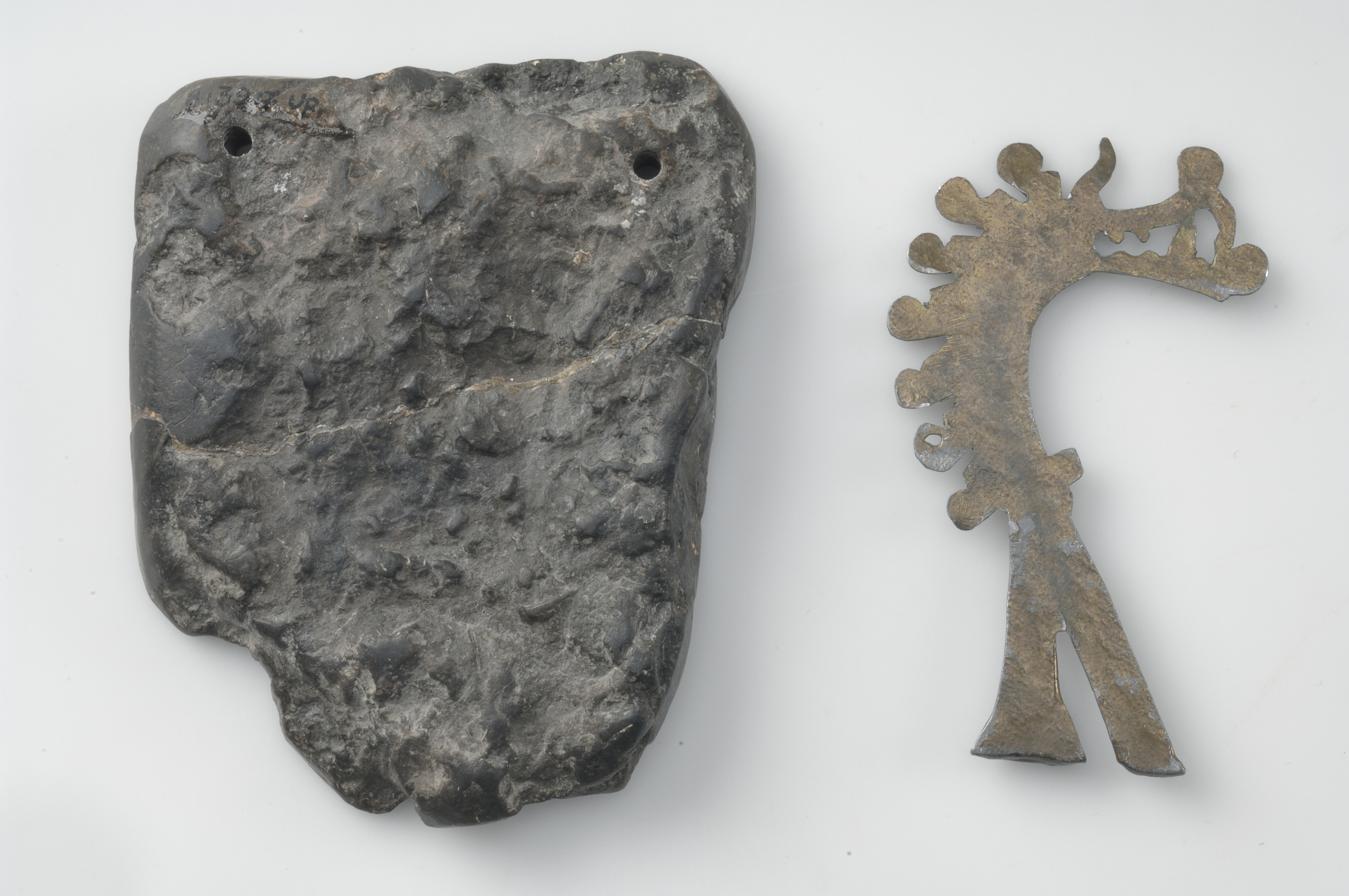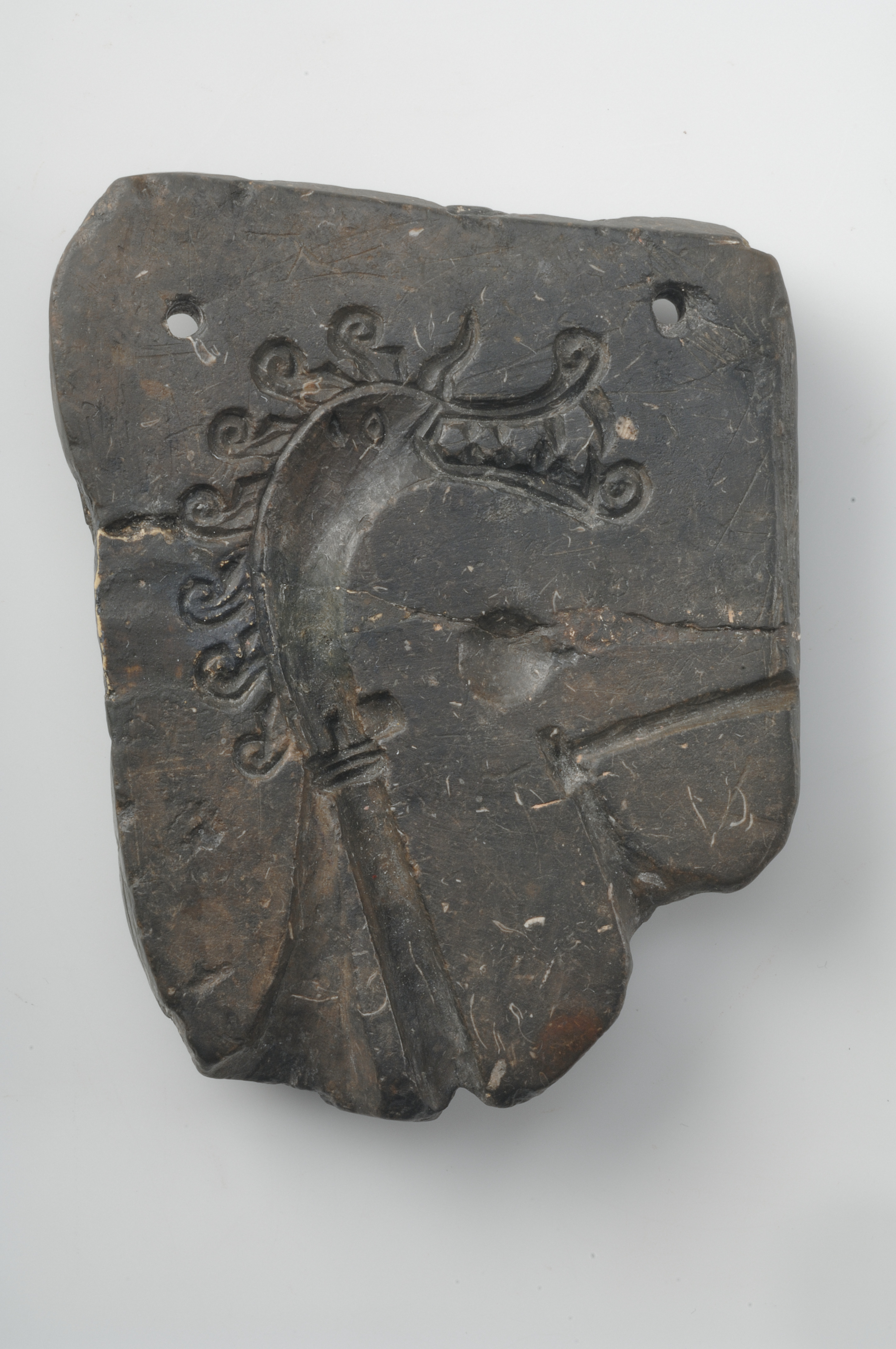 Ena halvan av en gjutform, sannolikt avsedd för att gjuta dräktnålar i överfångsteknik med silver eller brons på järn.