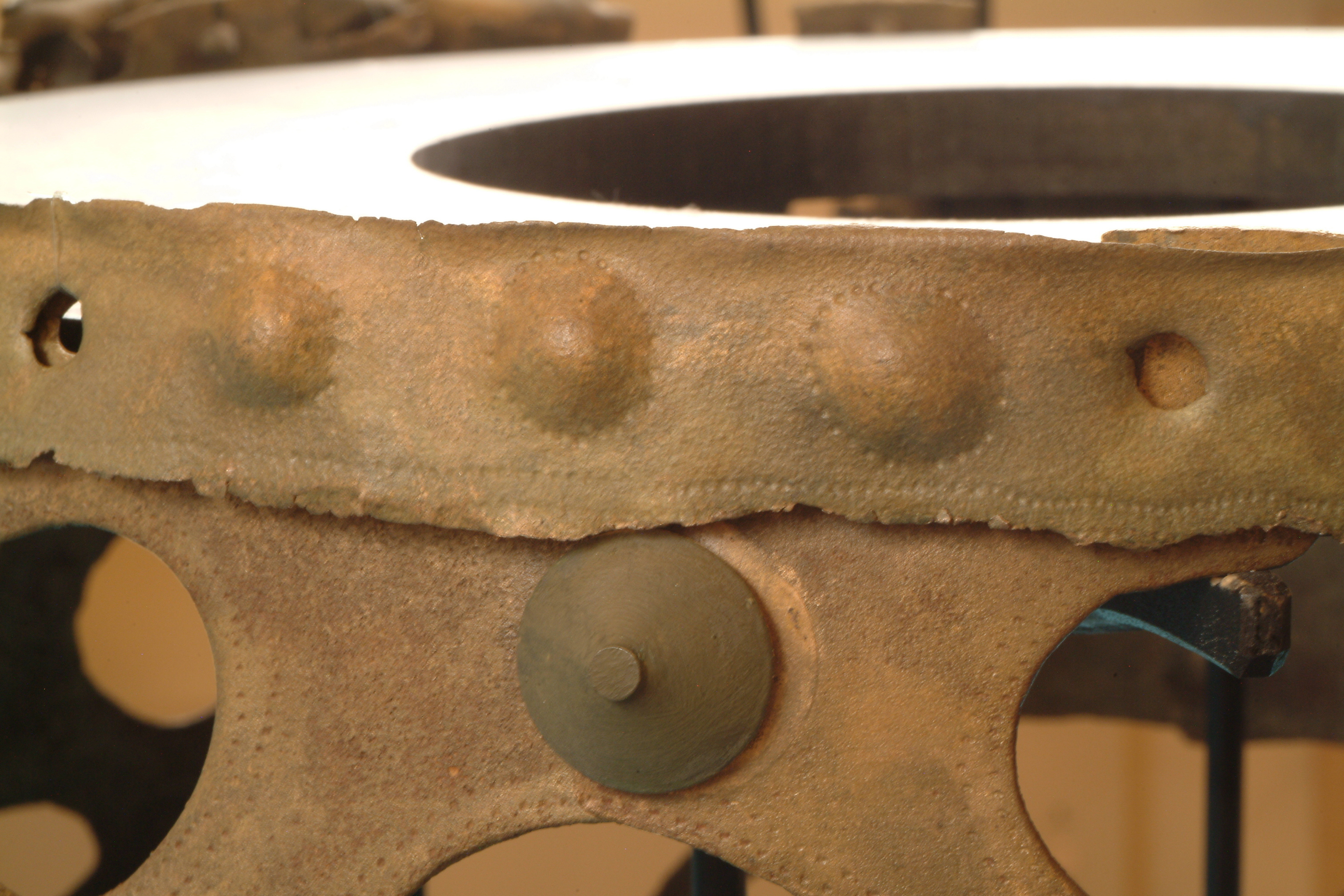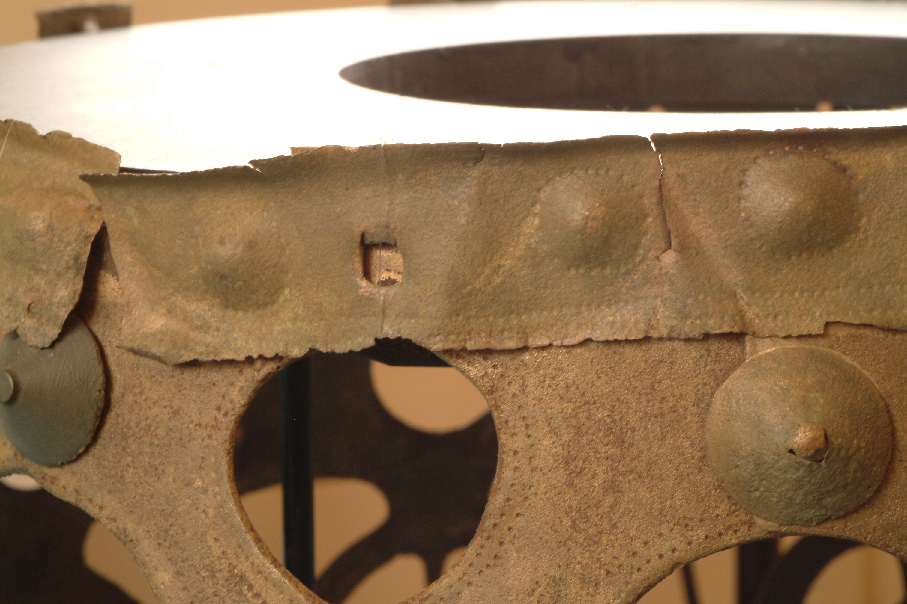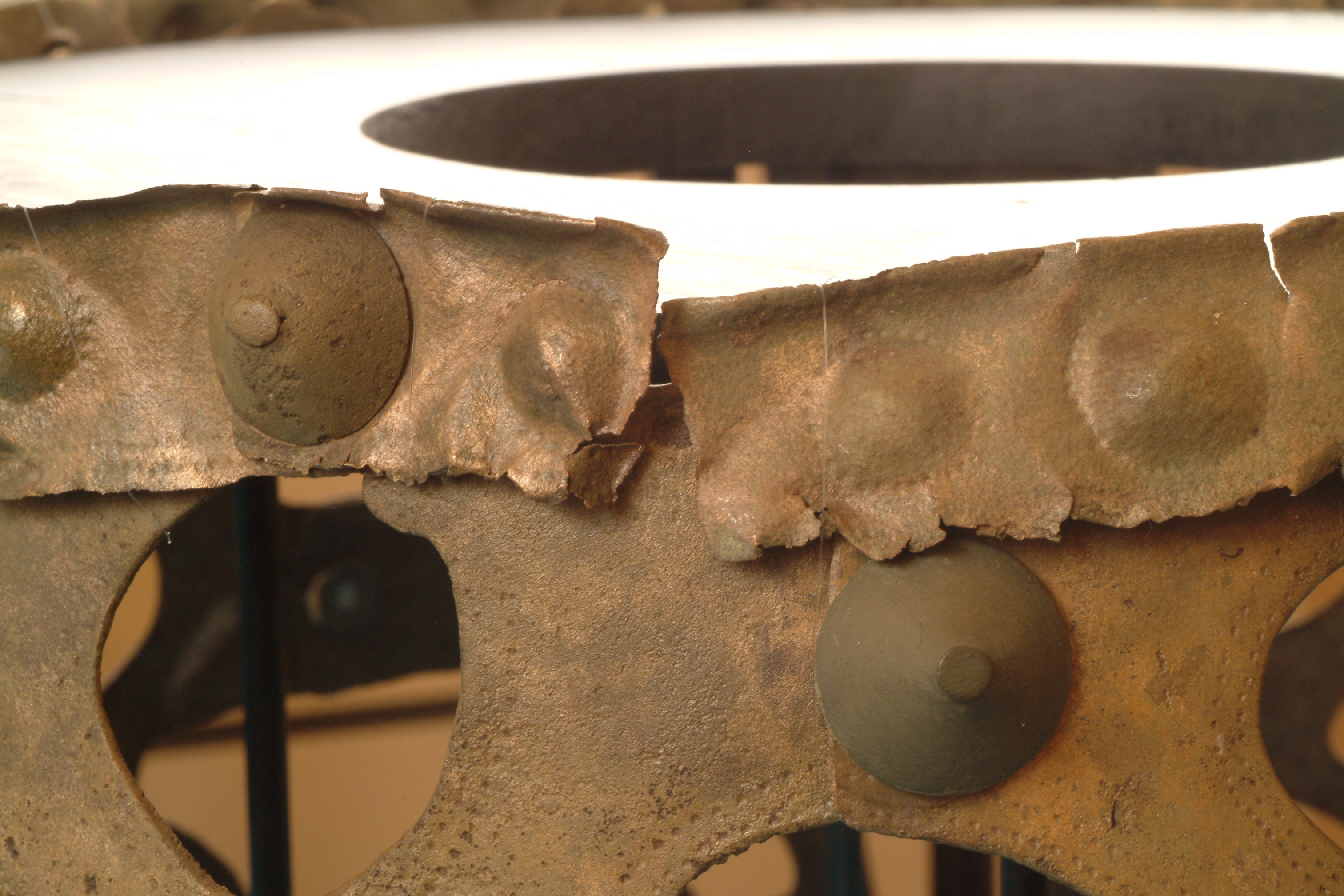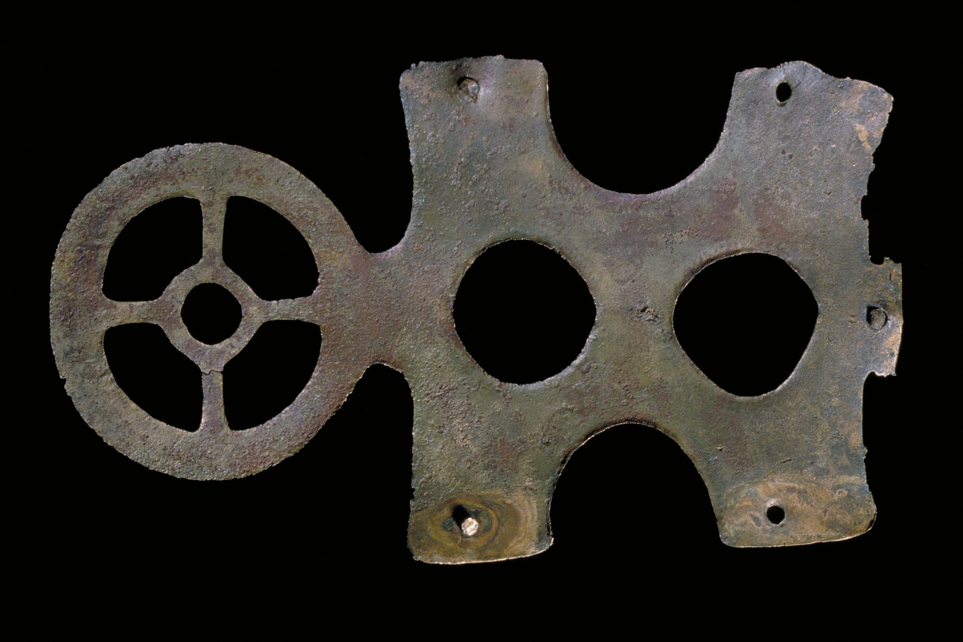 Kultföremål av brons, gjuten i flera delar. Består av en rund, platt skiva som är omgiven av en hög bård med runda hål och på övre kanten hjulformiga prydnader. På skivans uppåtvända yta är fem koncentriska kretsar av sex band med zigzaglinjer inpunsade, vilka sannolikt ska ge en bild av den strålande solen. Skivan vilar på en krans gjuten i tio delar med varandra hopnitade delar. Varje del slutar i ett hjul med fyra ekrar, en symbol för solen. De tio delarna är märkta under bronsålder med streck och punkter för att visa hur de ska sammanfogas. Nitarna är "ringnitar" med särskilt gjutna, stora, koniska huvuden. Totalt finns cirka 30 nitar. Datering osäker, kan vara äldre bronsålder men även yngre har framförts. En nästan exakt parallell finns från ett fynd i Hasfalva, på gränsen mellan Ungern och Österrike. Dekoren på skivorna avviker dock något. Detta exemplar förvaras på Soproni Muzeum, Ungern.