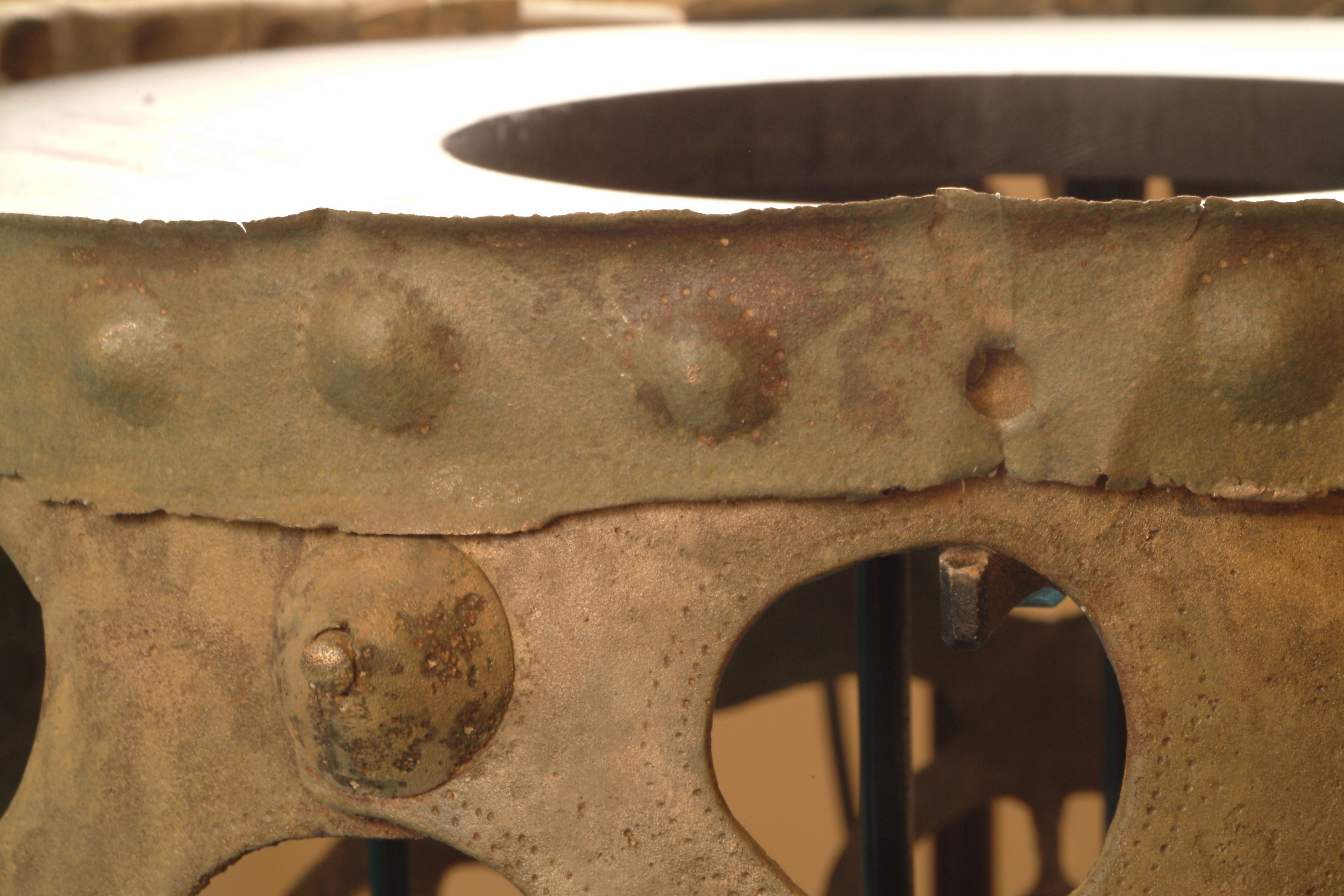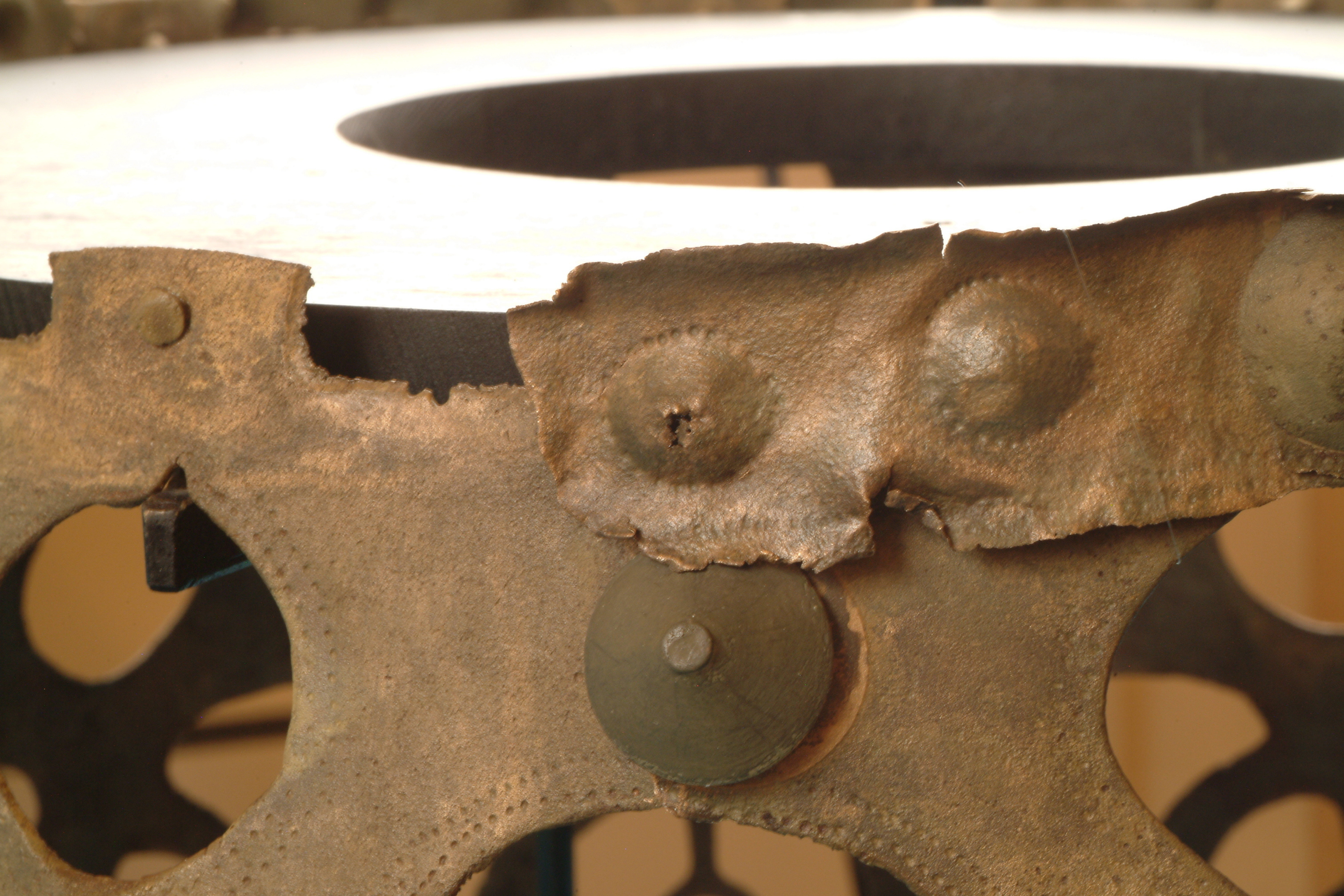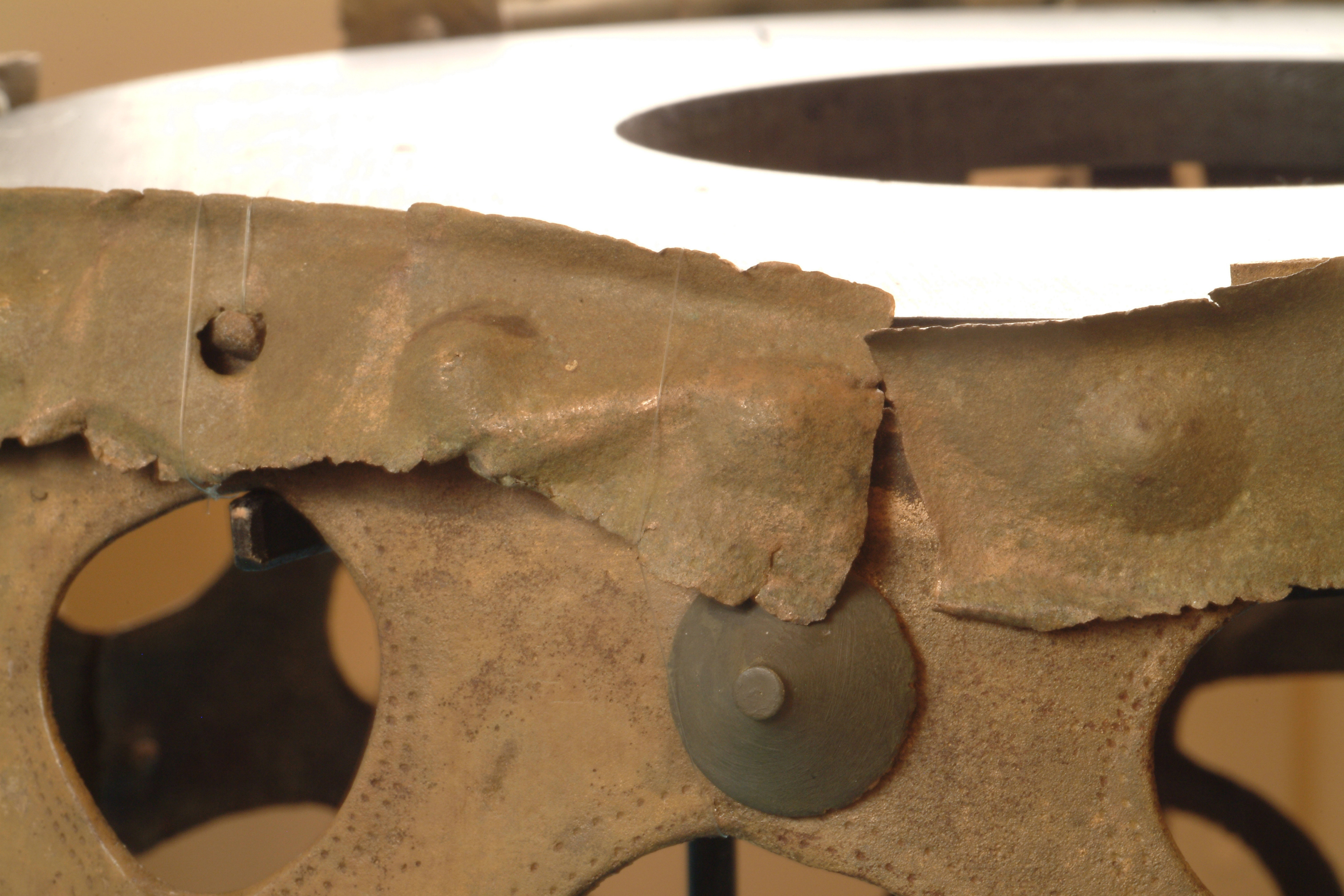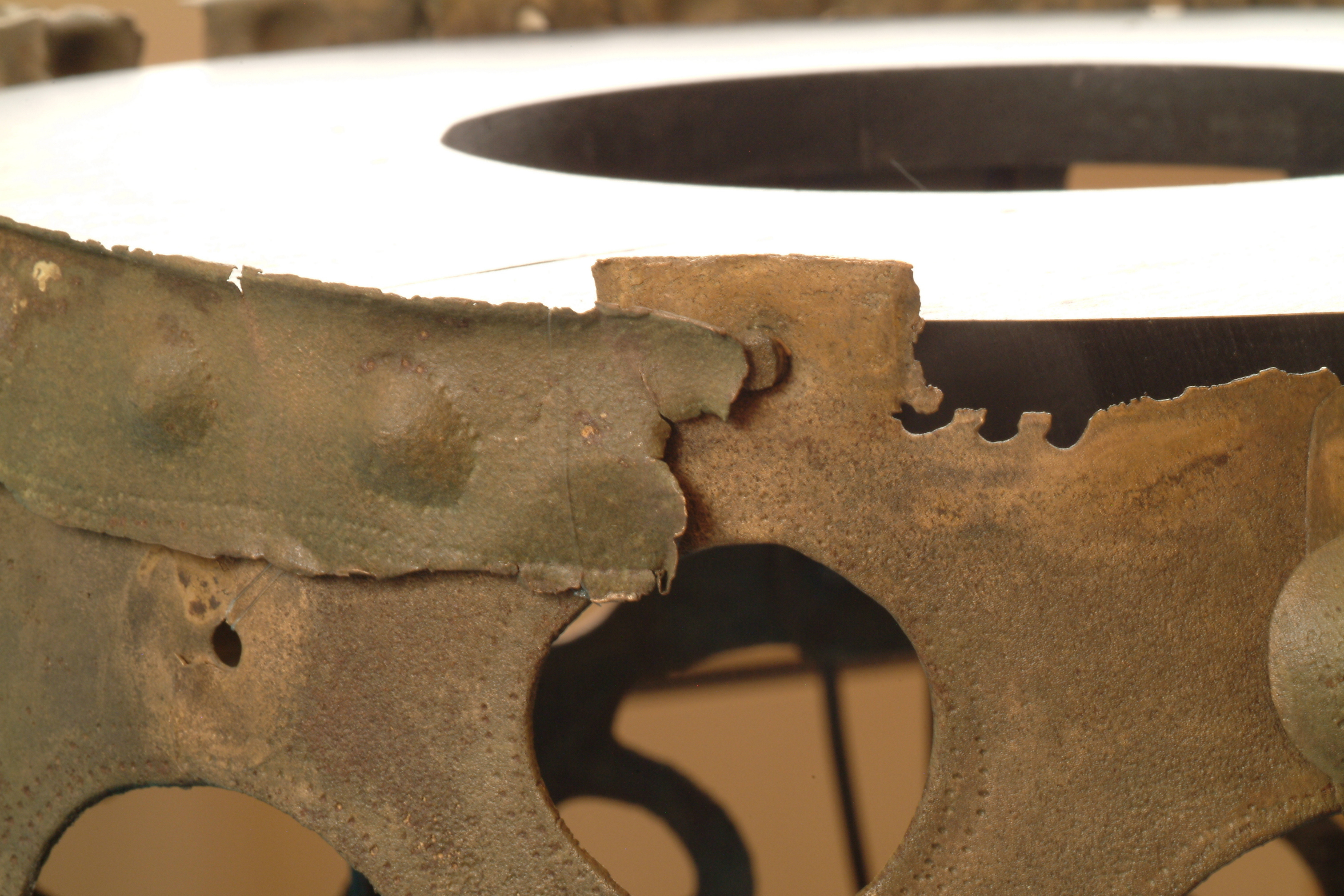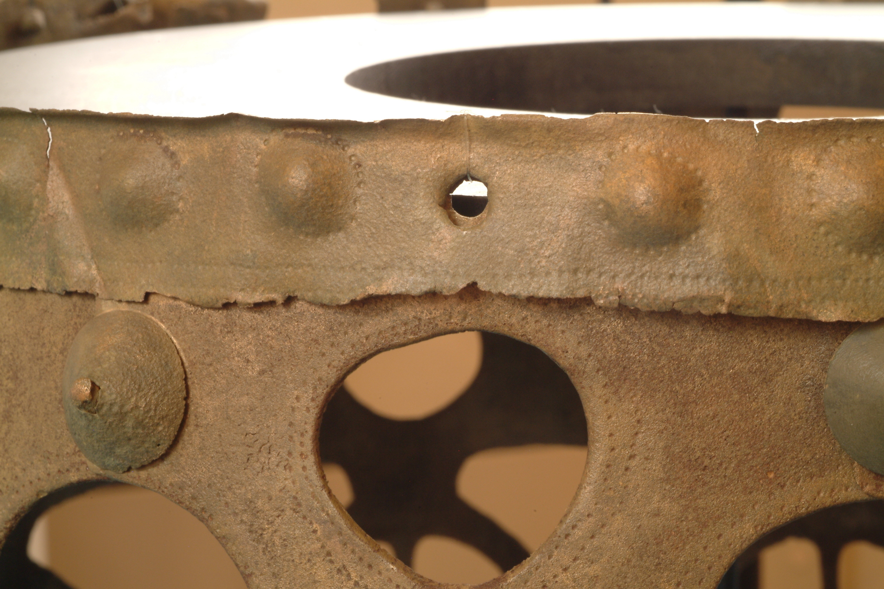 Kultföremål av brons, gjuten i flera delar. Består av en rund, platt skiva som är omgiven av en hög bård med runda hål och på övre kanten hjulformiga prydnader. På skivans uppåtvända yta är fem koncentriska kretsar av sex band med zigzaglinjer inpunsade, vilka sannolikt ska ge en bild av den strålande solen. Skivan vilar på en krans gjuten i tio delar med varandra hopnitade delar. Varje del slutar i ett hjul med fyra ekrar, en symbol för solen. De tio delarna är märkta under bronsålder med streck och punkter för att visa hur de ska sammanfogas. Nitarna är "ringnitar" med särskilt gjutna, stora, koniska huvuden. Totalt finns cirka 30 nitar. Datering osäker, kan vara äldre bronsålder men även yngre har framförts. En nästan exakt parallell finns från ett fynd i Hasfalva, på gränsen mellan Ungern och Österrike. Dekoren på skivorna avviker dock något. Detta exemplar förvaras på Soproni Muzeum, Ungern.