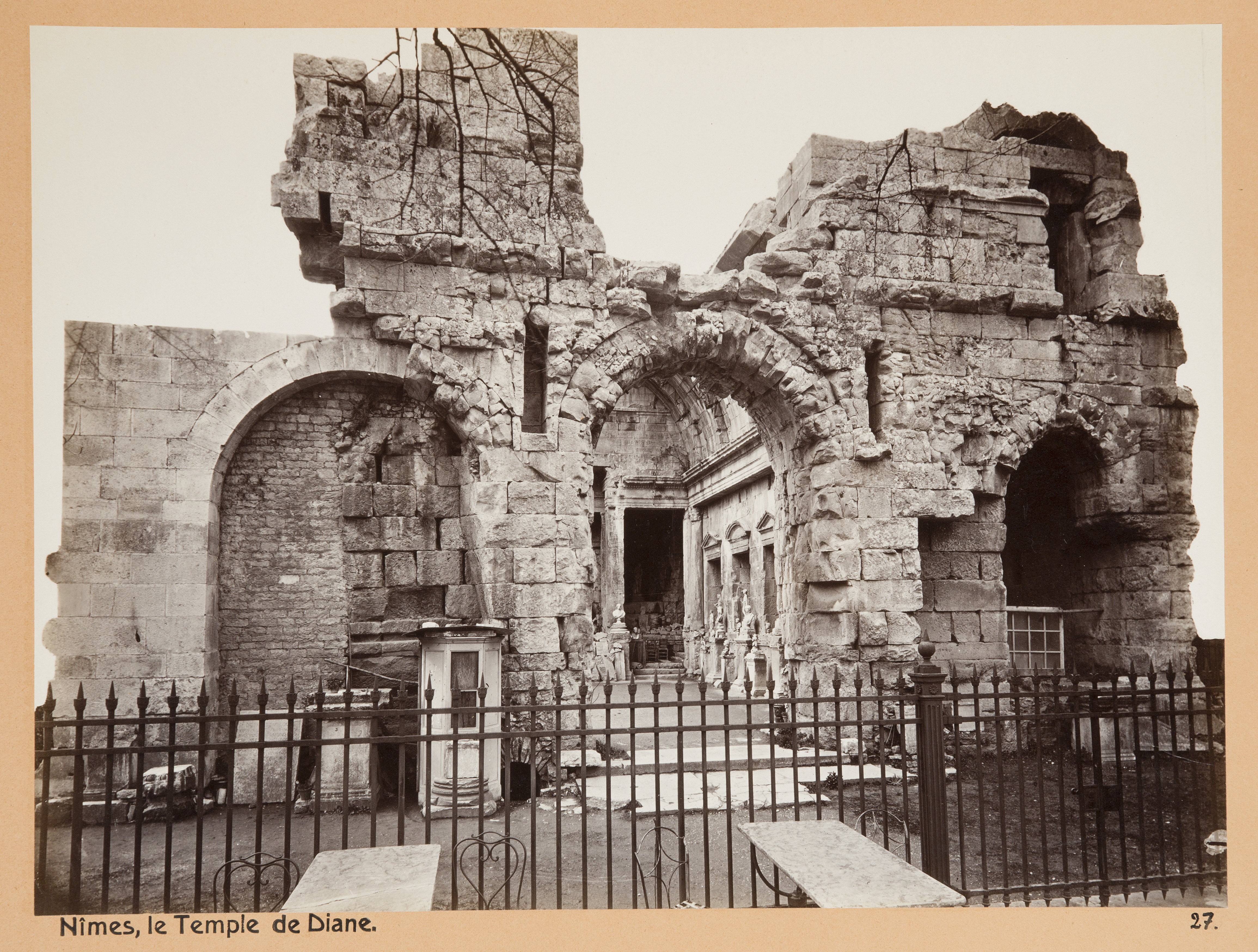 Le Temple de Diane, Nîmes. Inköpta av Wilhelmina von Hallwyl, f. Kempe, i Turin, Genua, San Remo, Cannes, Marseilles, Nîmes, Nizza, Menton, Spezia, Pisa, Florens, Bologna, Venedig, Verona, Milano, Pallanza, Lugano, Bellagio och Bad Sulz vid hennes vistelse å nämnda orter tillsammans med sin make, Walther von Hallwyl, dottern Irma samt fröken Ida Uhse under deras resa genom Rivieran och norra Italien samt åter öfver Schweiz och Tyskland 20 September 1880 - 20 Juni 1881. Förestående uppgifter lämnade med ledning af fröken Ida Uhses Reseanteckningar.