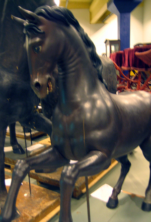 Hästen står wid Östra ändan i Salongen under K: Carl d. XI Rustning.