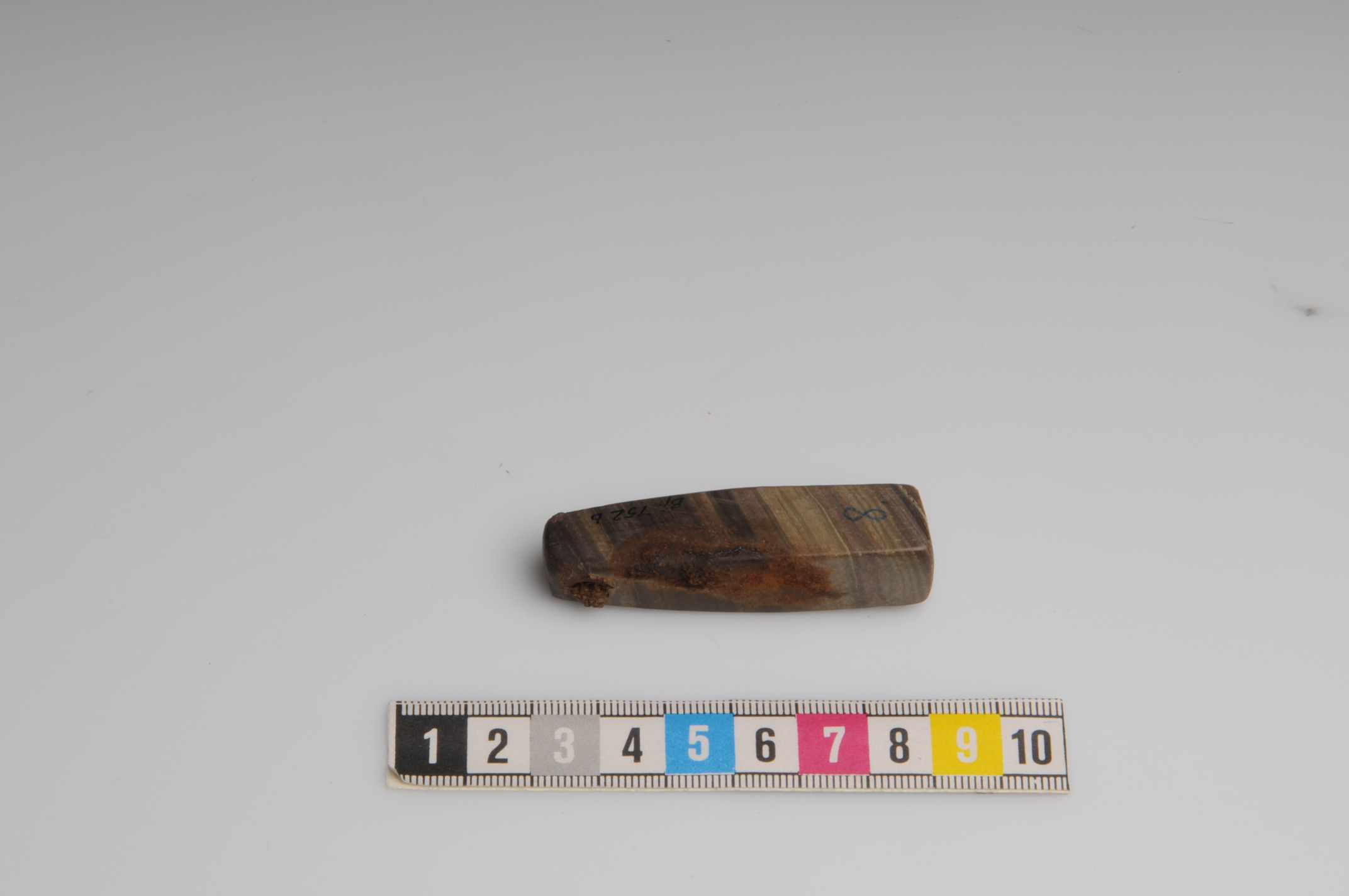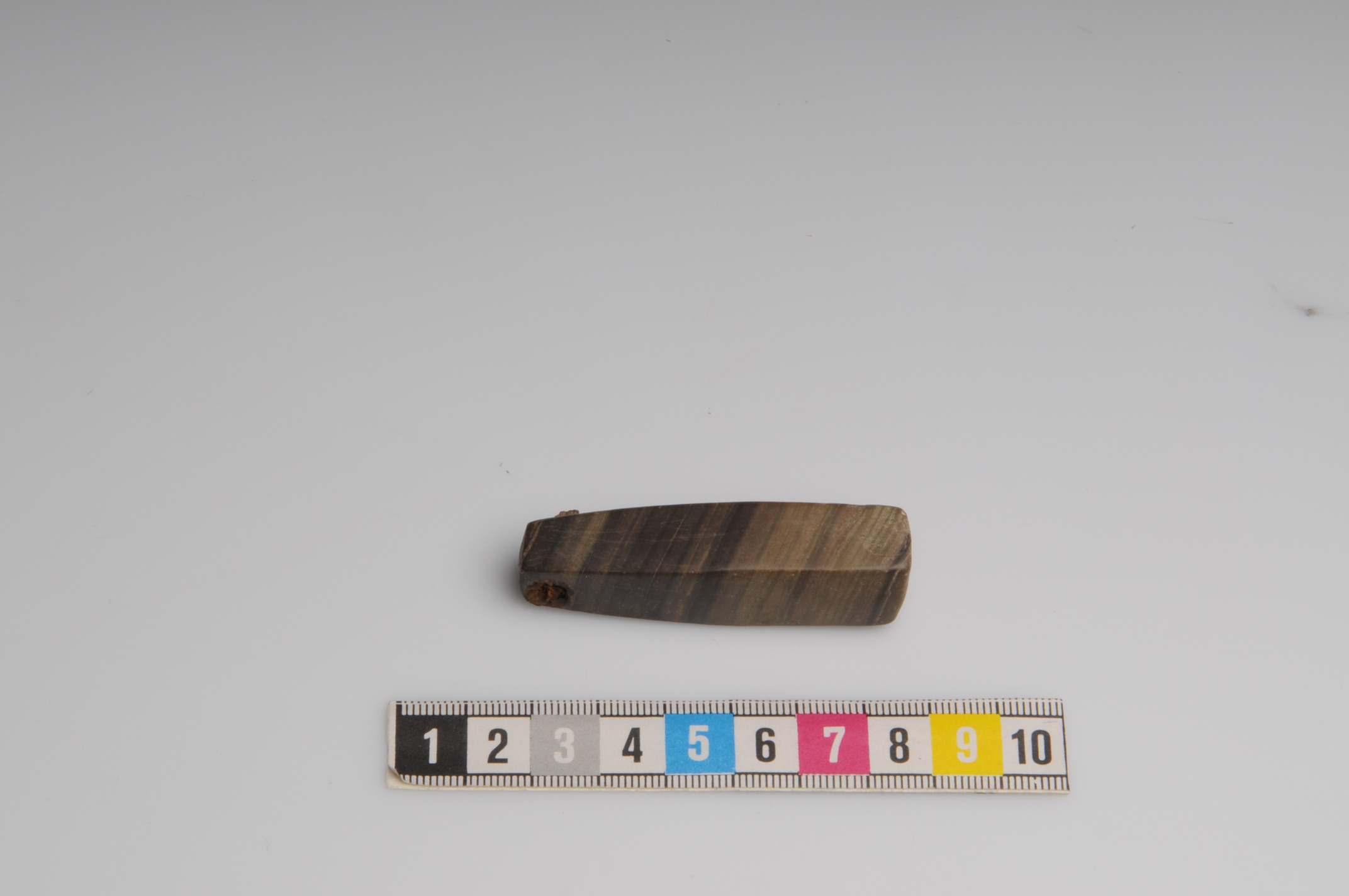 Hängbryne av bandskiffer med rester av bärring av järn.