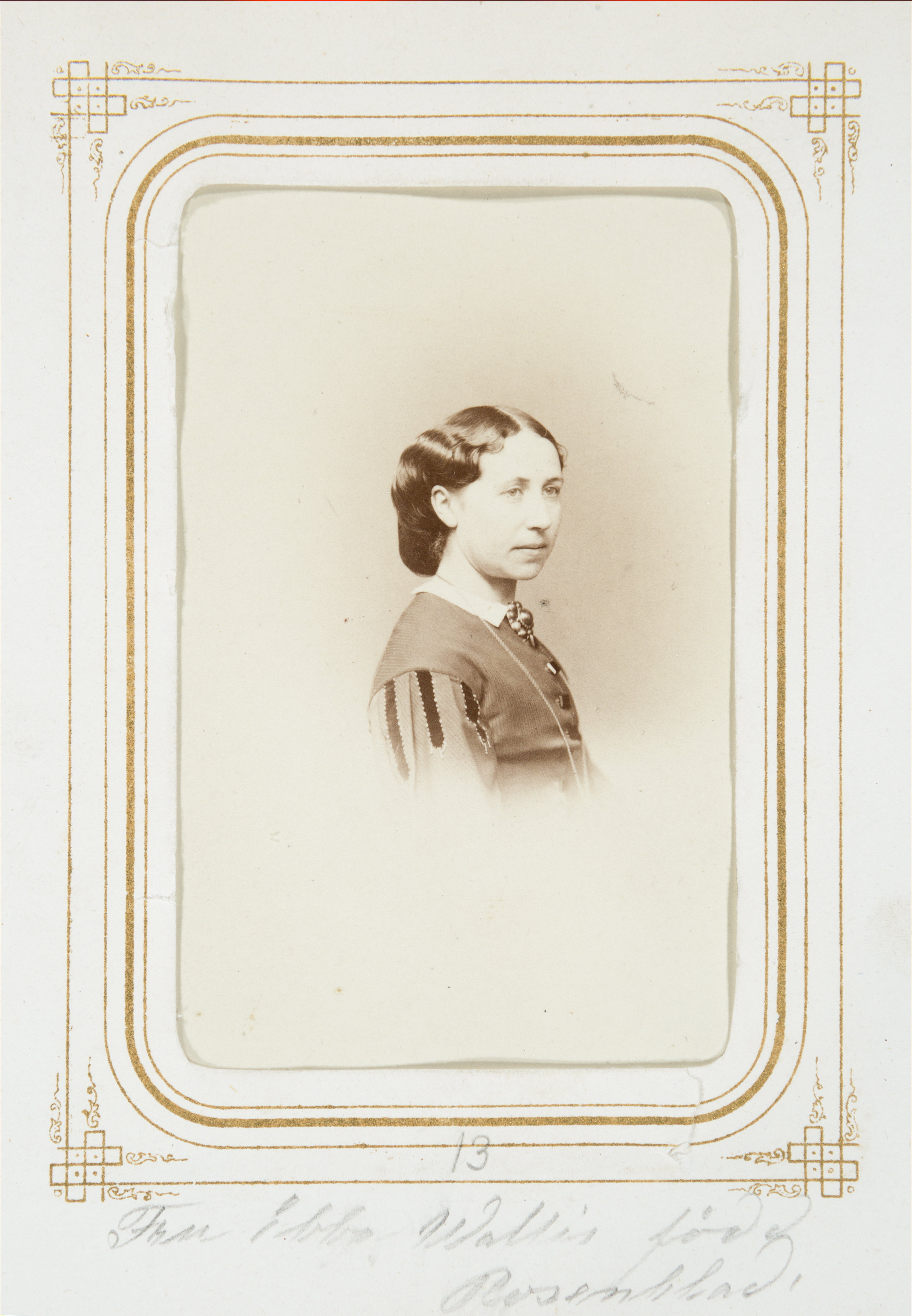 Biografi. Fotografiporträtt. 101 porträtt i album. FRU EBBA WALLIS, f. ROSENBLAD. Erhållet av Johanna Kempe, f. Wallis på 1860-talet. 26,5x20,7x4 cm.