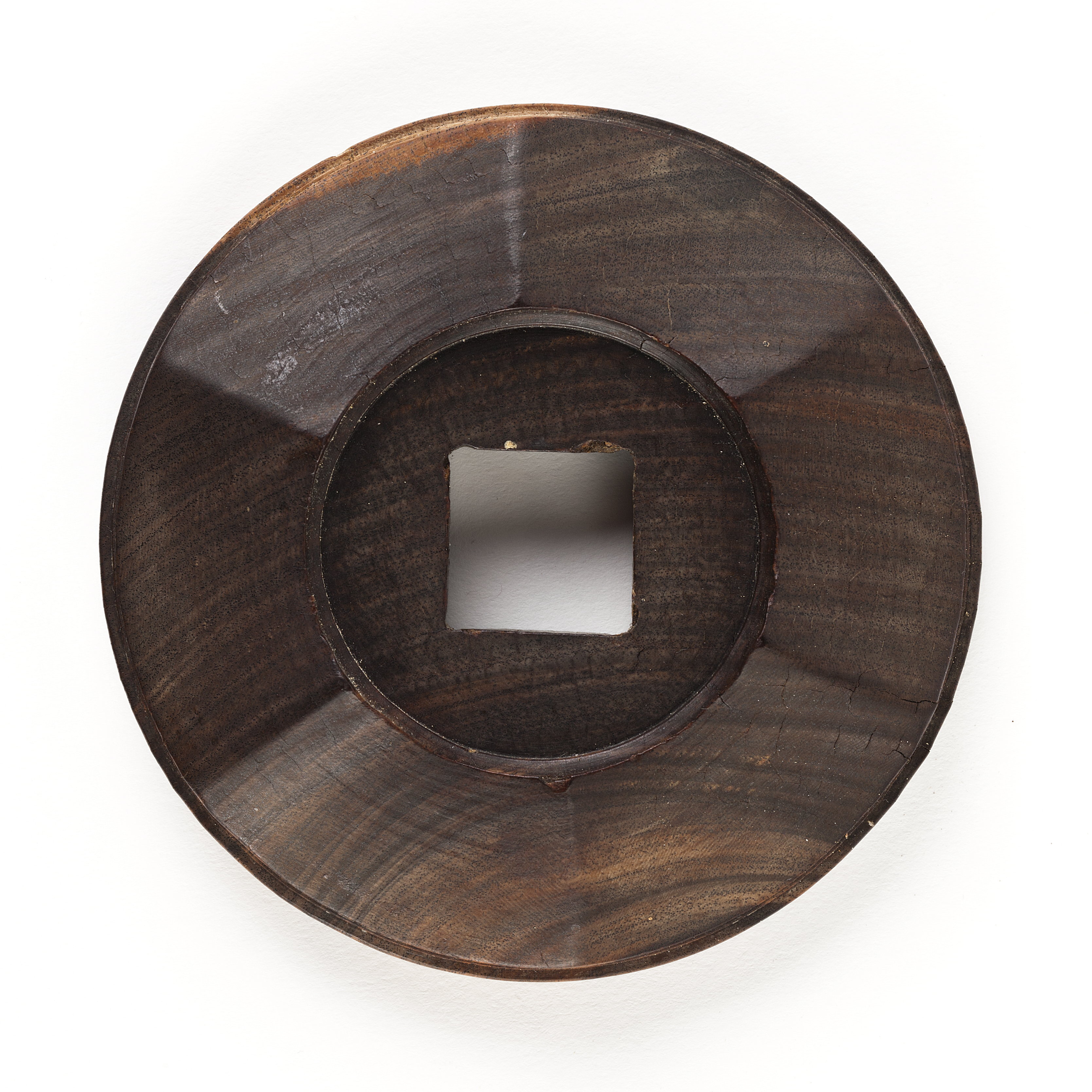 Rund rosett av mörkt ädelträ, till passigsvarv.