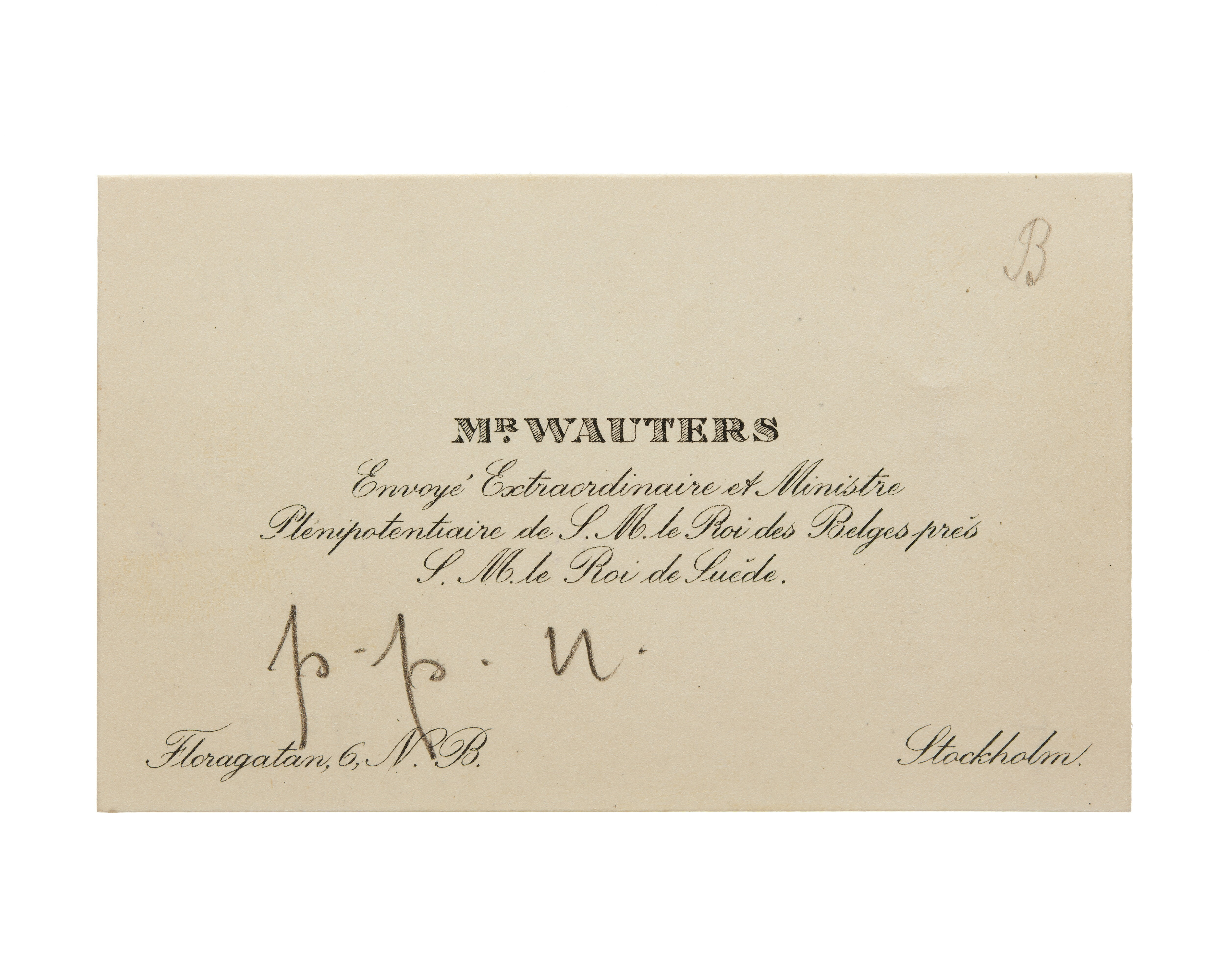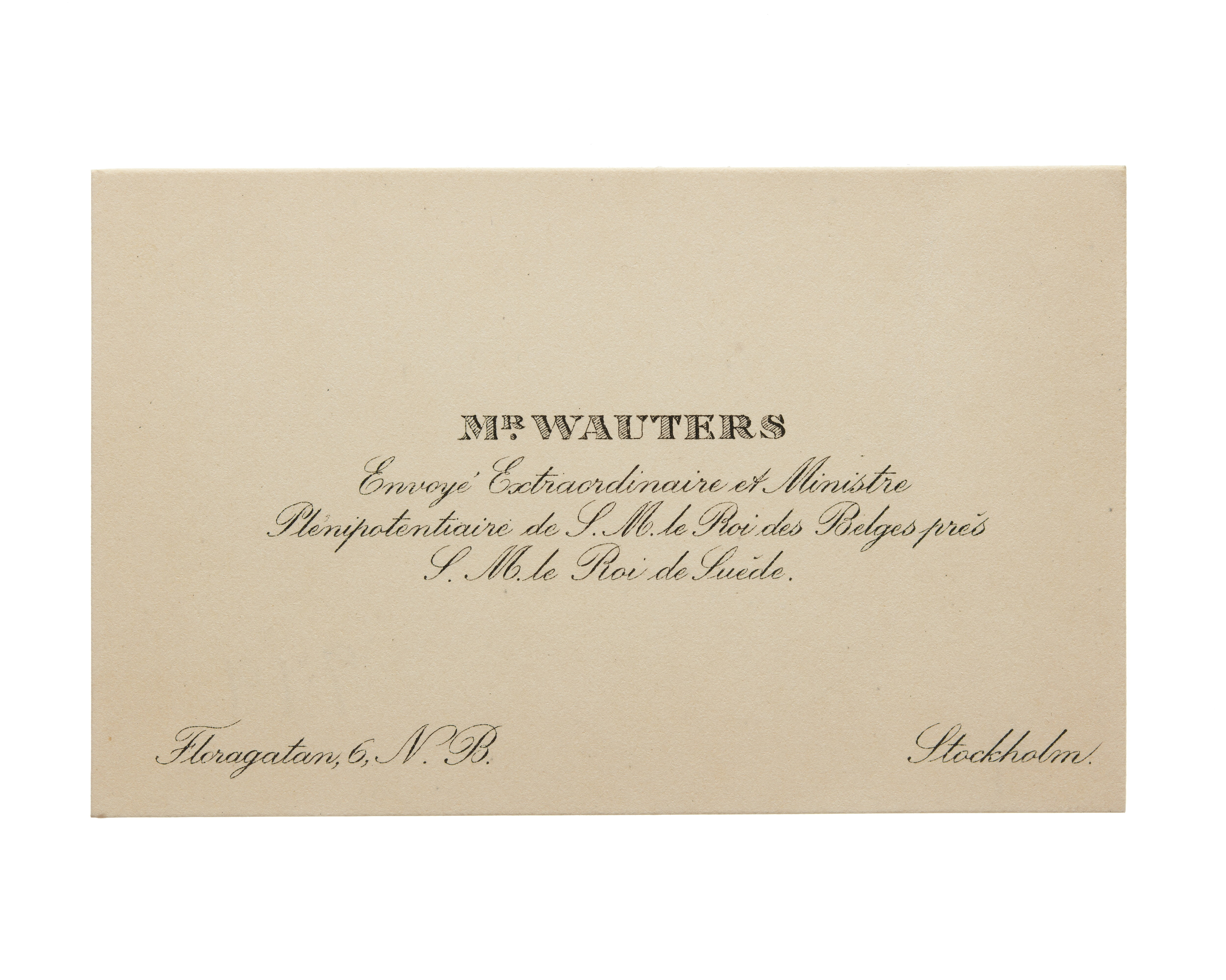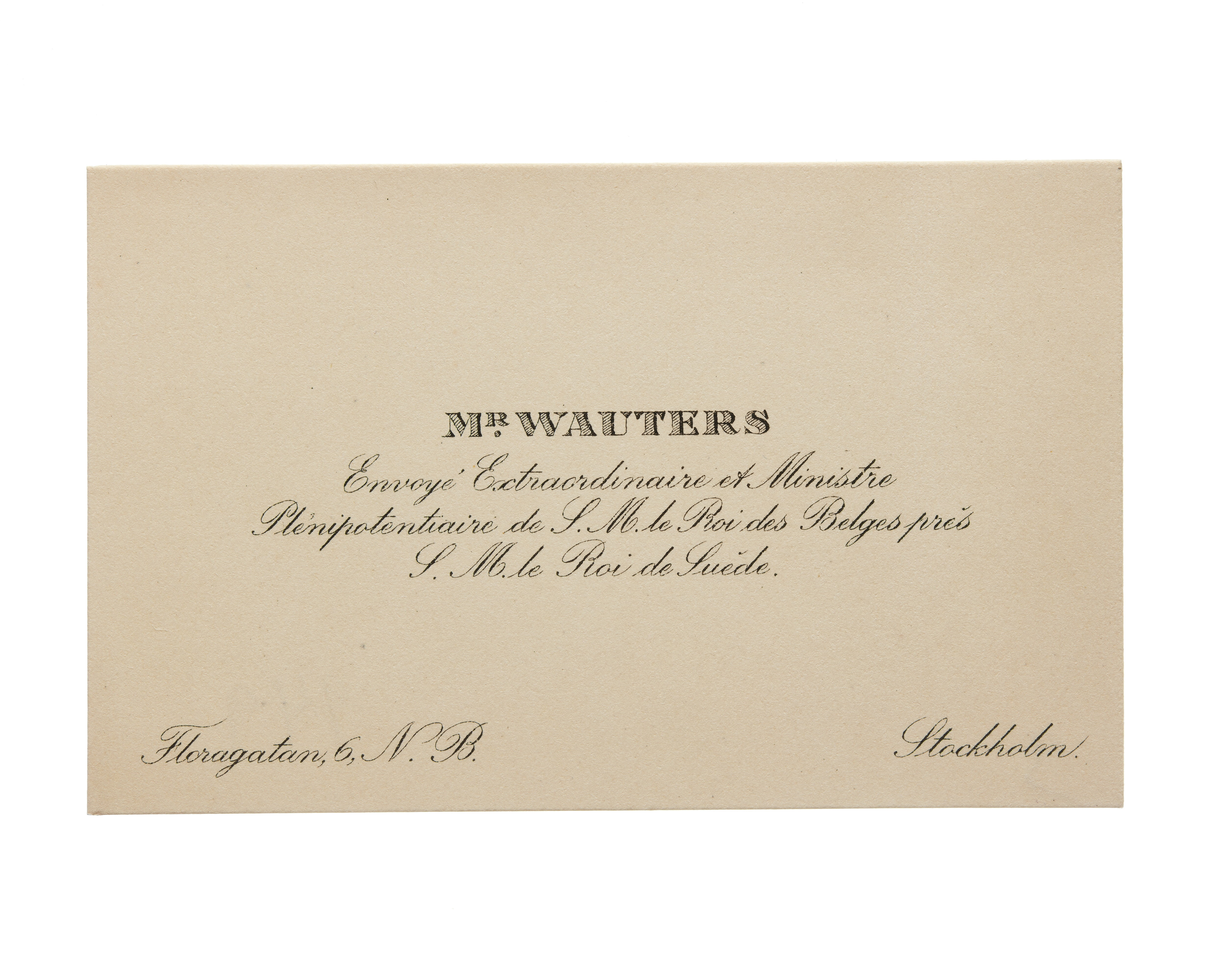Visitkort från Mr Wauters, Ministre de Belgique.