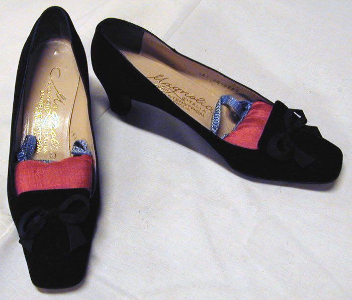 Rosa sidenskodyna, hjärtformad med ett blå-vitt linneripsband fastsytt upptill.