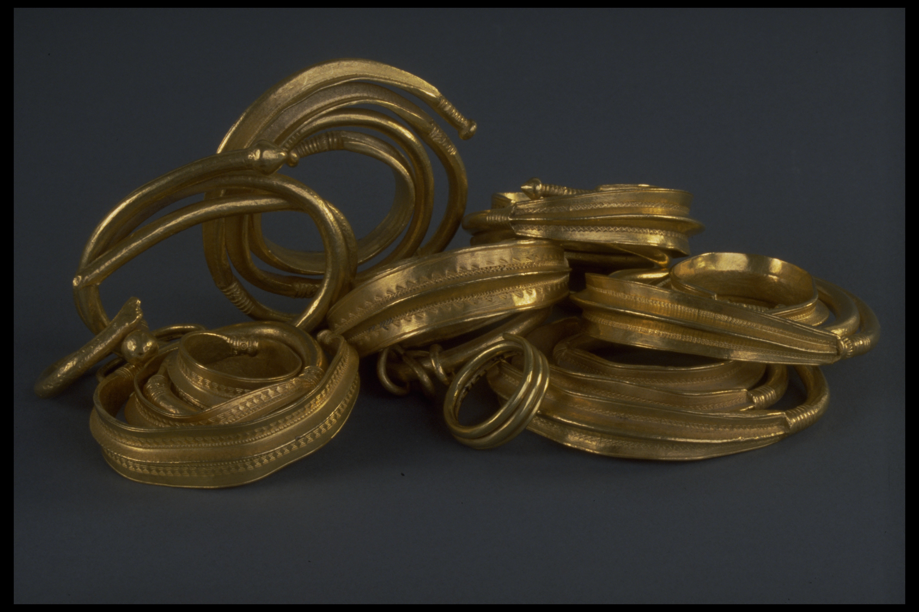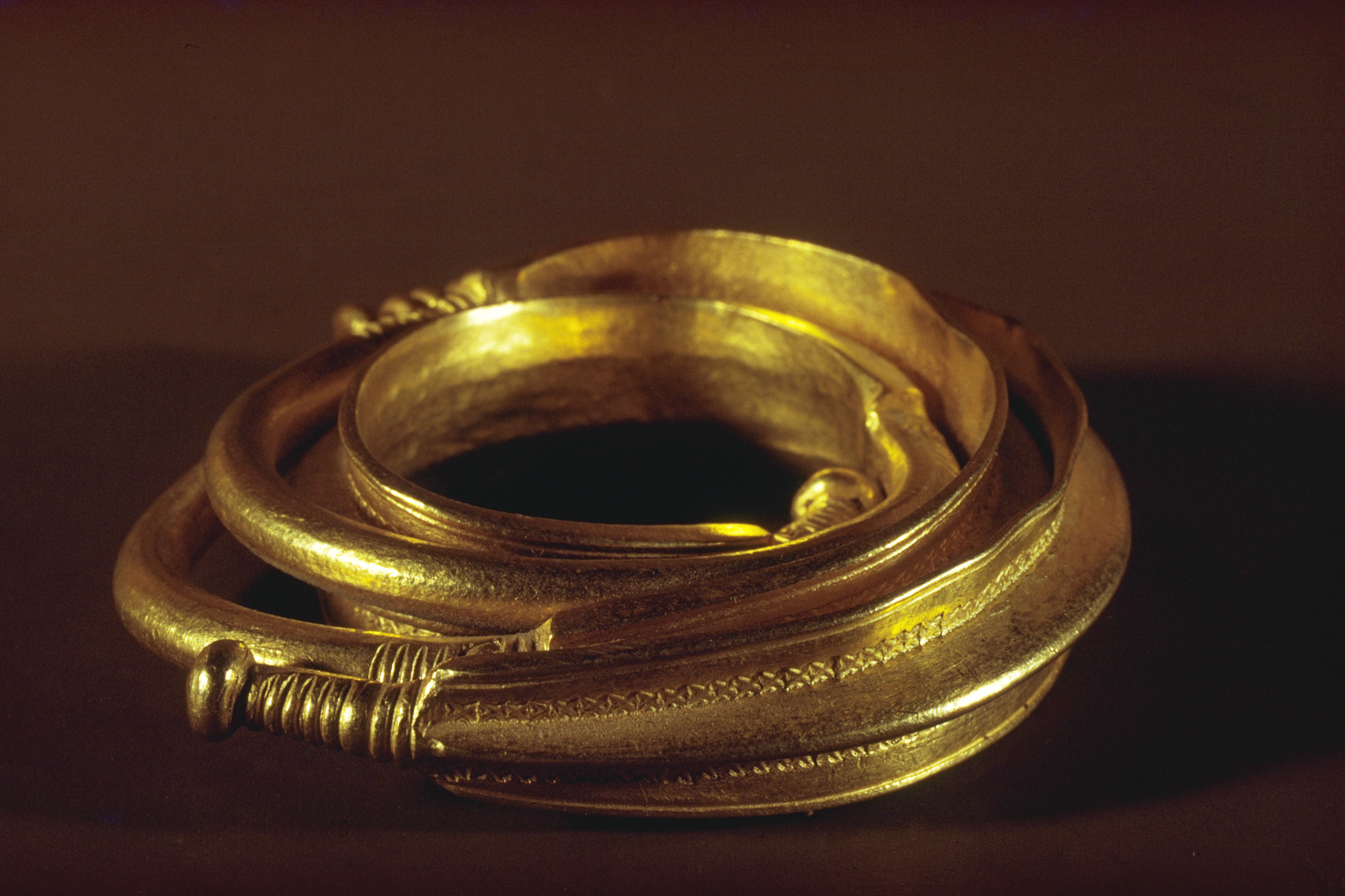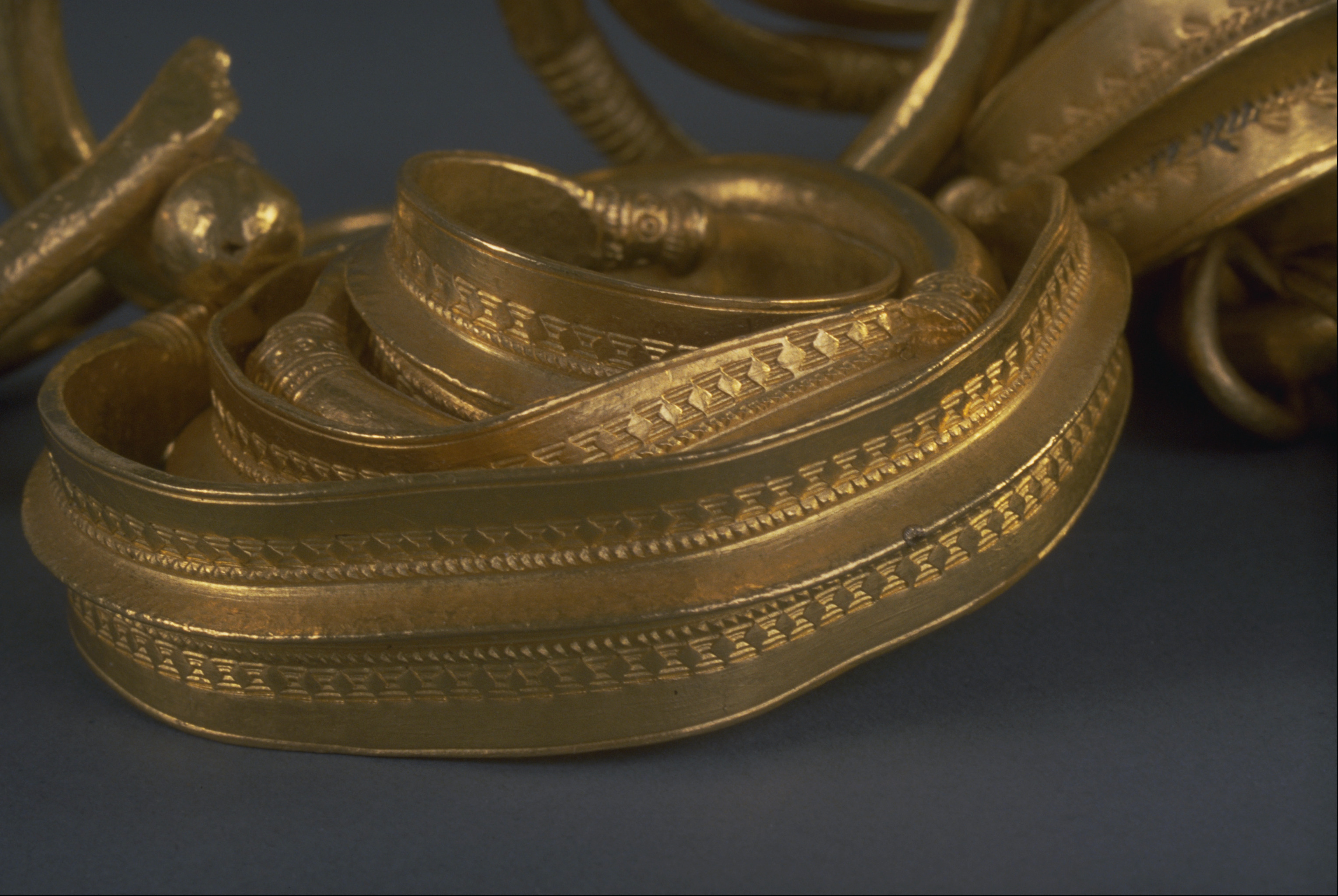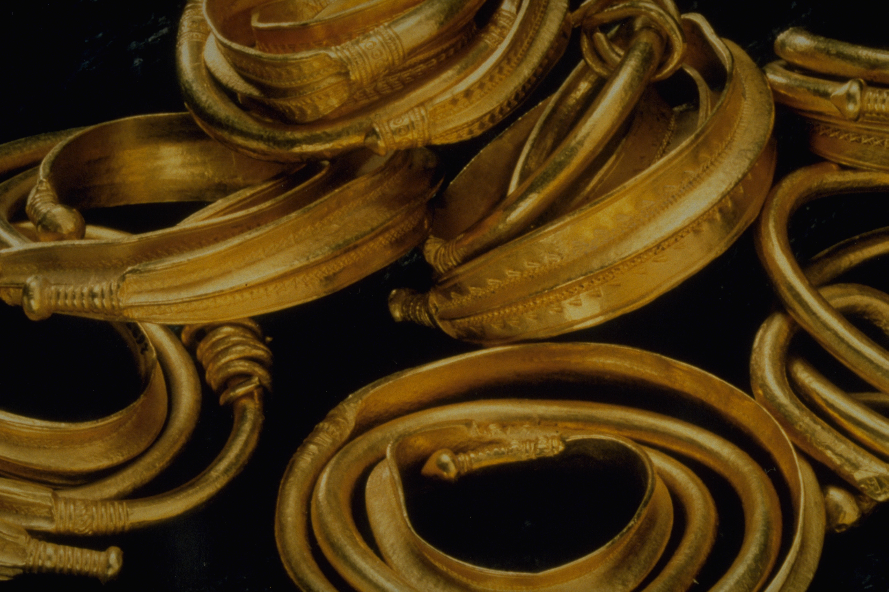 Ormhuvudring som hals- eller armring, av guld.