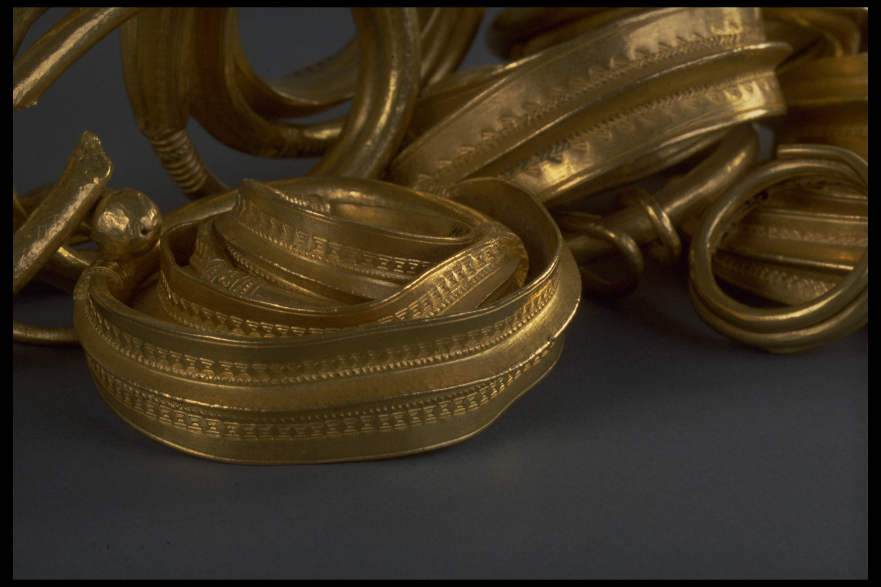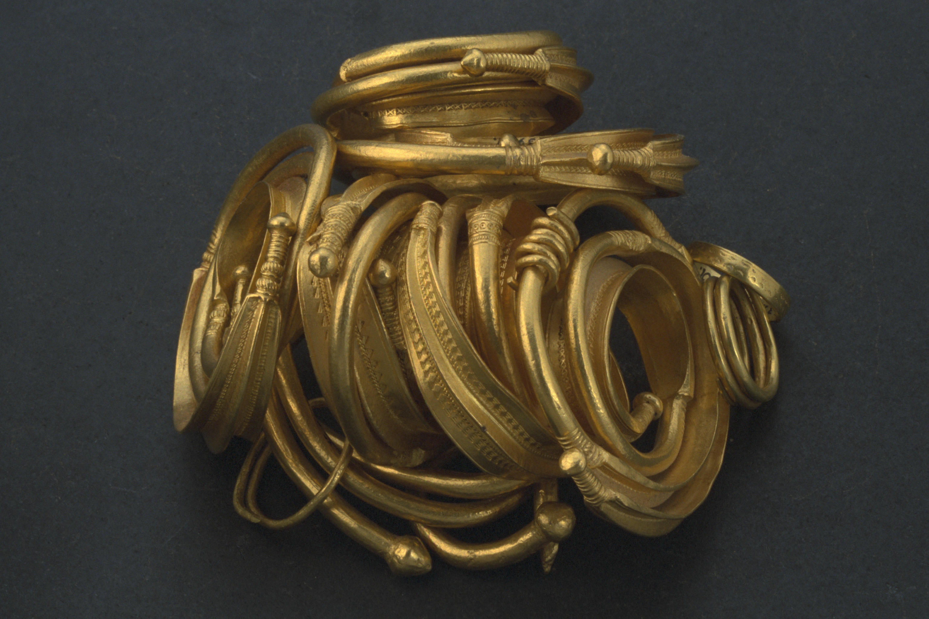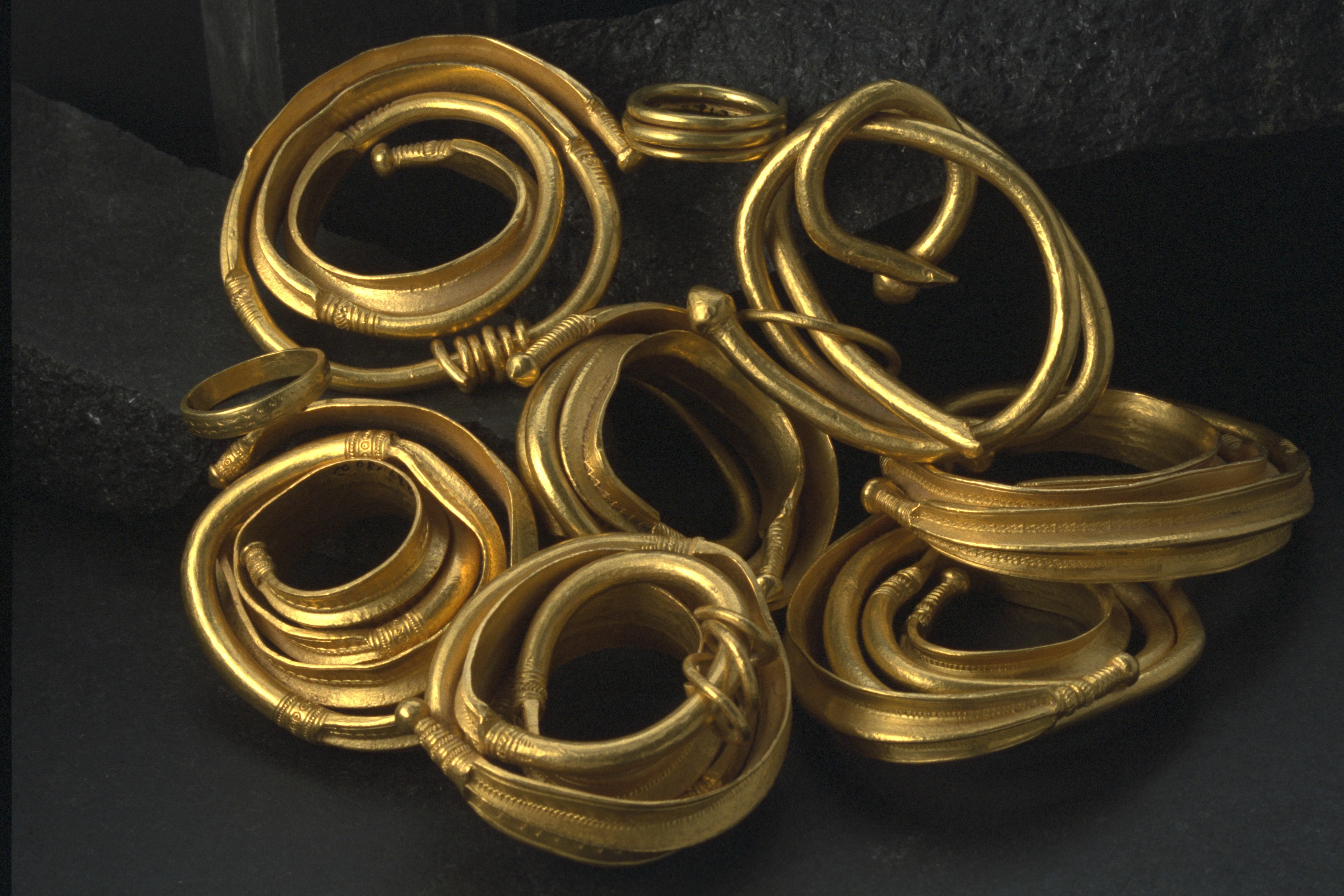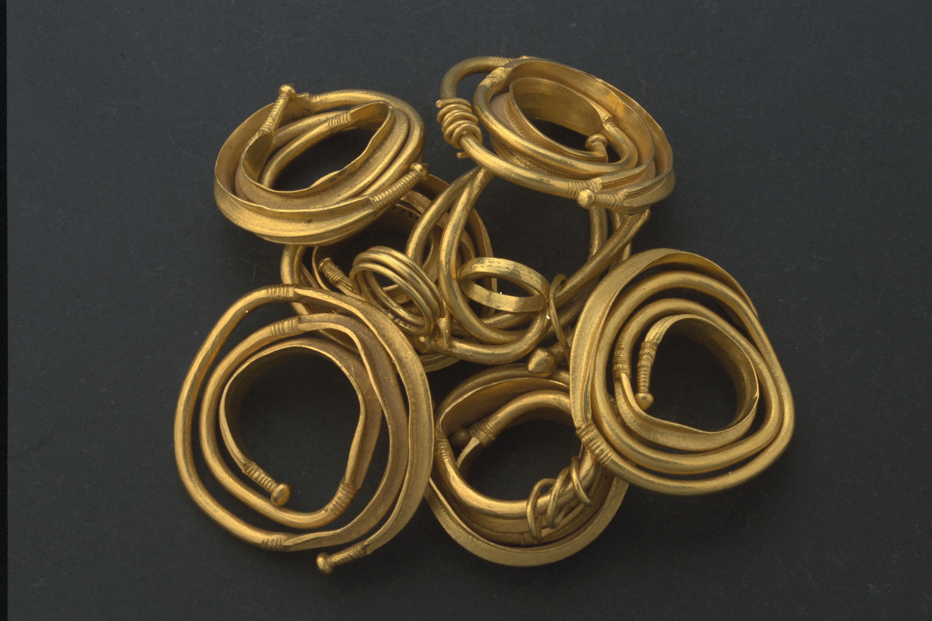 Ormhuvudring som hals- eller armring, av guld.