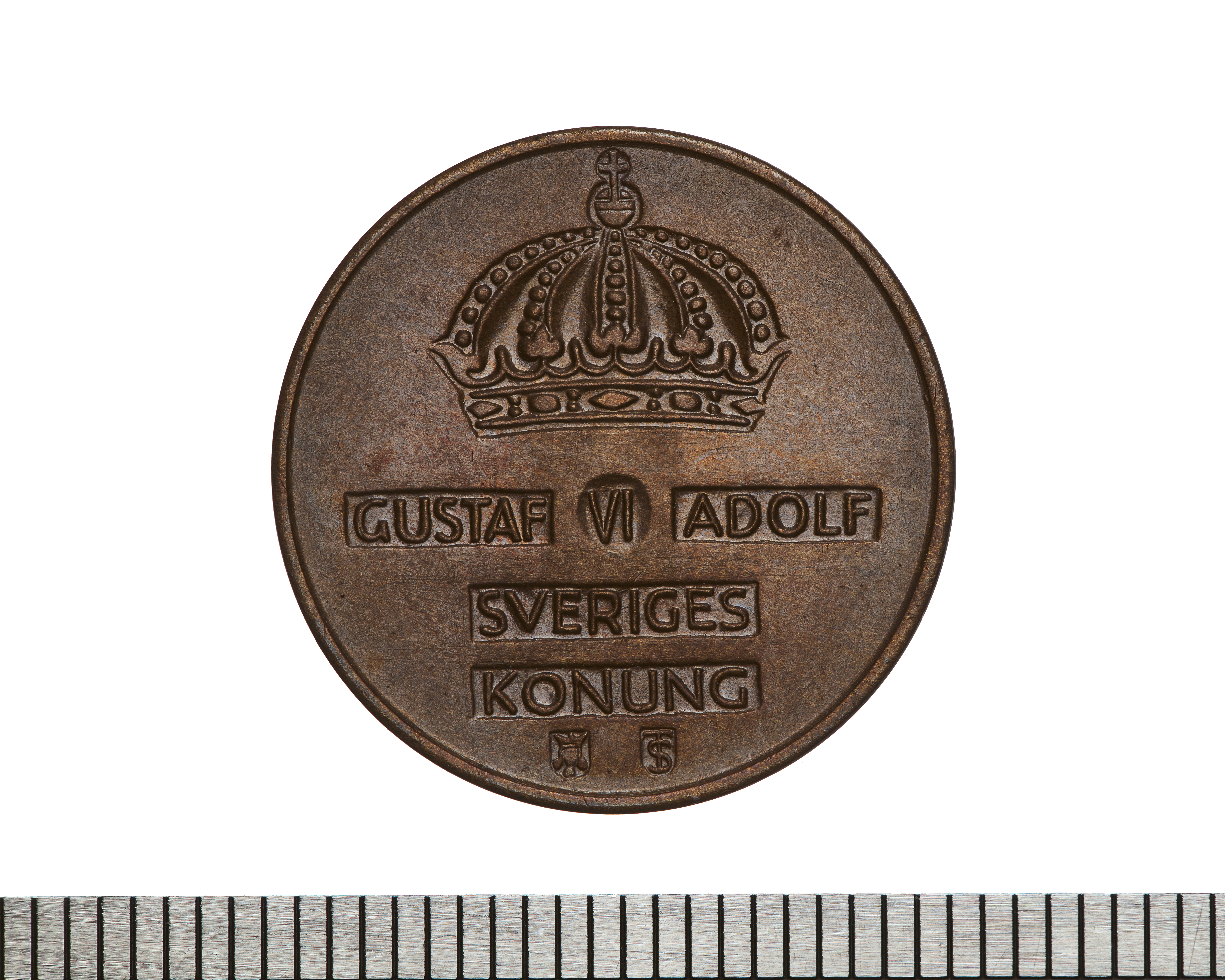 Upphov: Gustaf VI Adolf av Sverige. Media: Bonnevier, Helena. Ekonomiska museet - Kungliga myntkabinettet/SHM, (CC BY 4.0) Du får bearbeta och dela verket för alla ändamål, även kommersiella, så länge du anger upphovsperson och licensgivare.