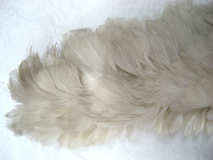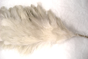 Svagt bågformad ståndarplym av vita, klippta tuppfjädrar. Fjädrarna är sammanfästade på ett rakt skaft av stål. Vid skarven mellan fjädrar och skaft är virat med gråvit tråd.