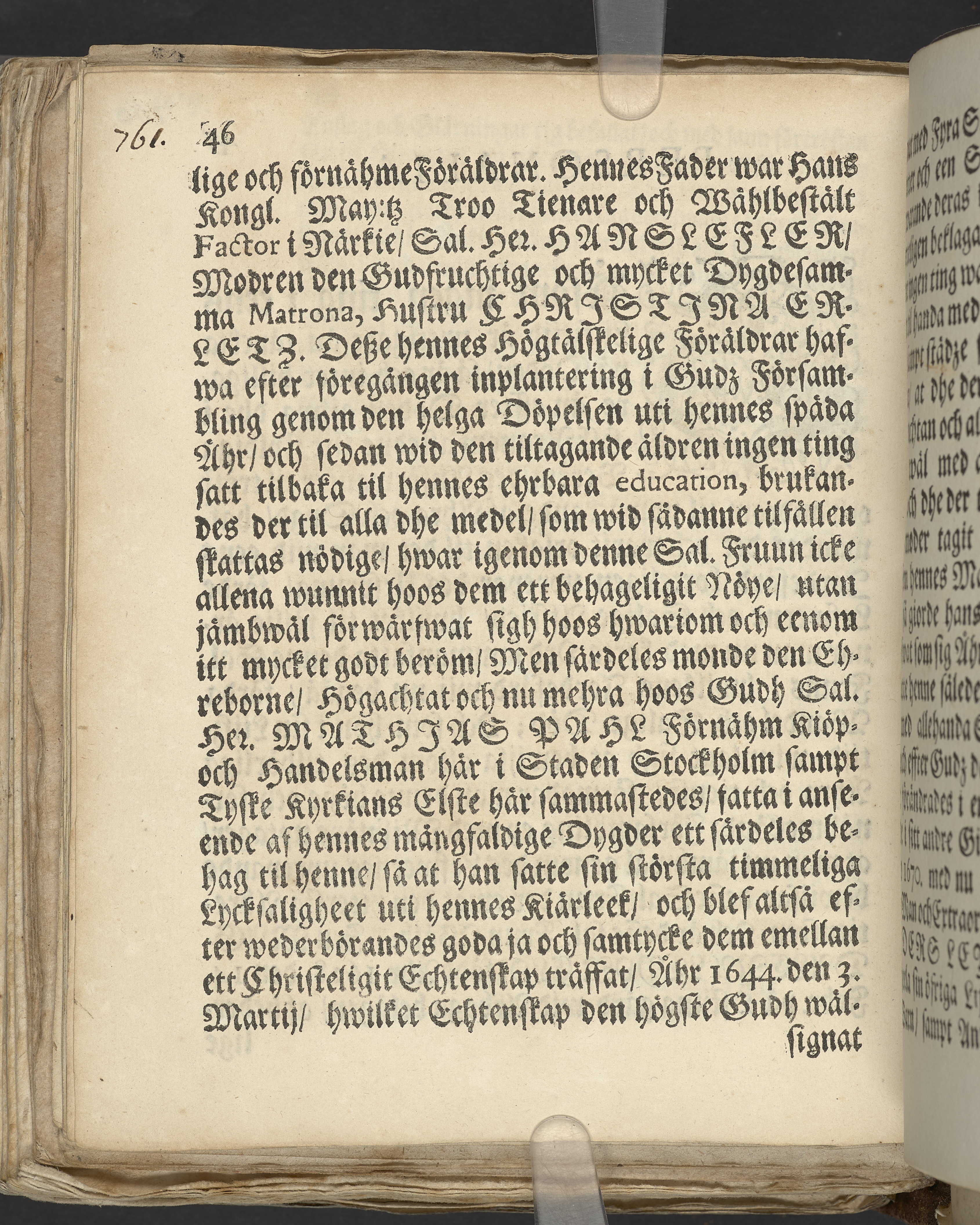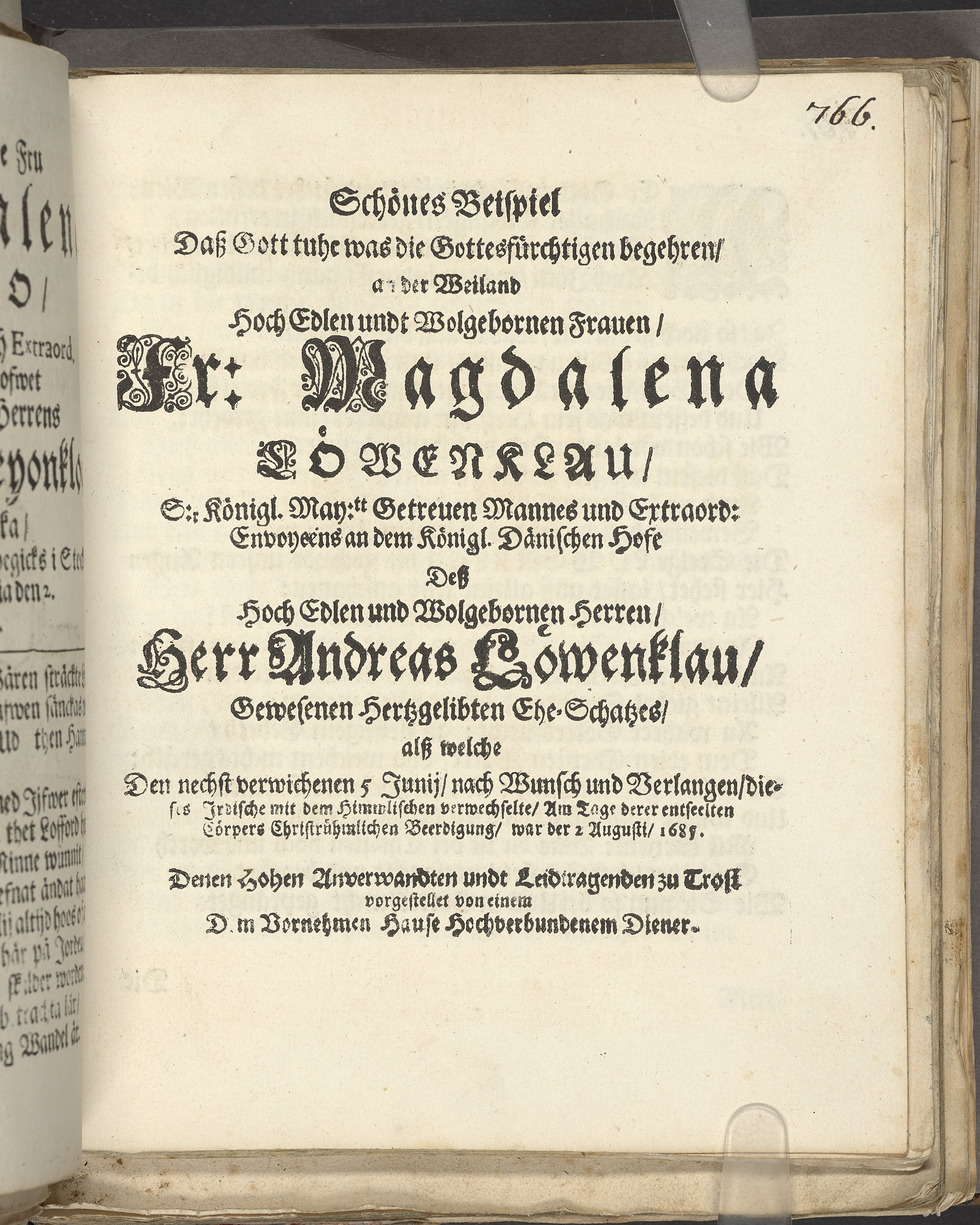 Menniskans wäg Gudi bafallad, vti en christelig lijkpredikan, af konung Davidz ord i then 37. psal. v. 5. tå then edle och wälb. fruus, F. Magdalenae Leyonkloos ... wälb. Her Anders Leyonkloos för thetta älskelige kiäre makes [!] andelöse lekamen, af en hög och anseenlig församblings beledsagande, uti sitt hwijlorum i Stockholms store, eller S. Nicolai Kyrckia infördes, åhr 1686 den 2. augusti, wijster och förestäld af Erick Tilas, kyrckioheerden wid S. Cath. försambling. Stockholm. Tryckt af Henrich Keyser, kongl. booktr.
