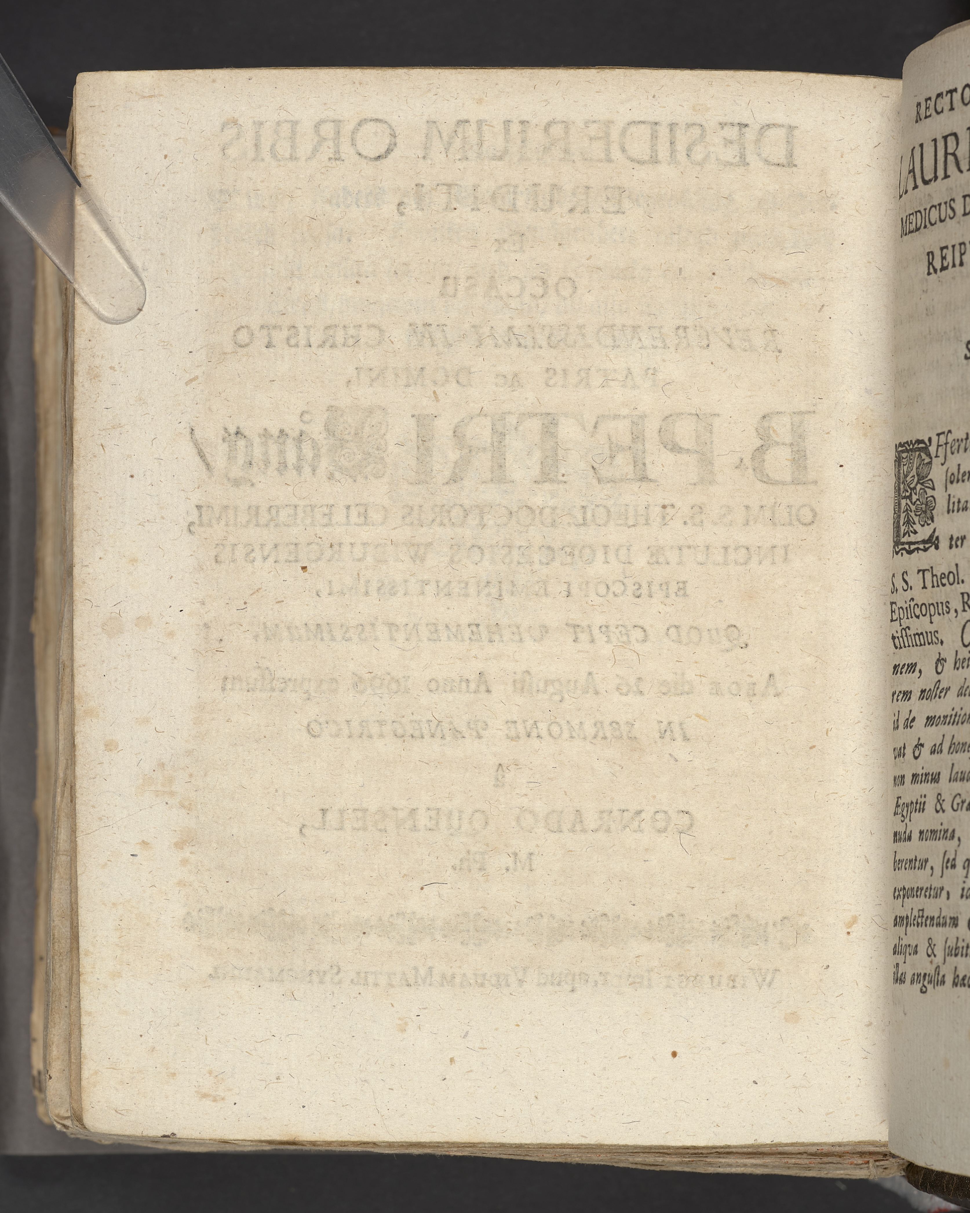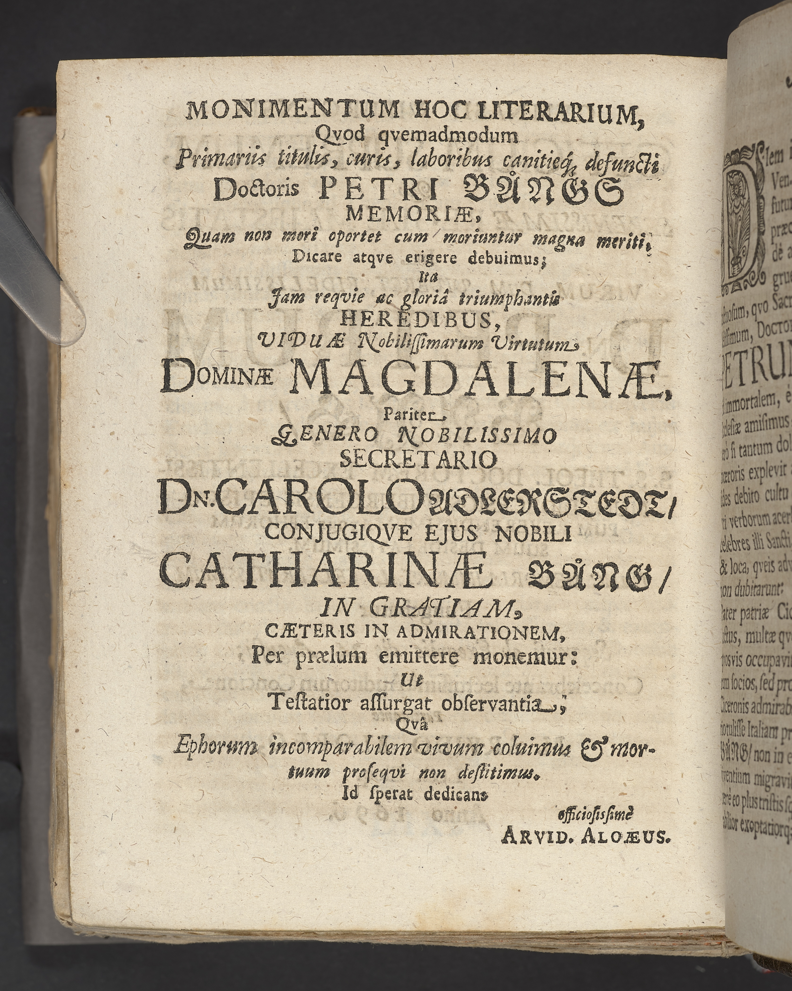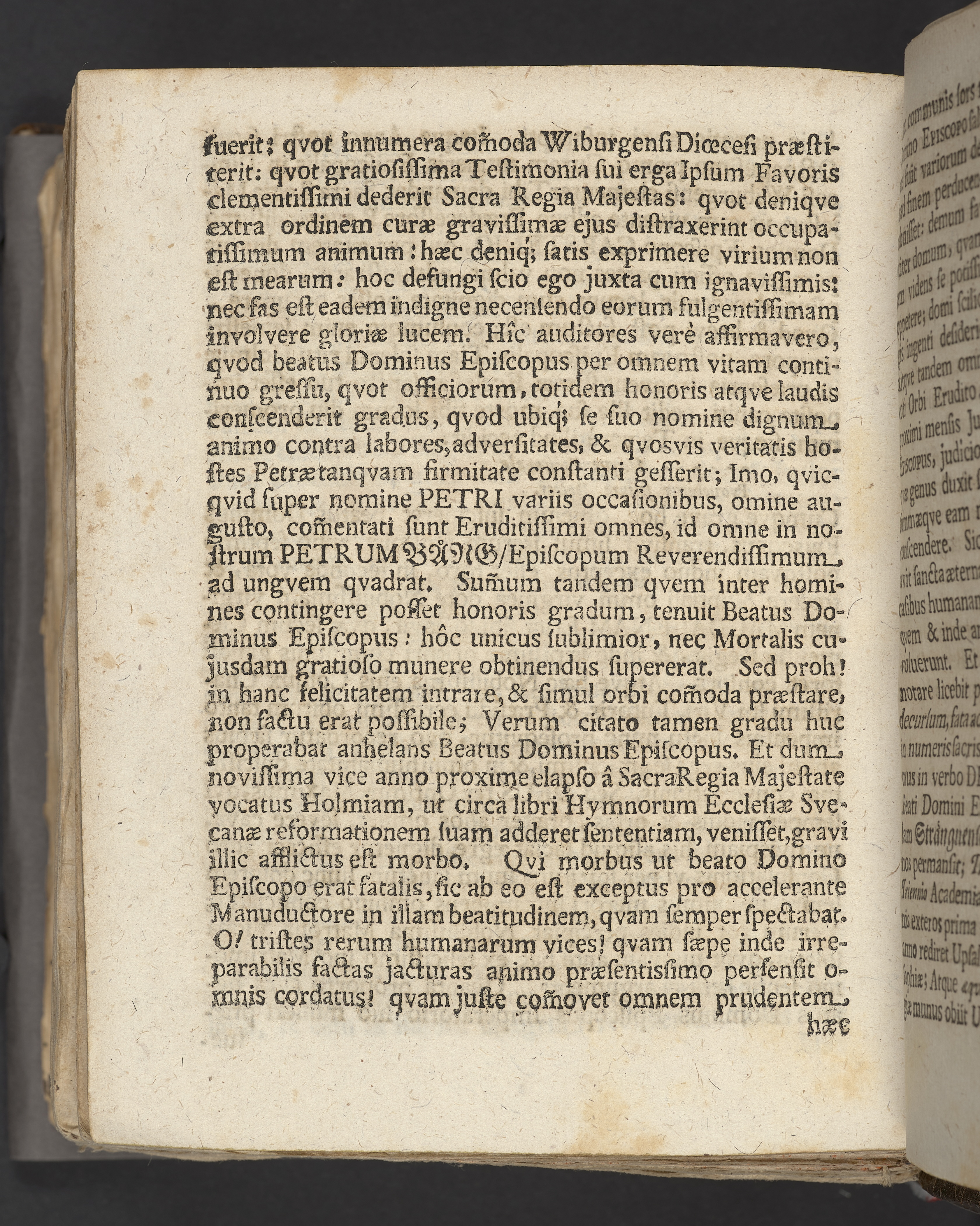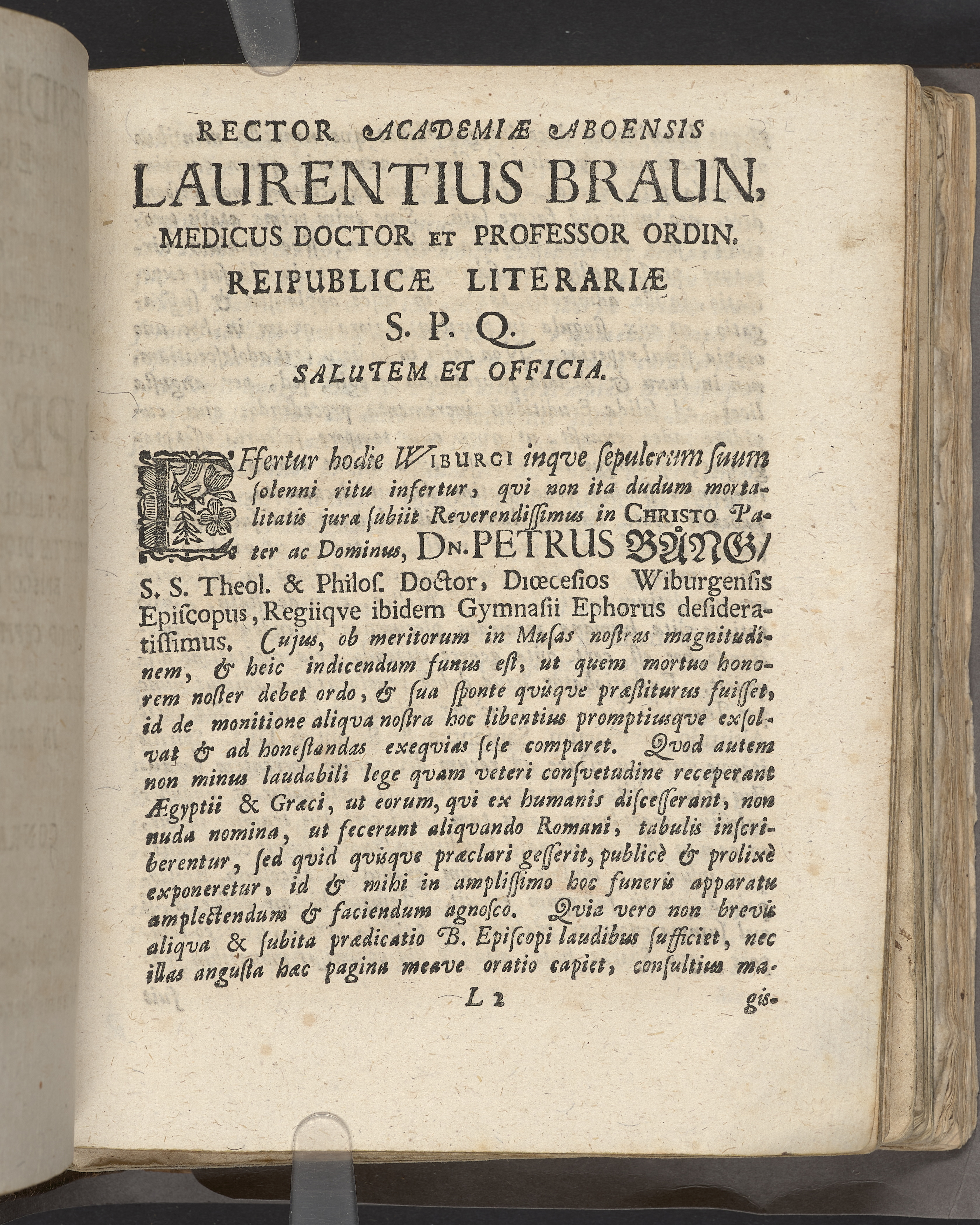 Desiderium orbis eruditi, ex occasu ... B. Petri Bång ... Aboæ die 26 augusti anno 1696 expressum in sermone panegyrico â Conrado Quensell ... Wiburgi impr. apud viduam Matth. Syngmanni.