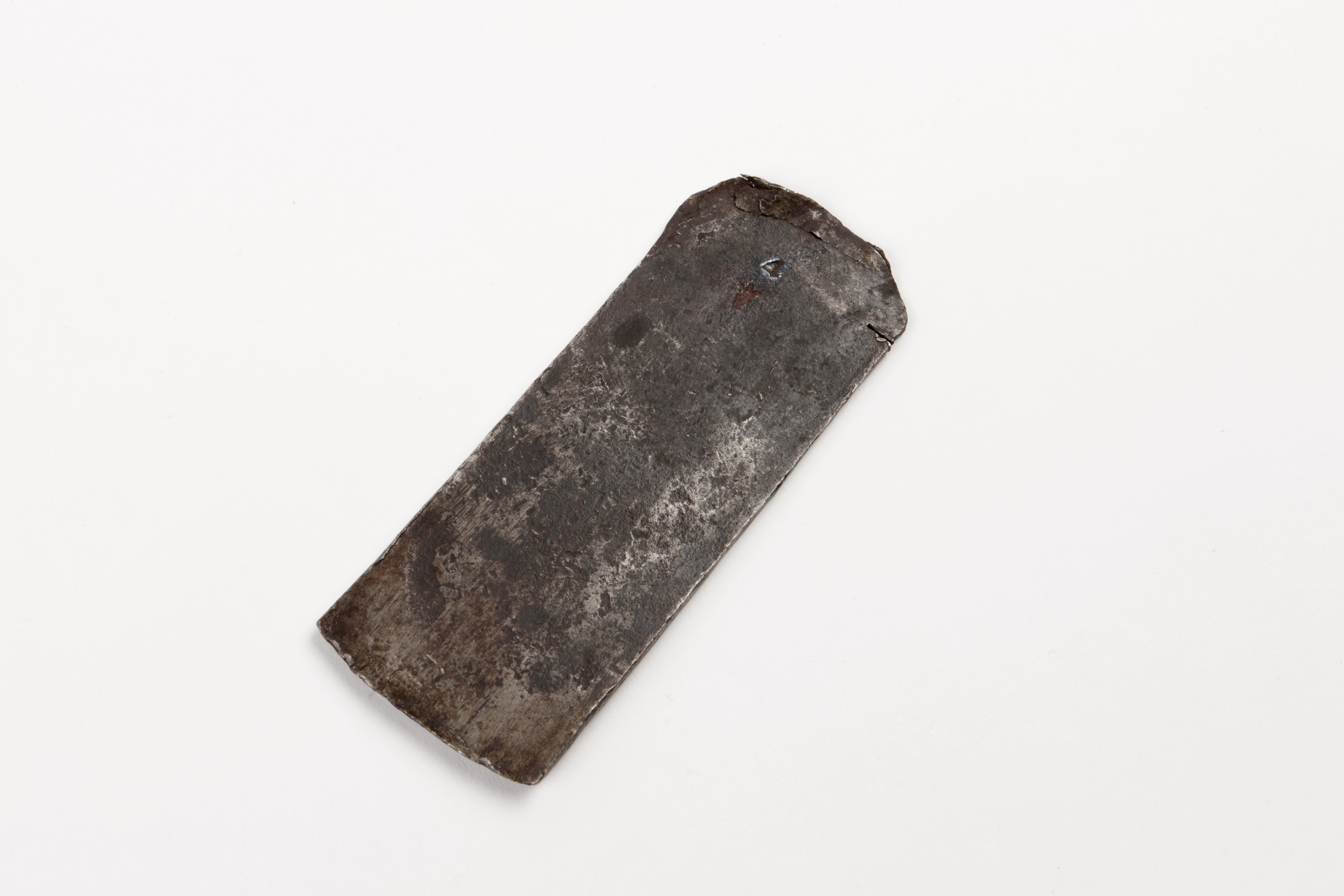 Något stukad överände. Stämplad: 4 och otydligt, krönt rektangel.