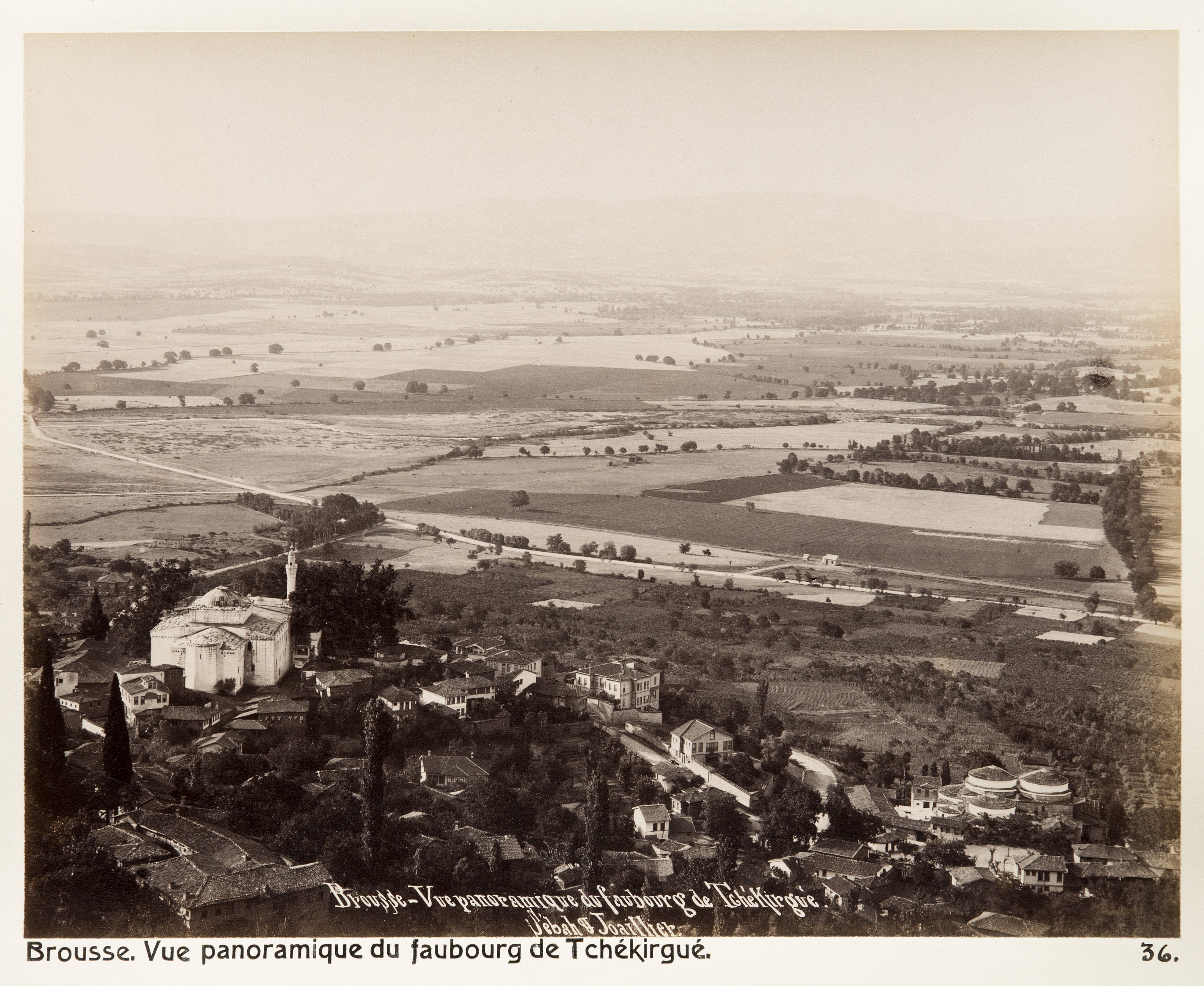 Vy över Çekirge vid Bursa. Text på originalet: "Brousse.Vue panoramique du faubourg de Tchékirgué." Fotografierna LXVI:O.01.-54. kommer från resan till Turkiet och Mindre Asien som Wilhelmina och Walther von Hallwyl gjorde den 27 april - 20 juni 1901. De lämnade Sverige den 5 november 1900 för Egypten, där de stannade till den 28 mars 1901, då de fortsatte till Palestina. Den 27 april fortsatte de till Turkiet och Mindre Asien. Med på resan var Wilhelminas sällskapsdam, fröken Ida Uhse. I Konstantinopel (Istanbul) anslöt sig Wilhelminas mor Johanna Kempe och kusindottern Elma Hök. Fotografierna är inköpta av Wilhelmina i Konstantinopel (Istanbul) och Brussa. Alla uppgifter kommer från Ida Uhses reseanteckningar.