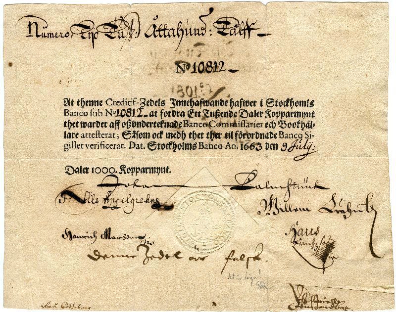 Upphov: Stockholms banco. Media: Statens historiska museer. Ekonomiska museet - Kungliga myntkabinettet/SHM, (PDM) Upphovsrätten till detta verk har gått ut och är därmed fritt att använda på alla sätt. Ange gärna upphovsperson om denne är känd.