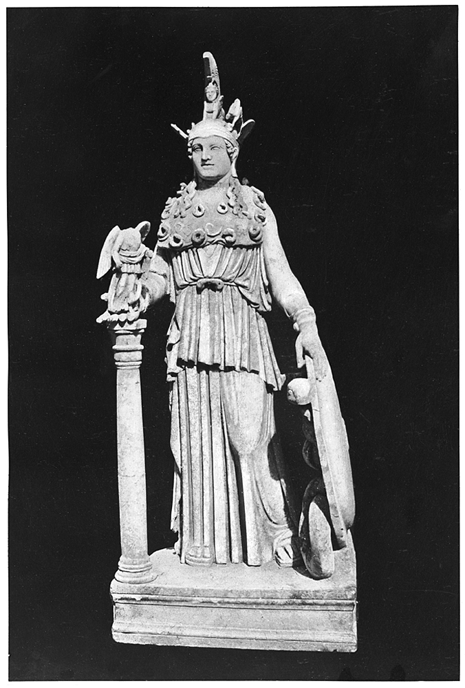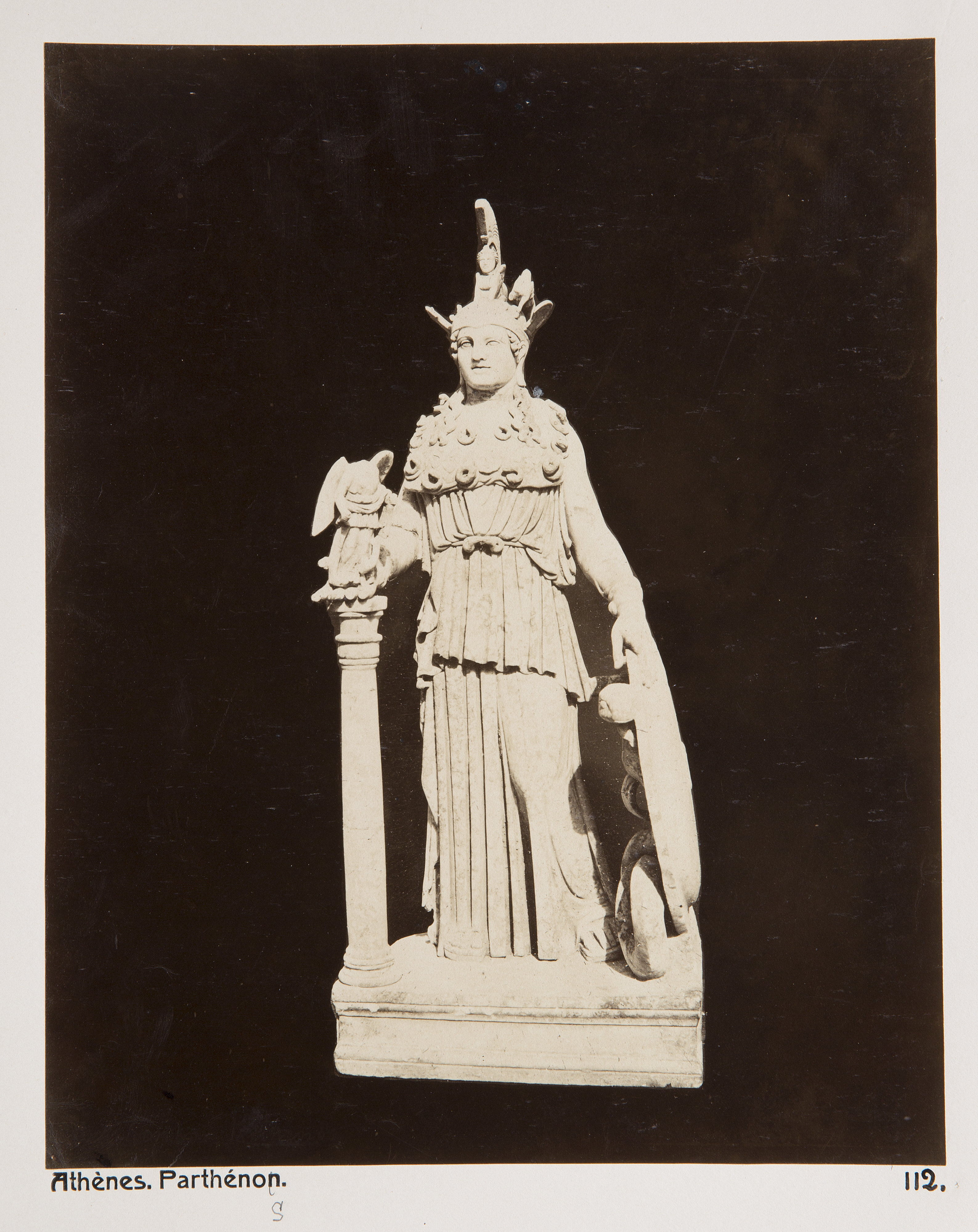Athena Parthenos. Text på originalet: Athènes. Athèna Parthénos. Foto från resa genom Grekland, Makedonien och Serbien, 15 mars-6 juni 1896. Fotografierna LXVI:K.18.-147. är köpta av Wilhelmina von Hallwyl, f. Kempe på Korfu samt i Patras, Nafplion, Aten, Thessaloniki och Belgrad. Med på resan var maken Walther von Hallwyl och fröken Ida Uhse. Uppgifterna kommer från Ida Uhses reseanteckningar.