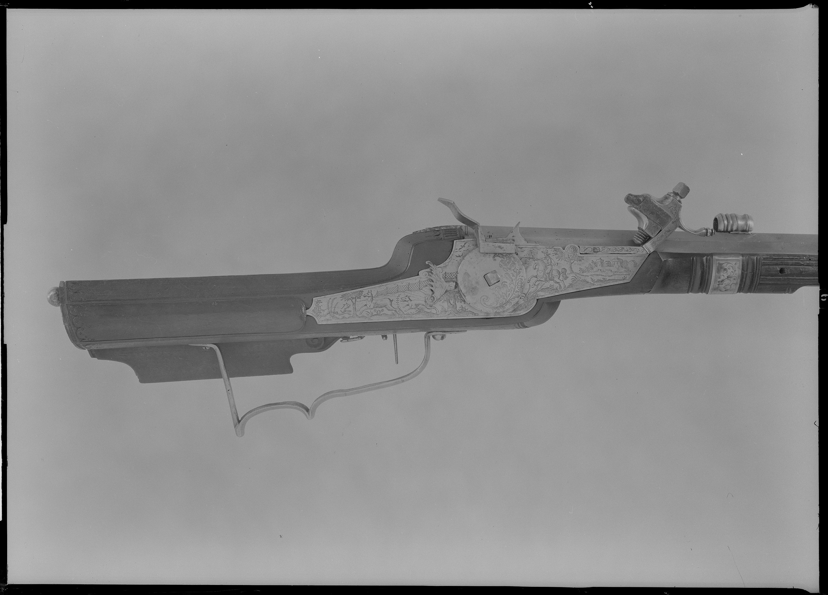 Pipa, lås och stock lika som på nr 3390. Rörsiktet fast på pipan.