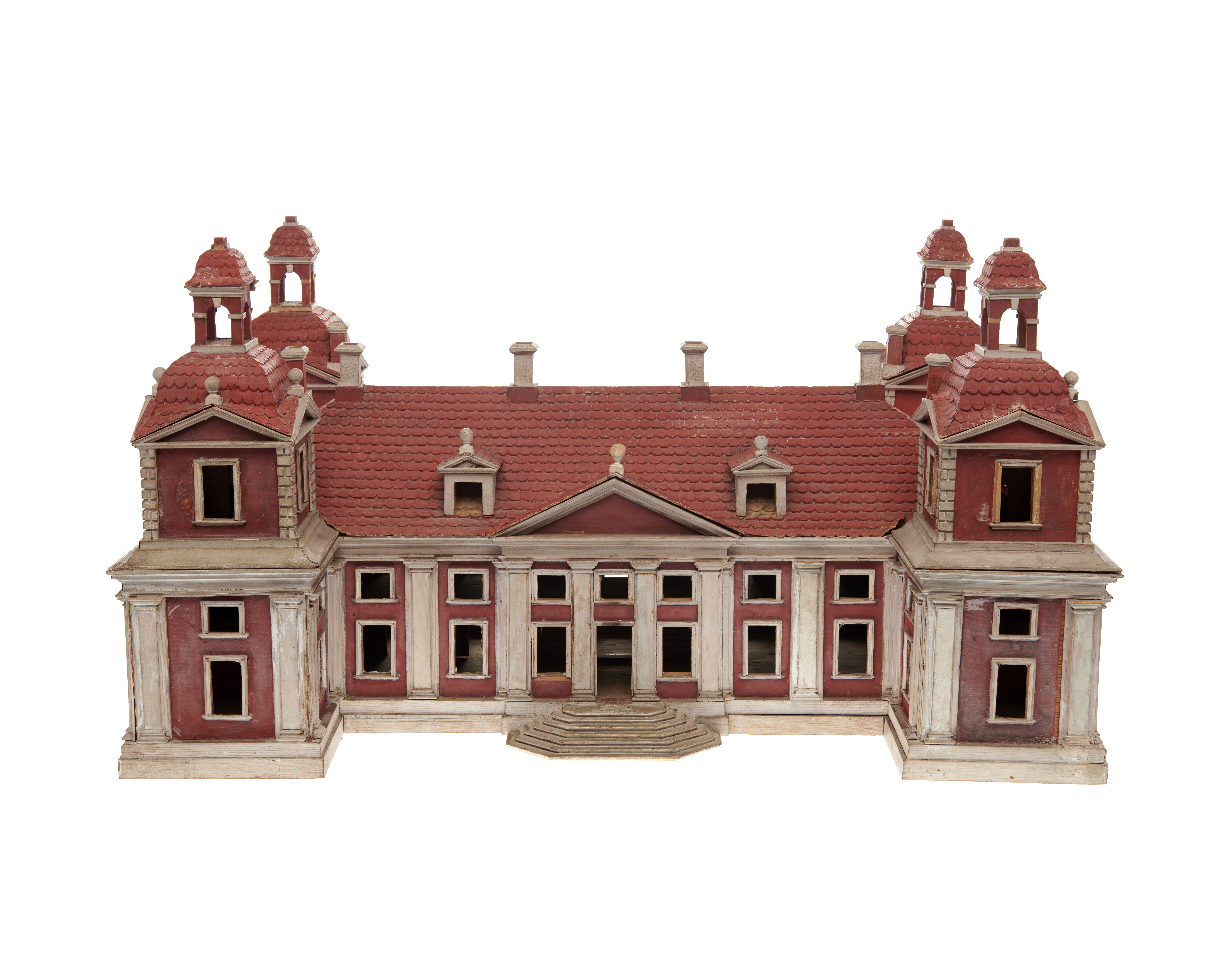 Möjligen utförd på Bergholm, under inseende av Nicodemus Tessin d.ä. 1661. Modell gjord av furu och björk, målad i rött och vitt. Rektangulär byggnad i två våningar med fyra fyrkantiga hörntorn. Fasader och tak är målade i rött med alla arkitekturdetaljer - pilastrar, fönsterinfattninga, rusticerade hörnkedjor - målade i vitt. Fönstren består av glimmer. Taket, tornhuvarna och mellanskivorna är löstagbara. På trappan framför entren, finns Johan Crämers namnteckning i bläck. På hussockeln till vänster om entren finns det en skala uppritad, graderad med 21 tvärsträck, varav de tio första är numrerade. Under skalan står det skrivet "Fus".