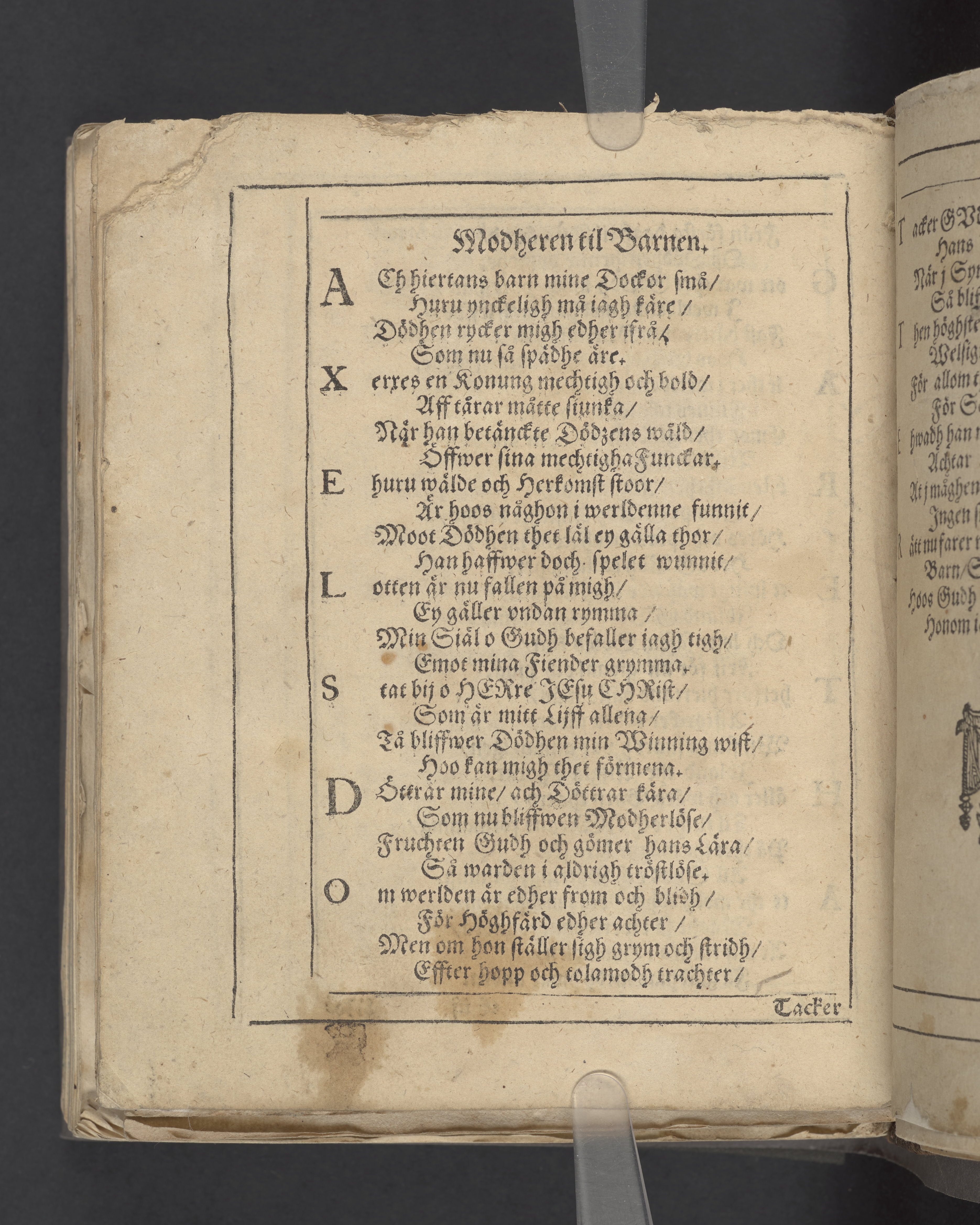 Begravningen av Margareta Axelsdotter av Göksholm (Omnämnd på/i)