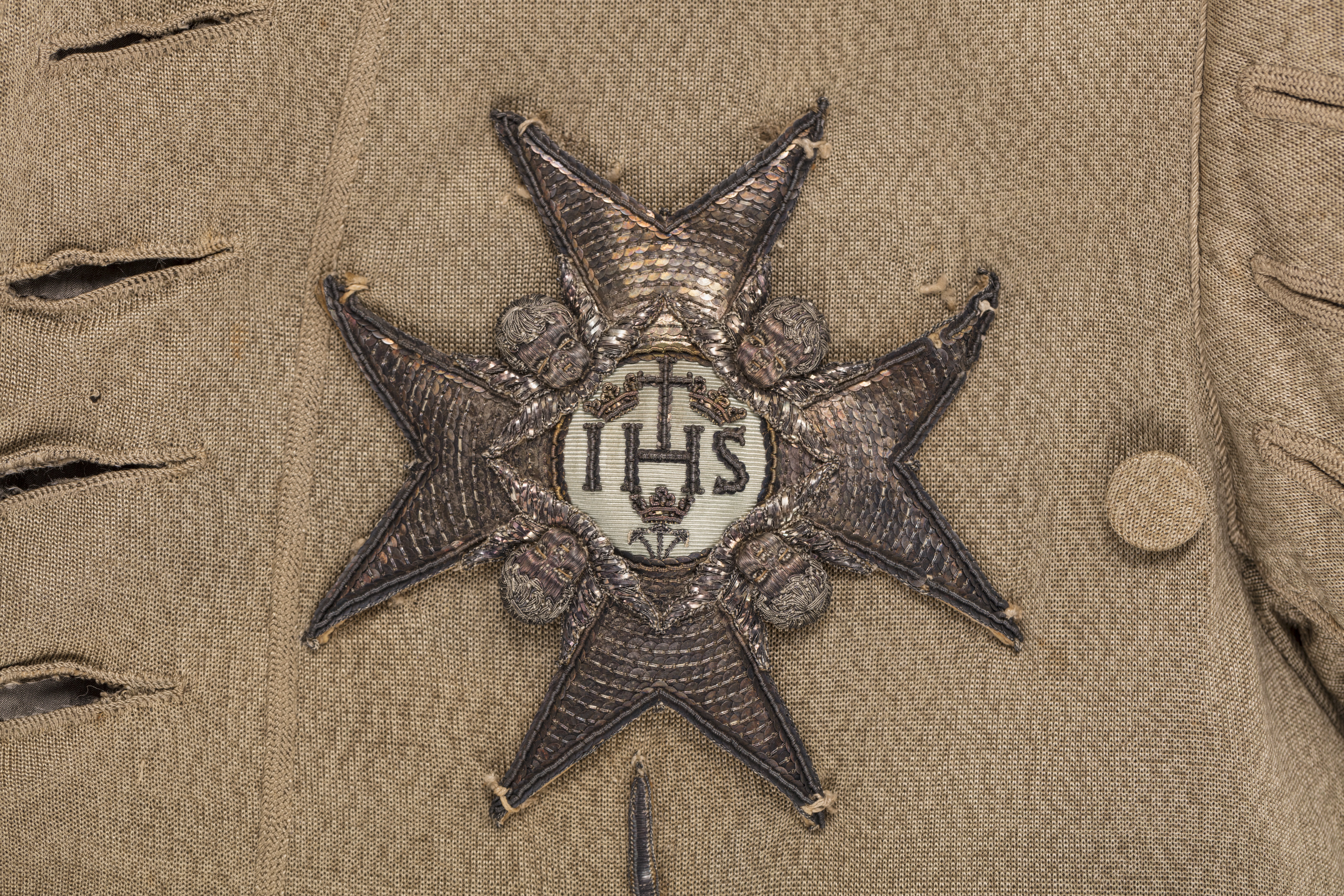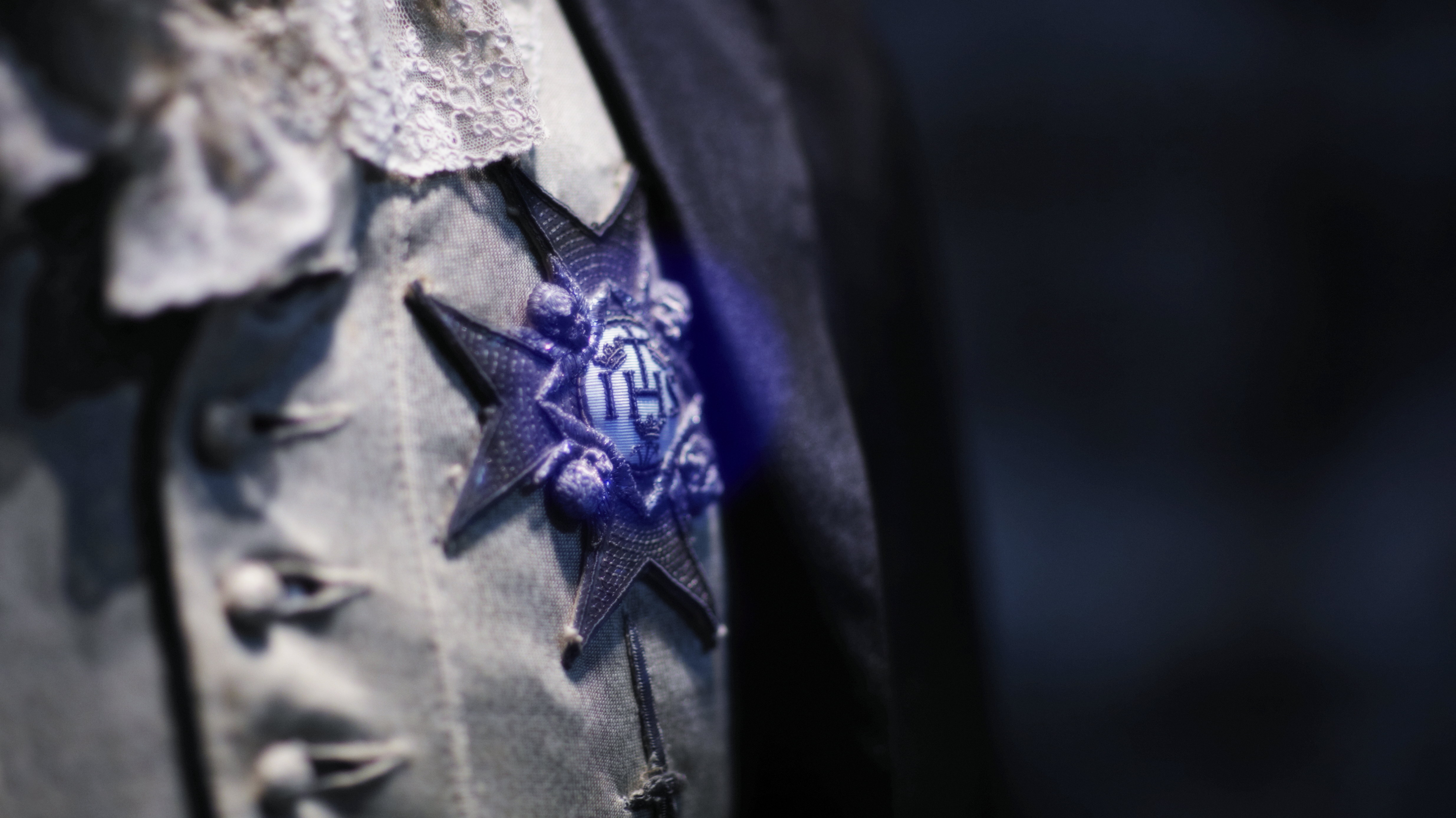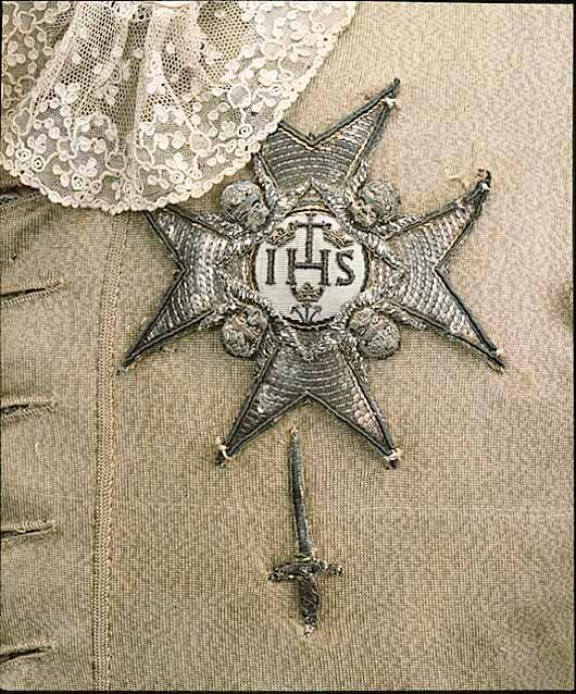 Serafimerkraschan i silverbroderi som sitter fastsydd på Gustav III:s jacka till maskeraddräkten.