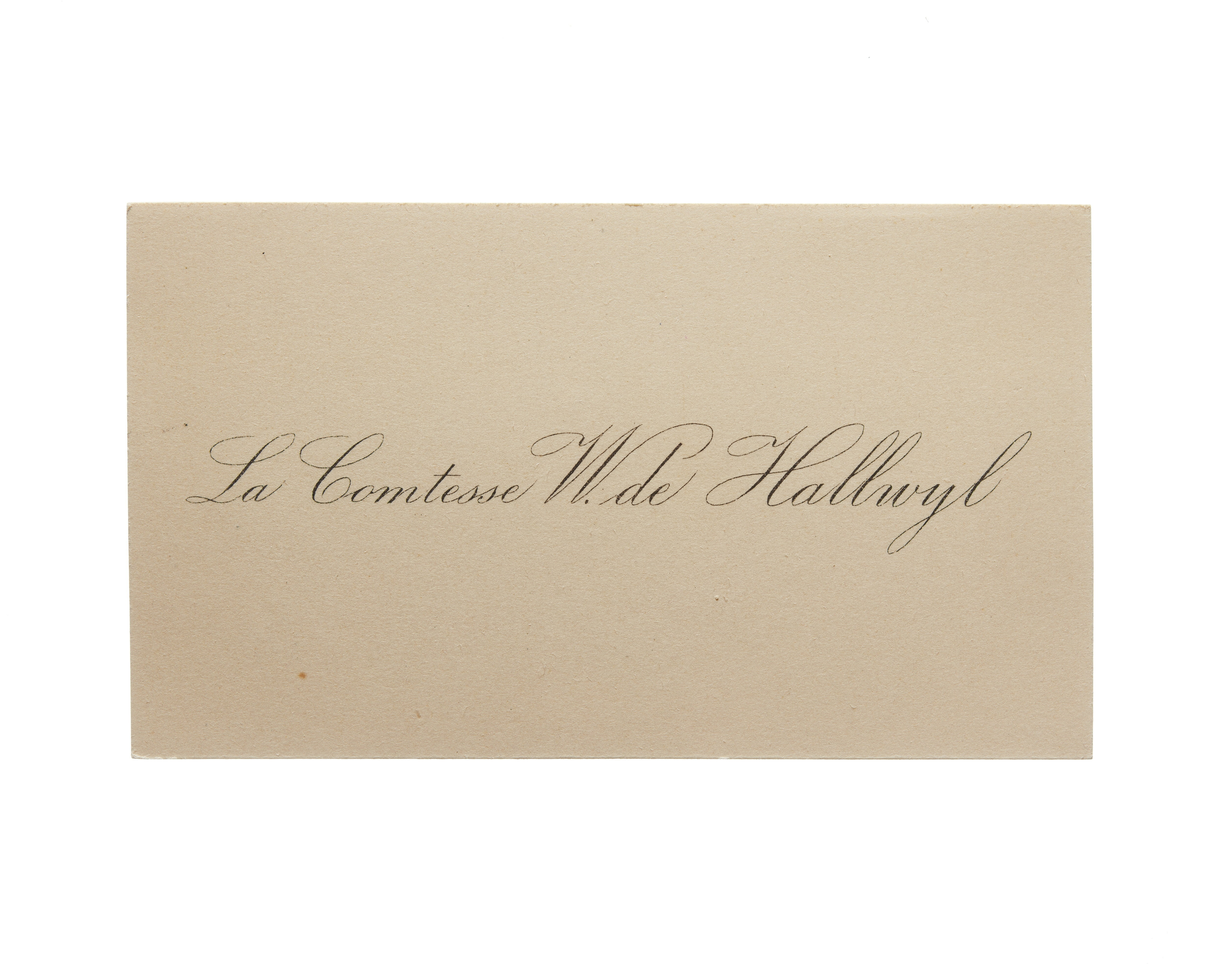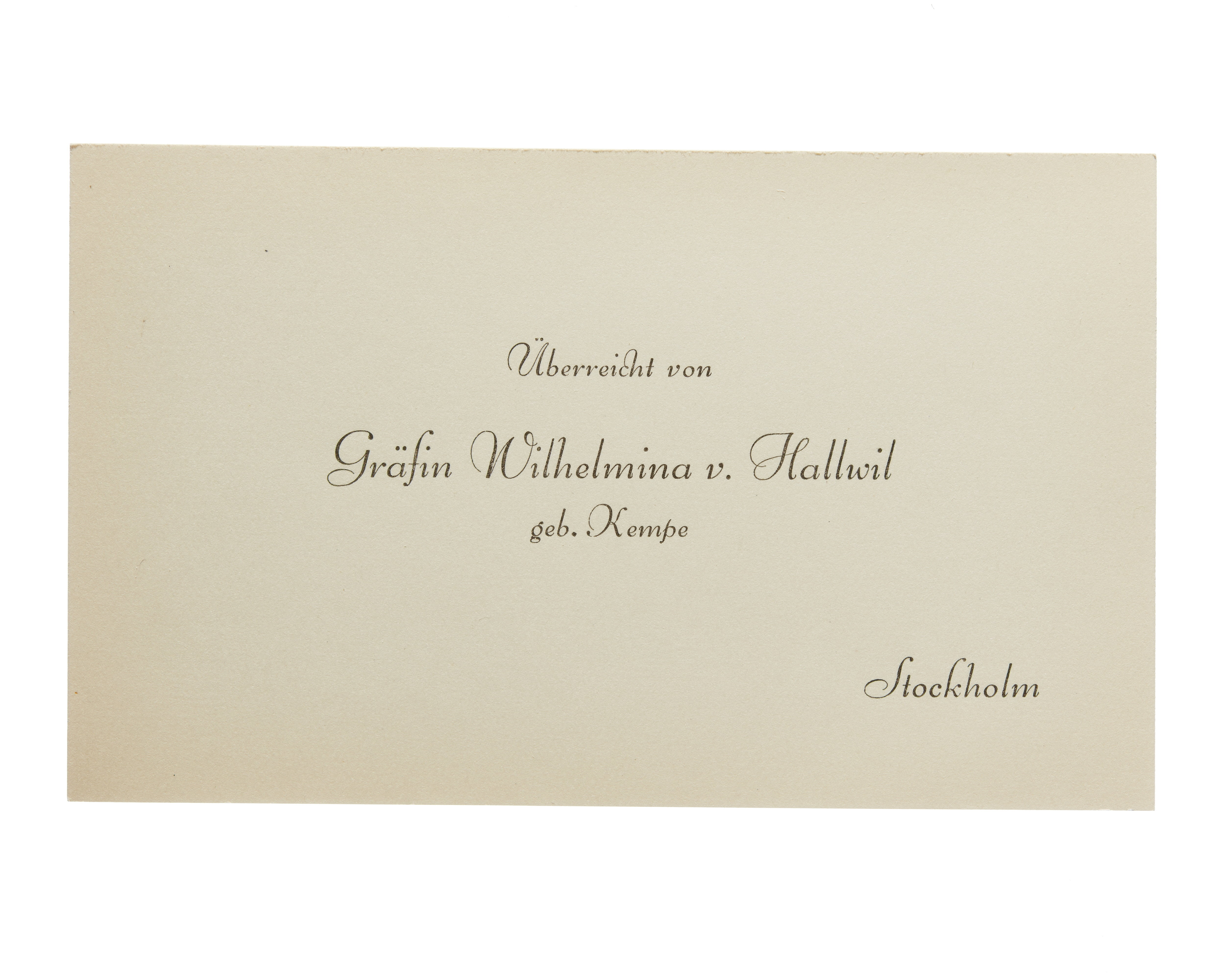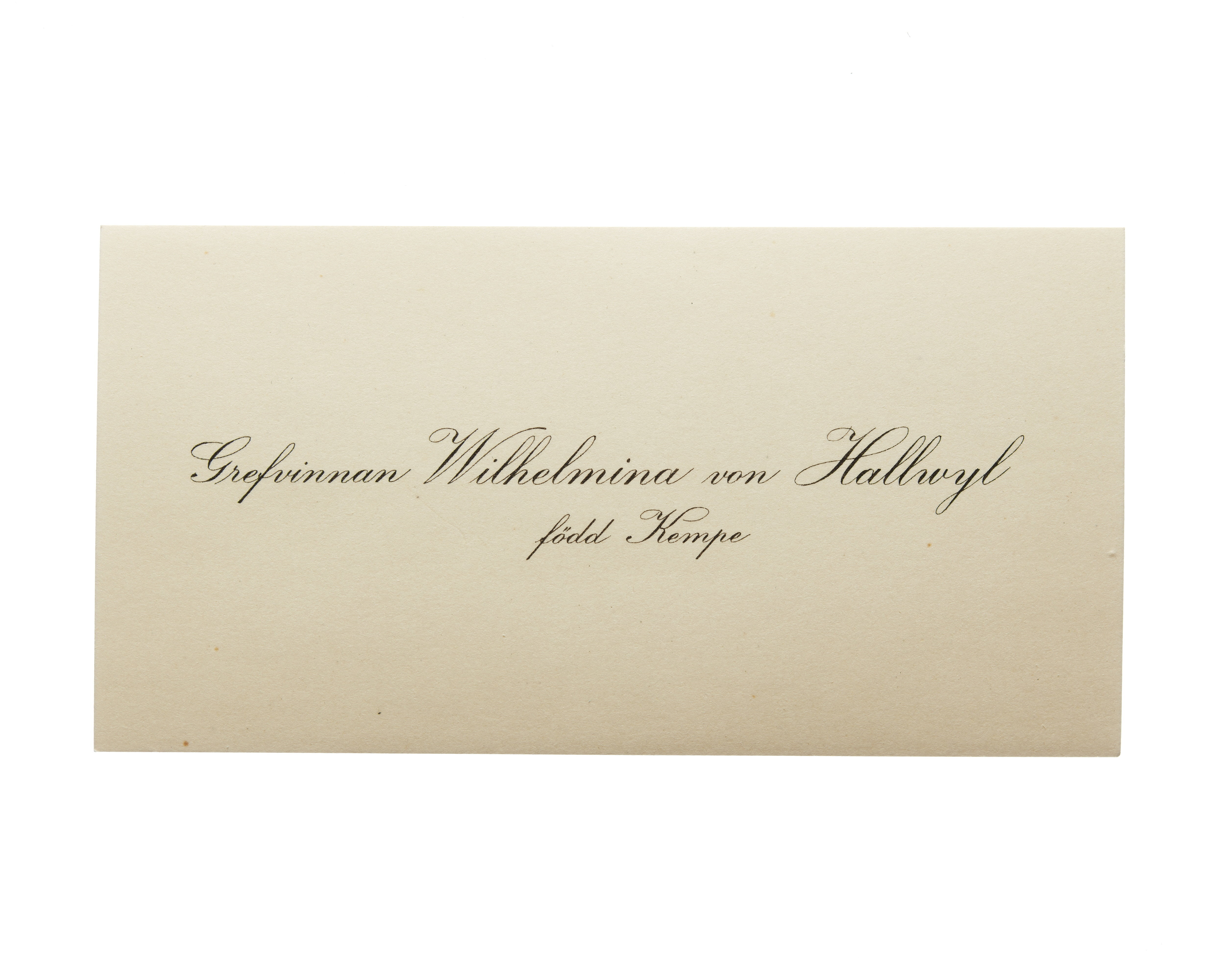 Visitkort från grevinnan Wilhelmina von Hallwyl, f. Kempe