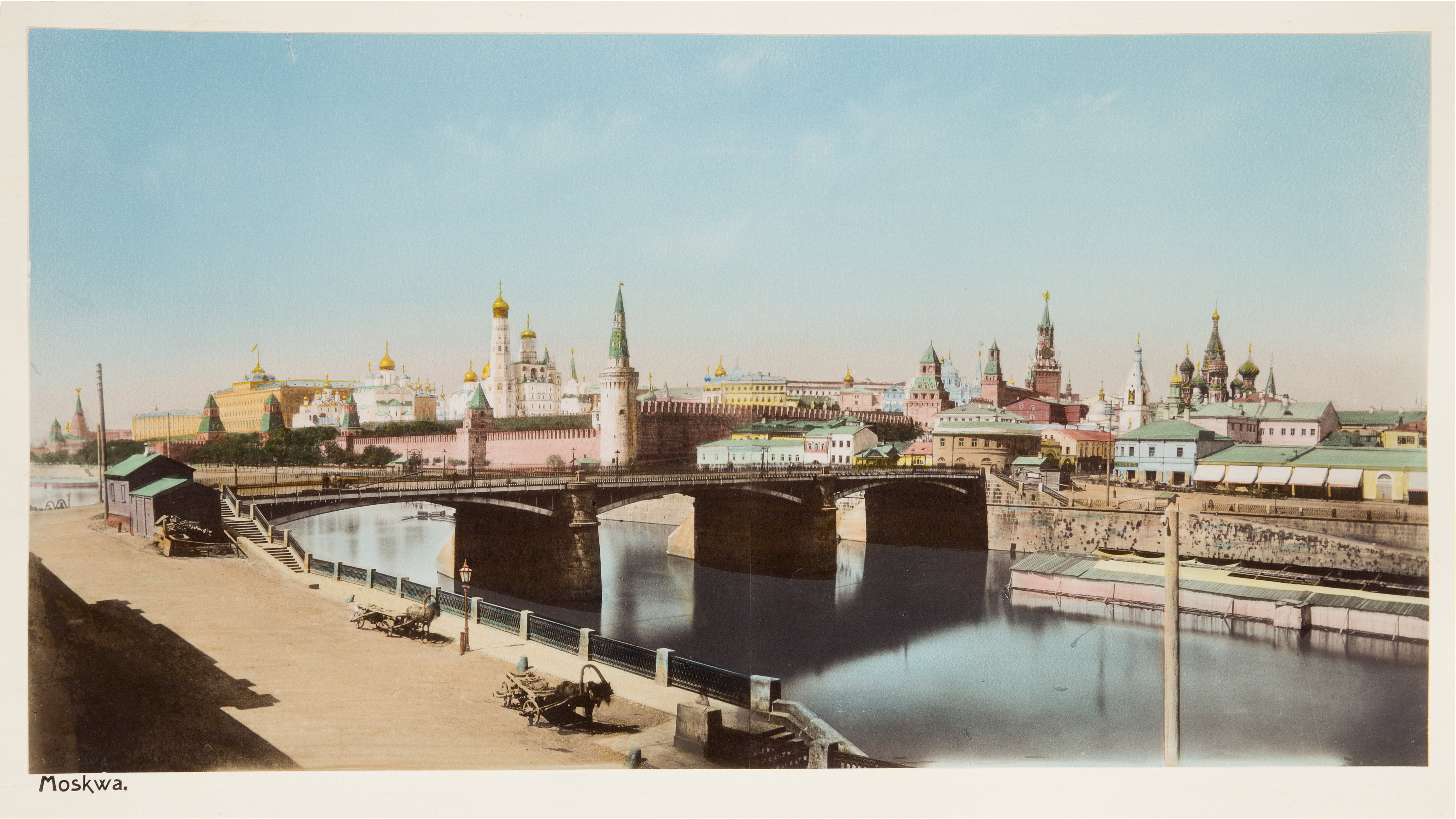 Kolorerat fotografi från Moskva. Foto från en resa genom Polen, Ryssland och Finland, 23 maj-25 juni 1898. Fotografierna LXVI:L.01.-04. är inköpta av Wilhelmina von Hallwyl, f. Kempe, i Moskva. Med på resan var maken Walther von Hallwyl, modern Johanna Kempe, f. Wallis samt fröken Ida Uhse. Uppgifterna kommer från Ida Uhses reseanteckningar.