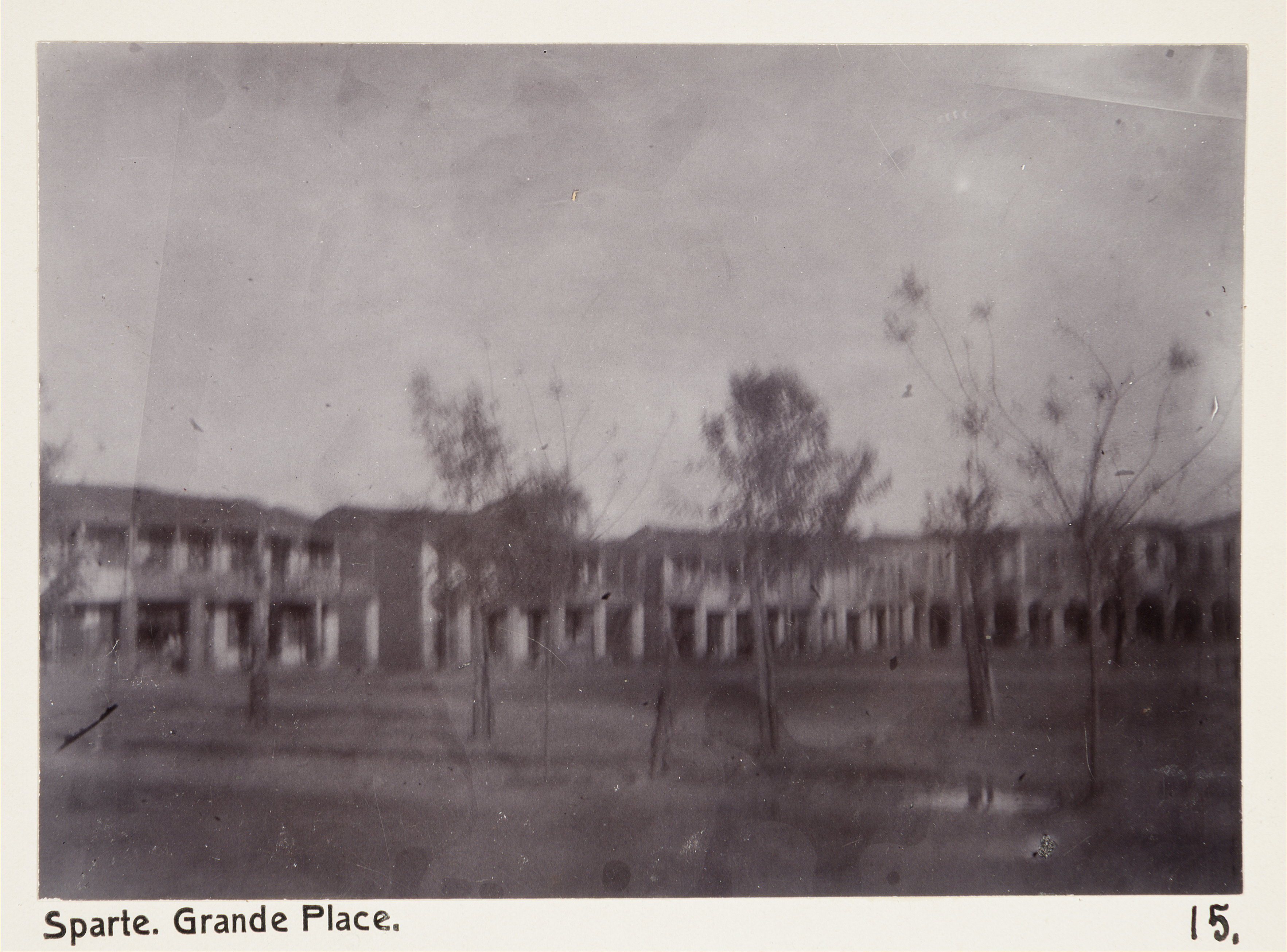 Stora torget i Sparta. Text på originalet: Sparte. Grande Place. Foto från resa genom Grekland, Makedonien och Serbien, 15 mars-6 juni 1896. Fotografierna LXVI:K.01.-17. är tagna av Wilhelmina von Hallwyl, f. Kempe. Med på resan var maken Walther von Hallwyl och fröken Ida Uhse. Uppgifterna kommer från Ida Uhses reseanteckningar.