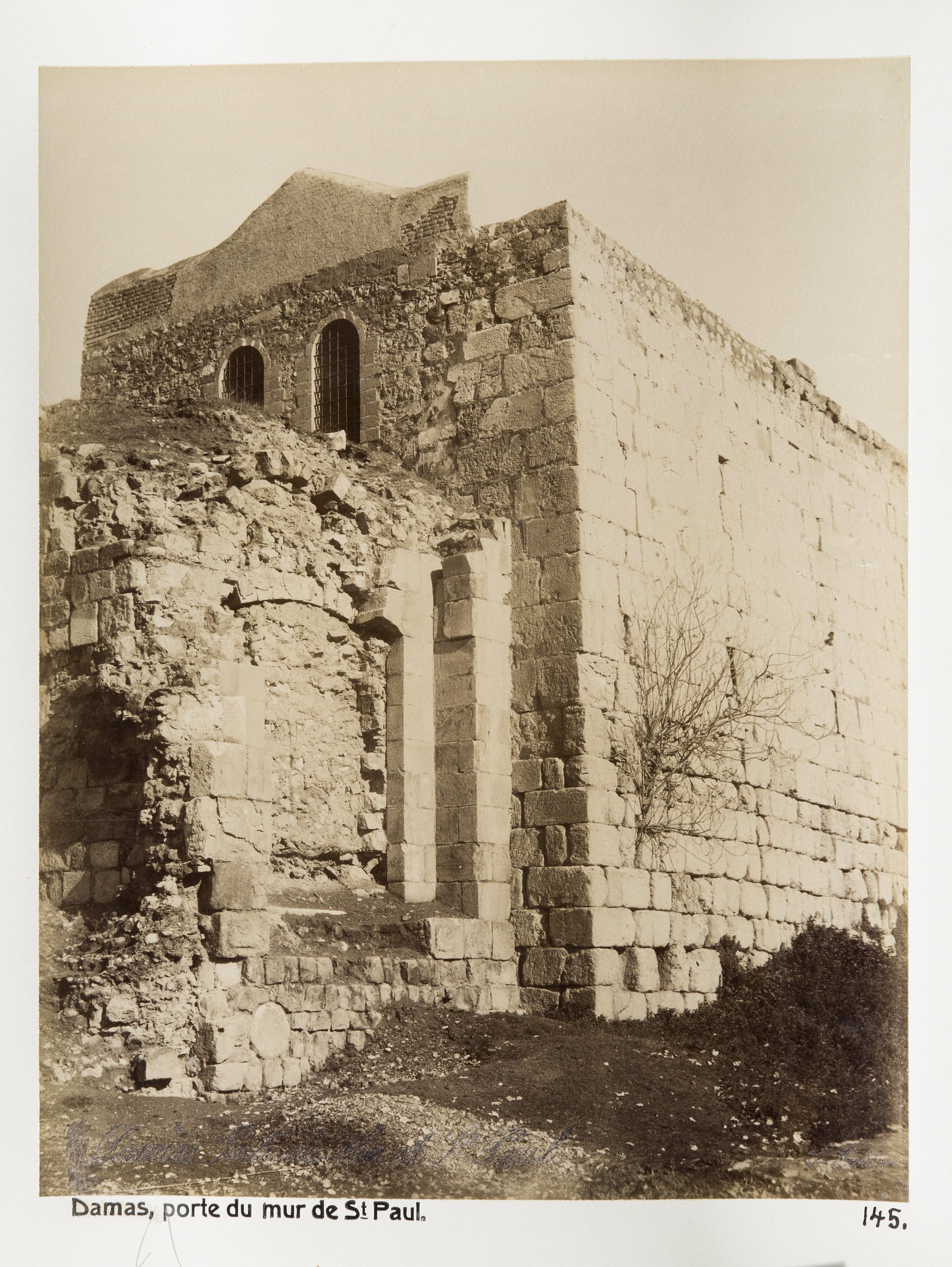 Port i S:t Paulus mur, Damaskus. Text på originalet: "Damas. Porte du mur de St. Paul." Fotografierna LXVI:N.01.-180. kommer från resan till Palestina och Syrien som Wilhelmina och Walther von Hallwyl gjorde den 30 mars-27 april 1901. De lämnade Sverige den 5 november 1900 för Egypten, där de stannade till den 28 mars 1901, då de fortsatte till Palestina. Med på resan var Wilhelminas sällskapsdam, fröken Ida Uhse. Den 27 april fortsatte de till Turkiet och Mindre Asien. De mindre fotografierna (utom de från Samos) LXVI:N.90.-100. är tagna av Wilhelmina själv, under en resa till häst från Jerusalem till Damaskus 8-20 april 1901. Övriga fotografier är inköpta av Wilhelmina i Jerusalem, Damaskus och Beirut. Alla uppgifter kommer från Ida Uhses reseanteckningar.