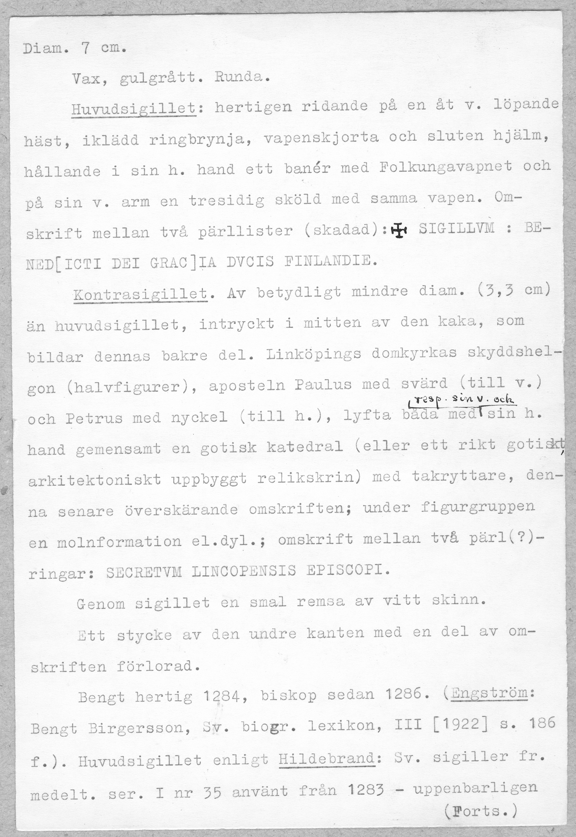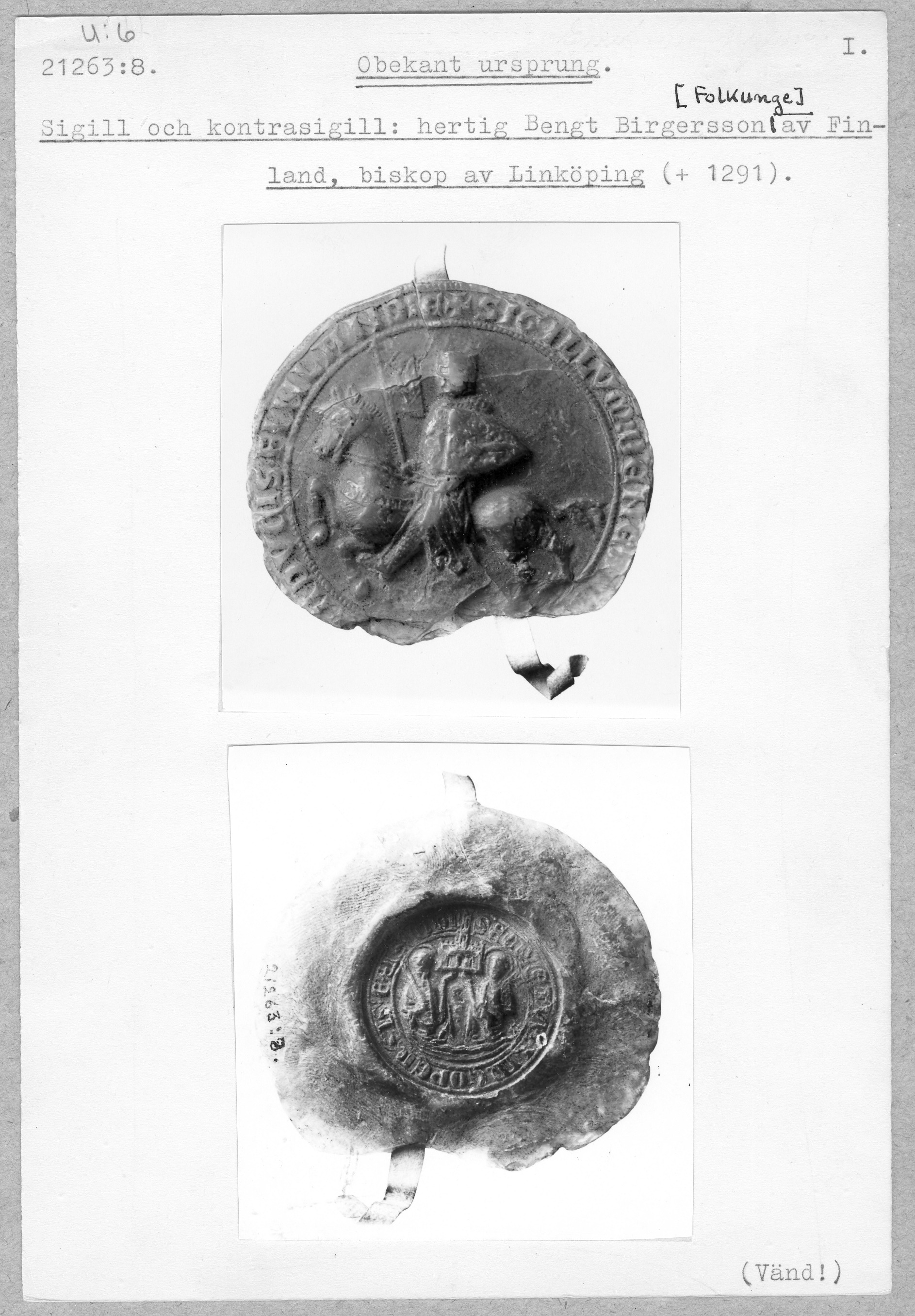 sigill: och kontrasigill: hertig Bengt Birgersson