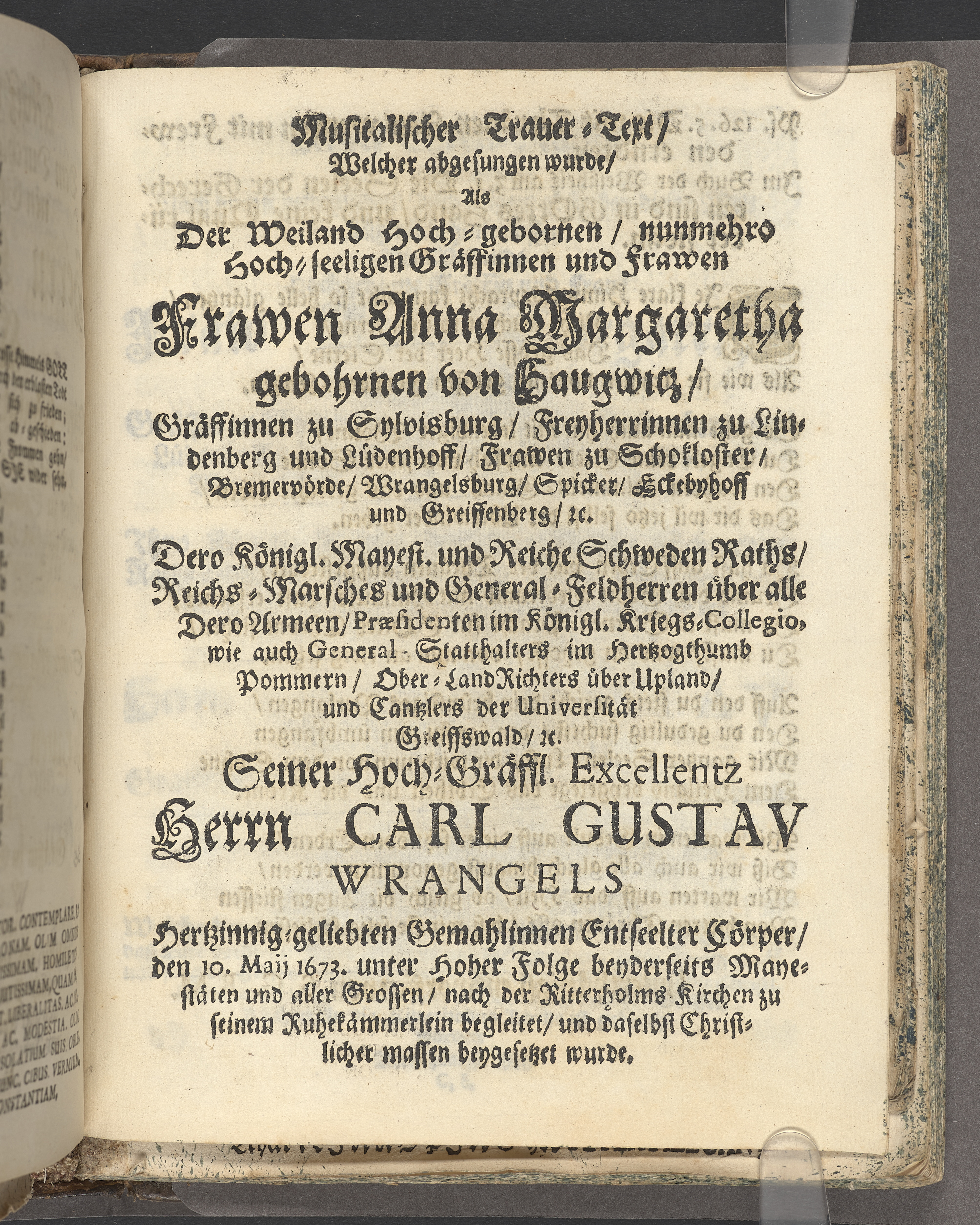 Suprema pietas, ...Dominae Dn. Annae Margaretae Wrangelin, nata de Haugwitzen.