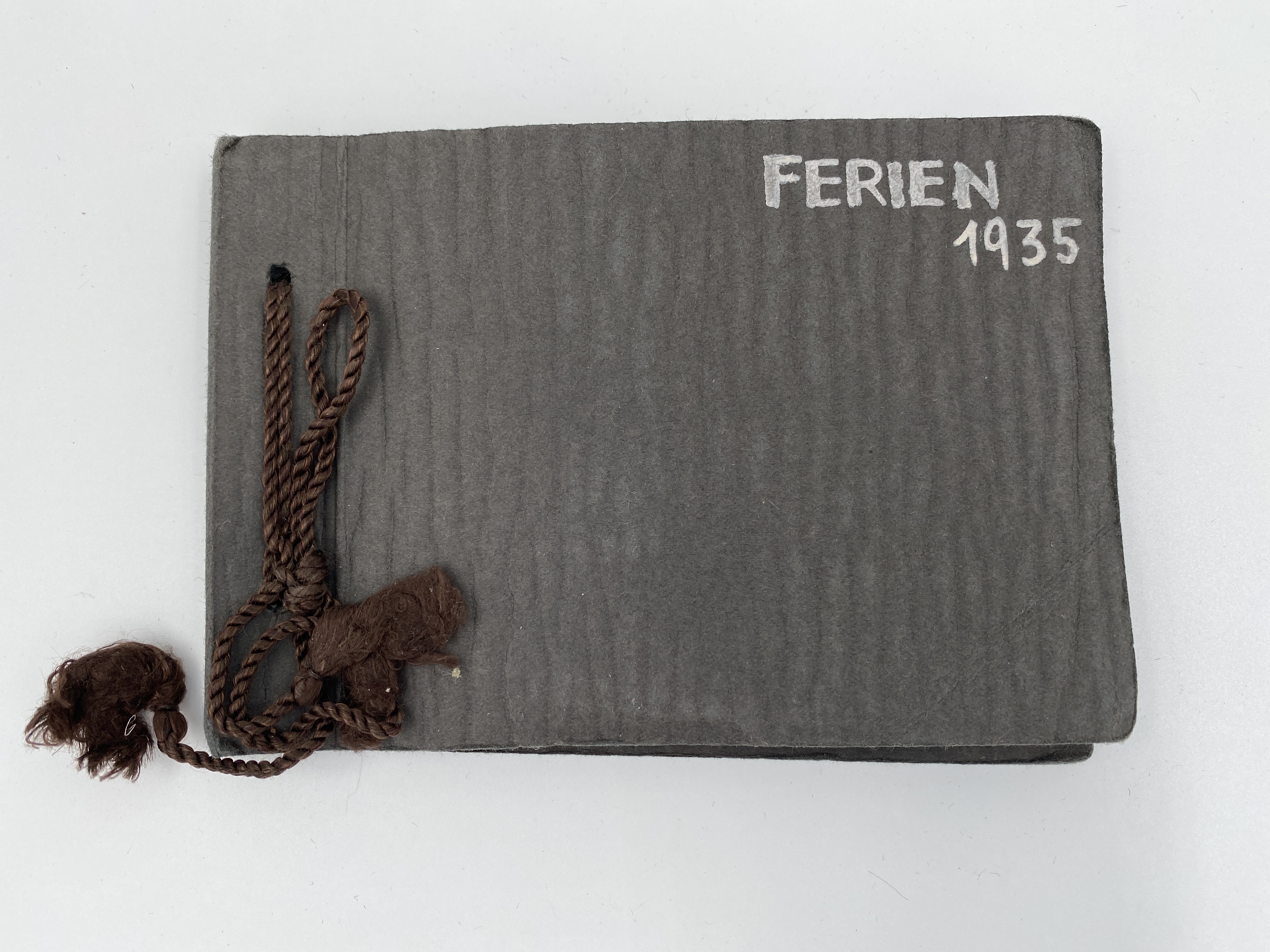 Litet brunt fotoalbum sammanhållet at ett brunt snöre. Albumet har tillhört Auguste Sommer, och är märkt "Ferien 1935". Det innehåller svartvita fotografier från olika platser i (troligen) Österrike. I albumet finns 15 lösa fotografier.