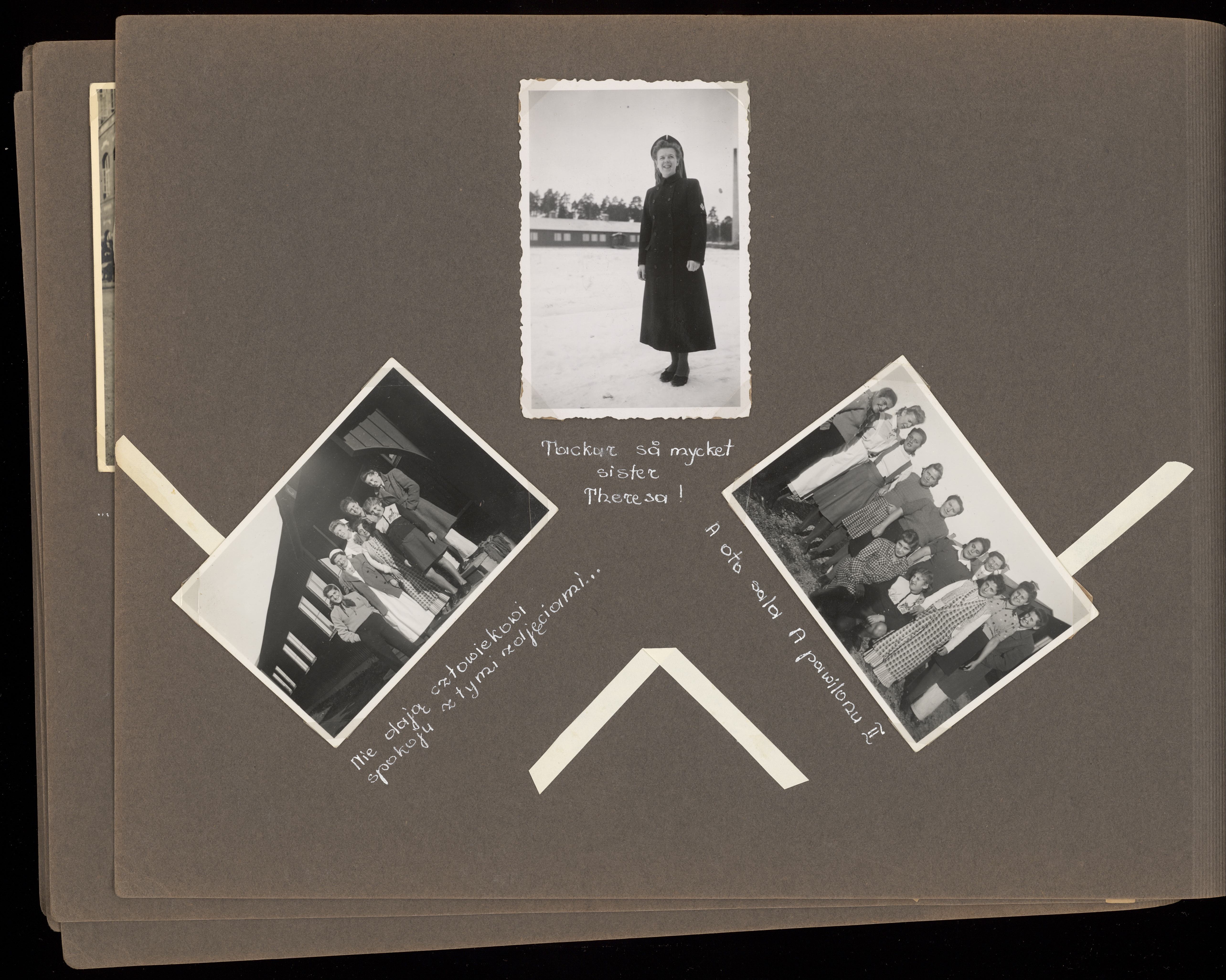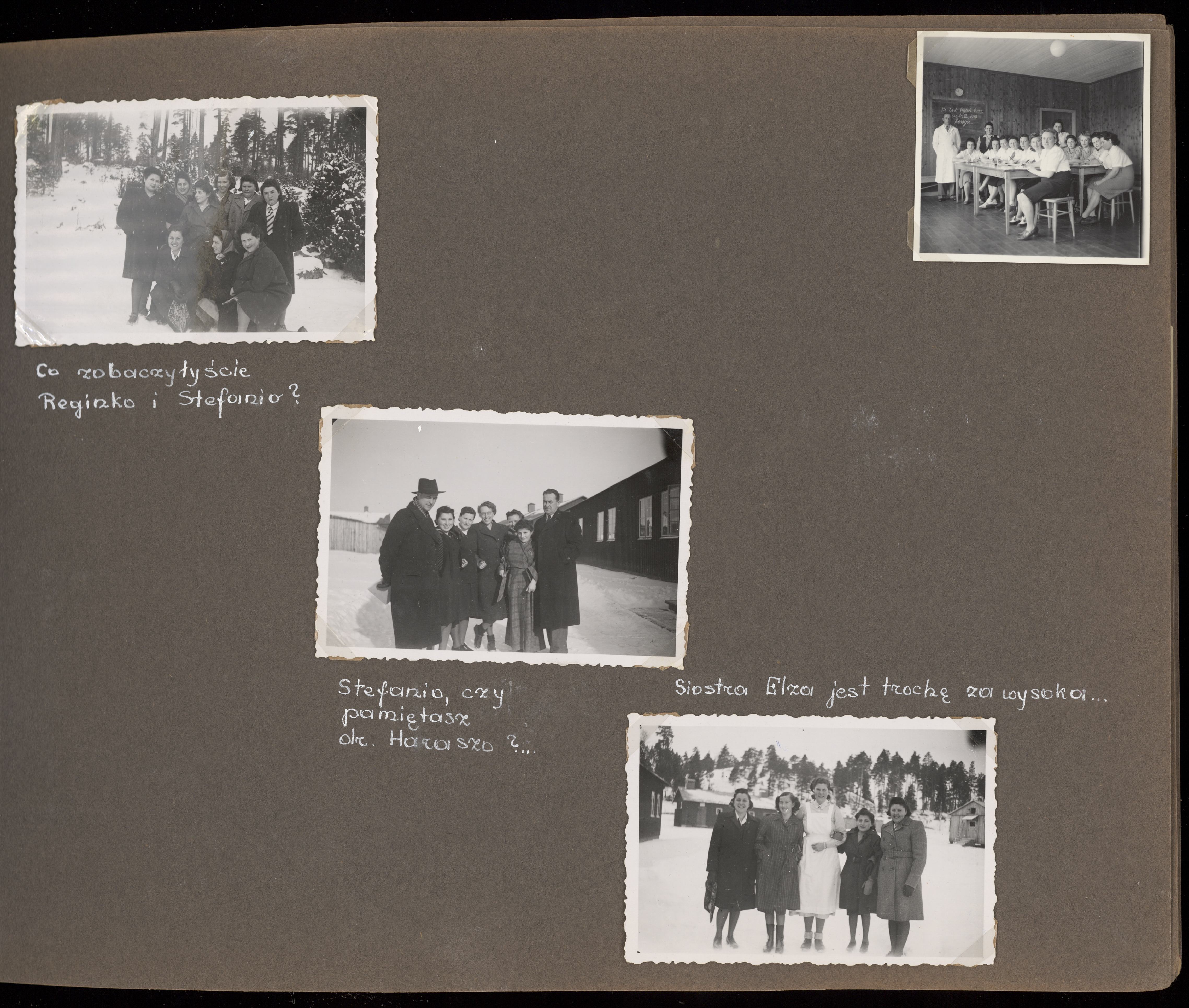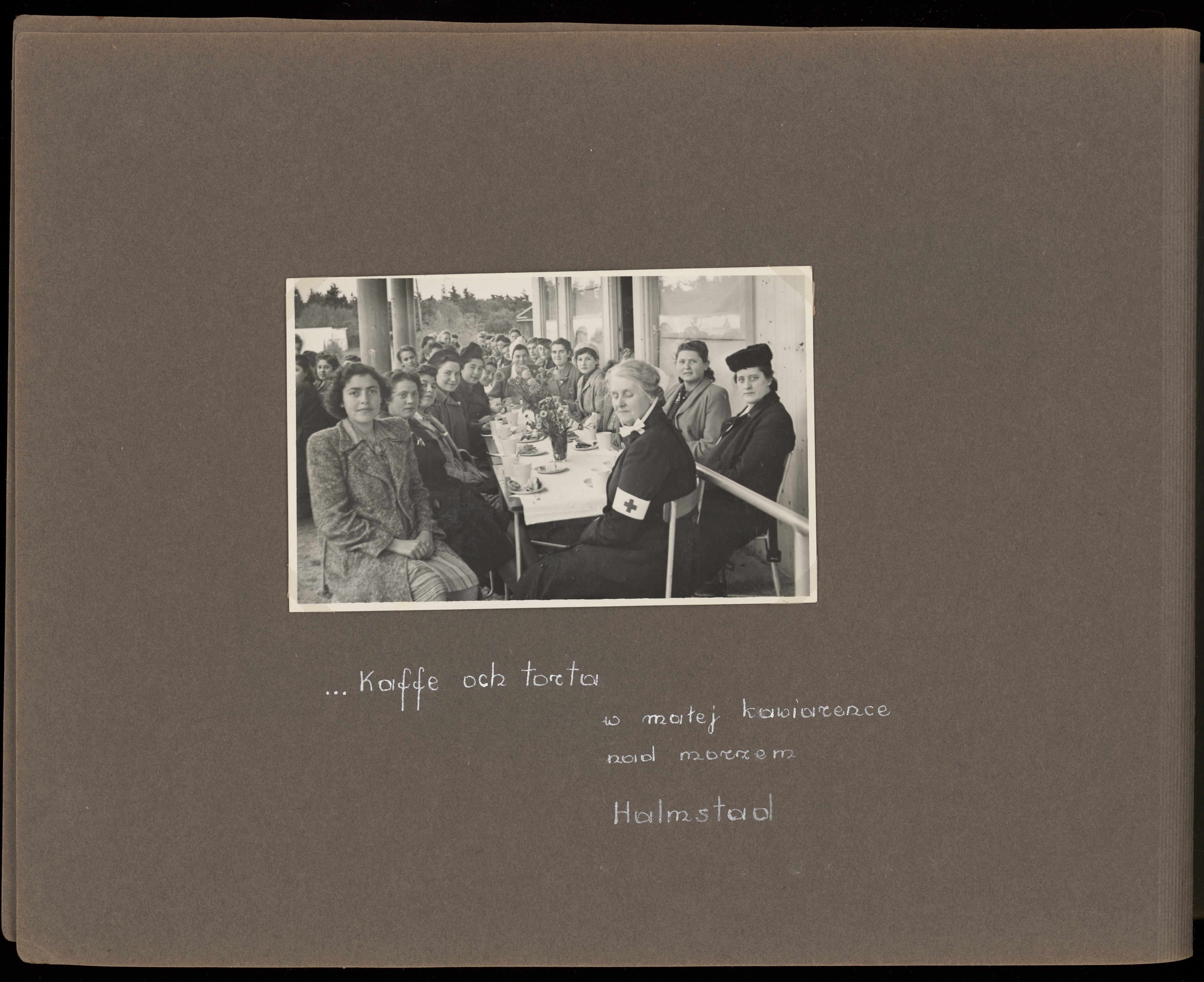 Brunt fotoalbum med svartvita bilder från beredskapssjukhusen i Halmstad och Rosöga, sammanställt av Stefania Frysztajer 1945.