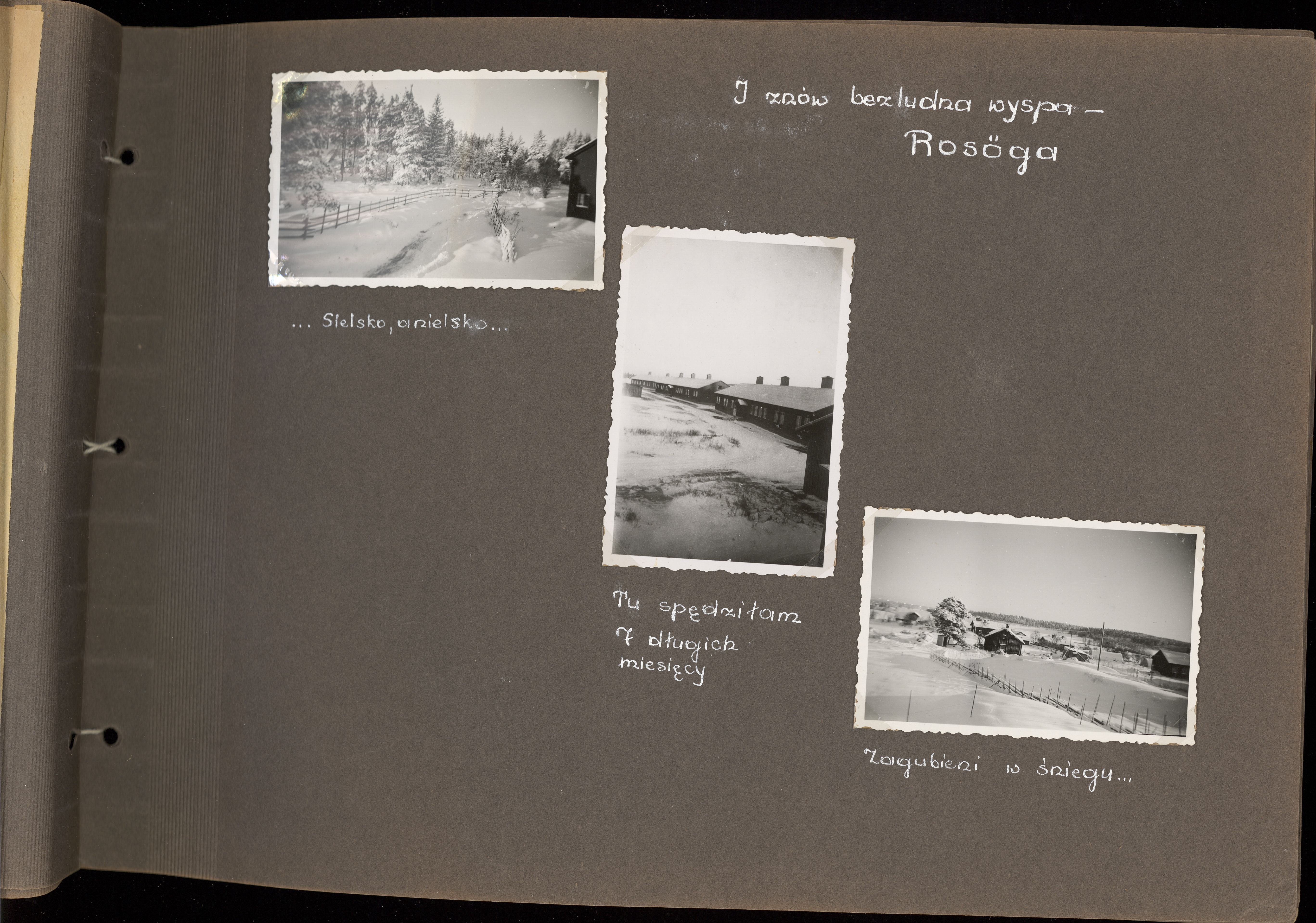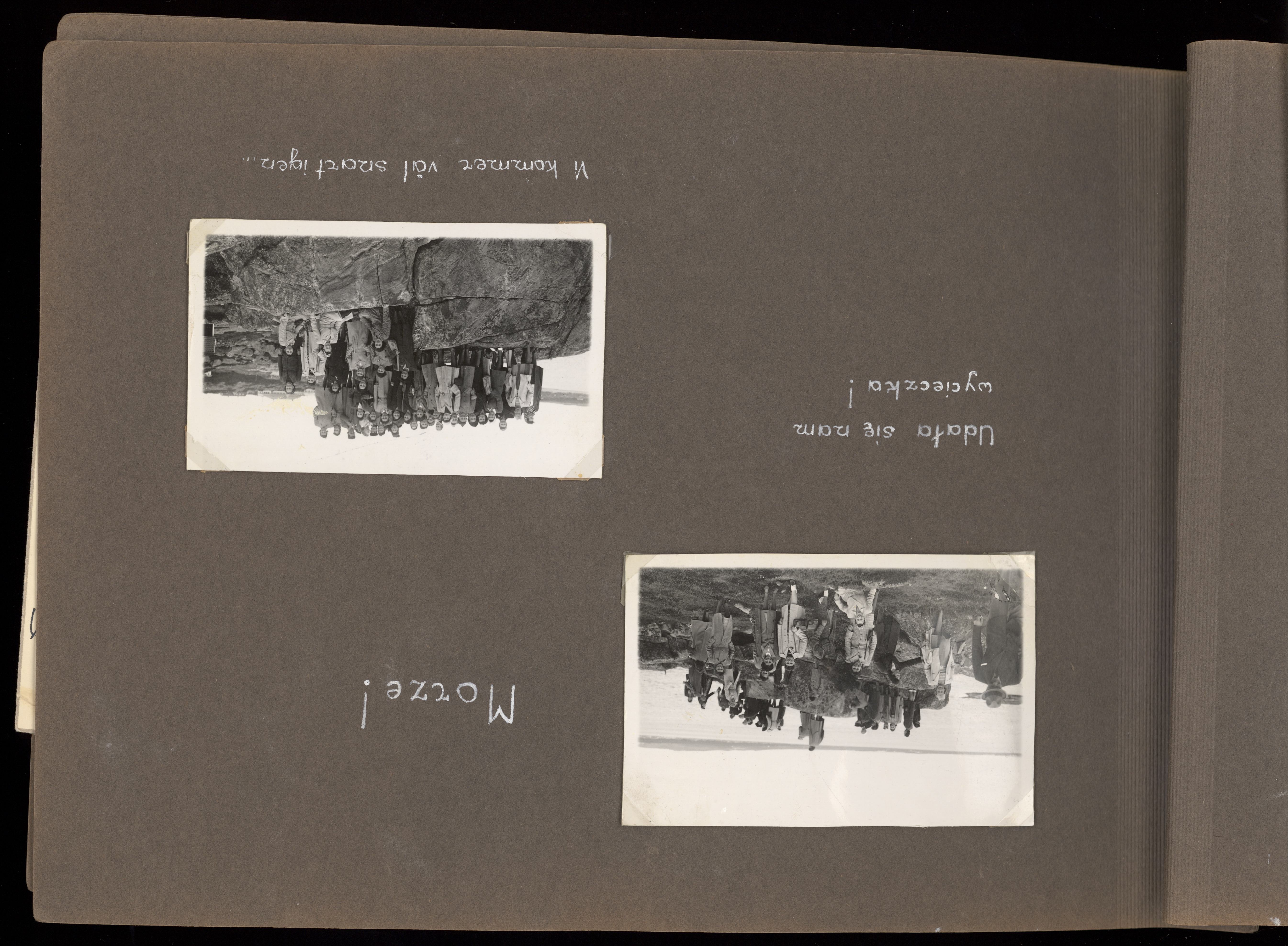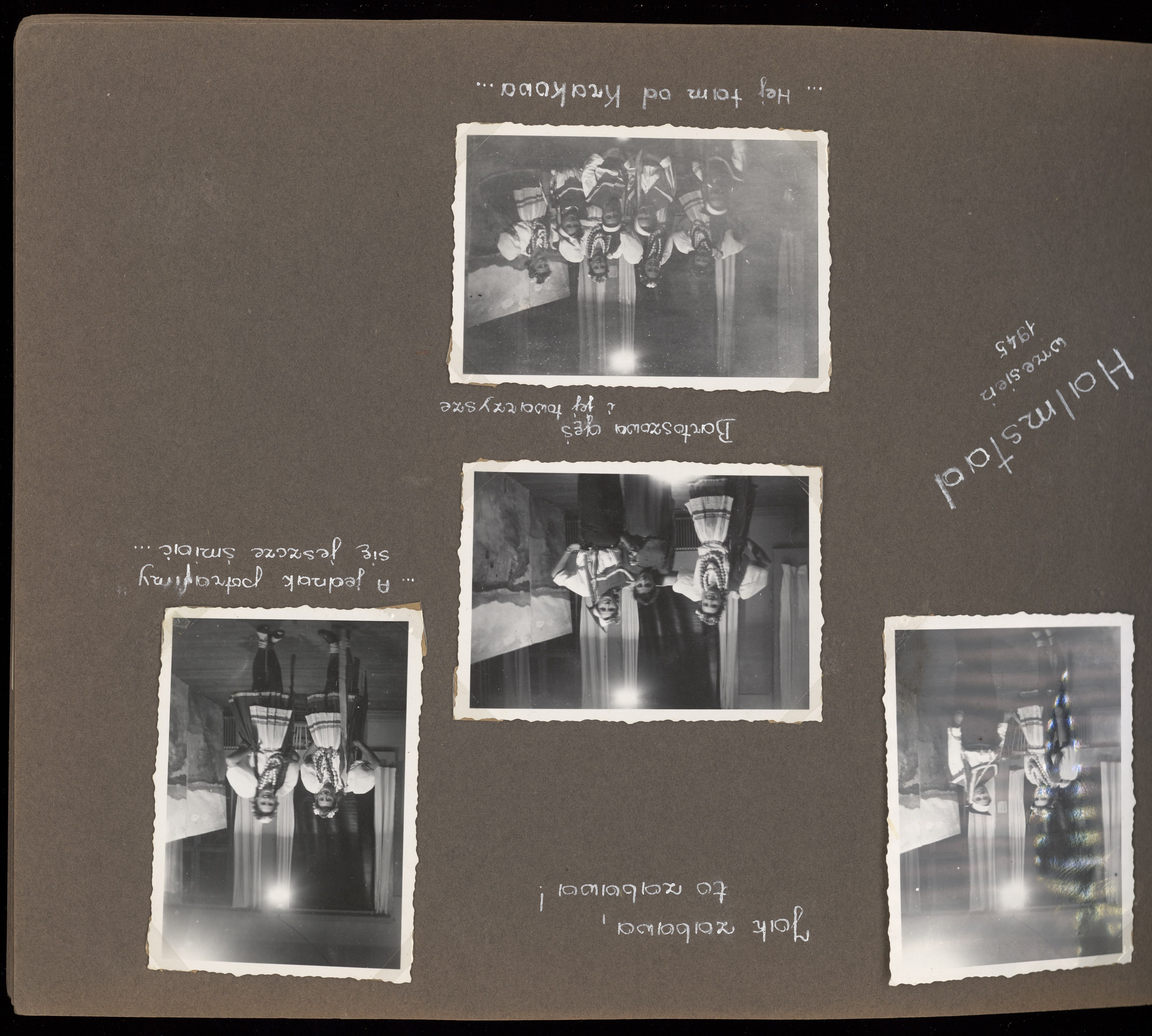 Brunt fotoalbum med svartvita bilder från beredskapssjukhusen i Halmstad och Rosöga, sammanställt av Stefania Frysztajer 1945.