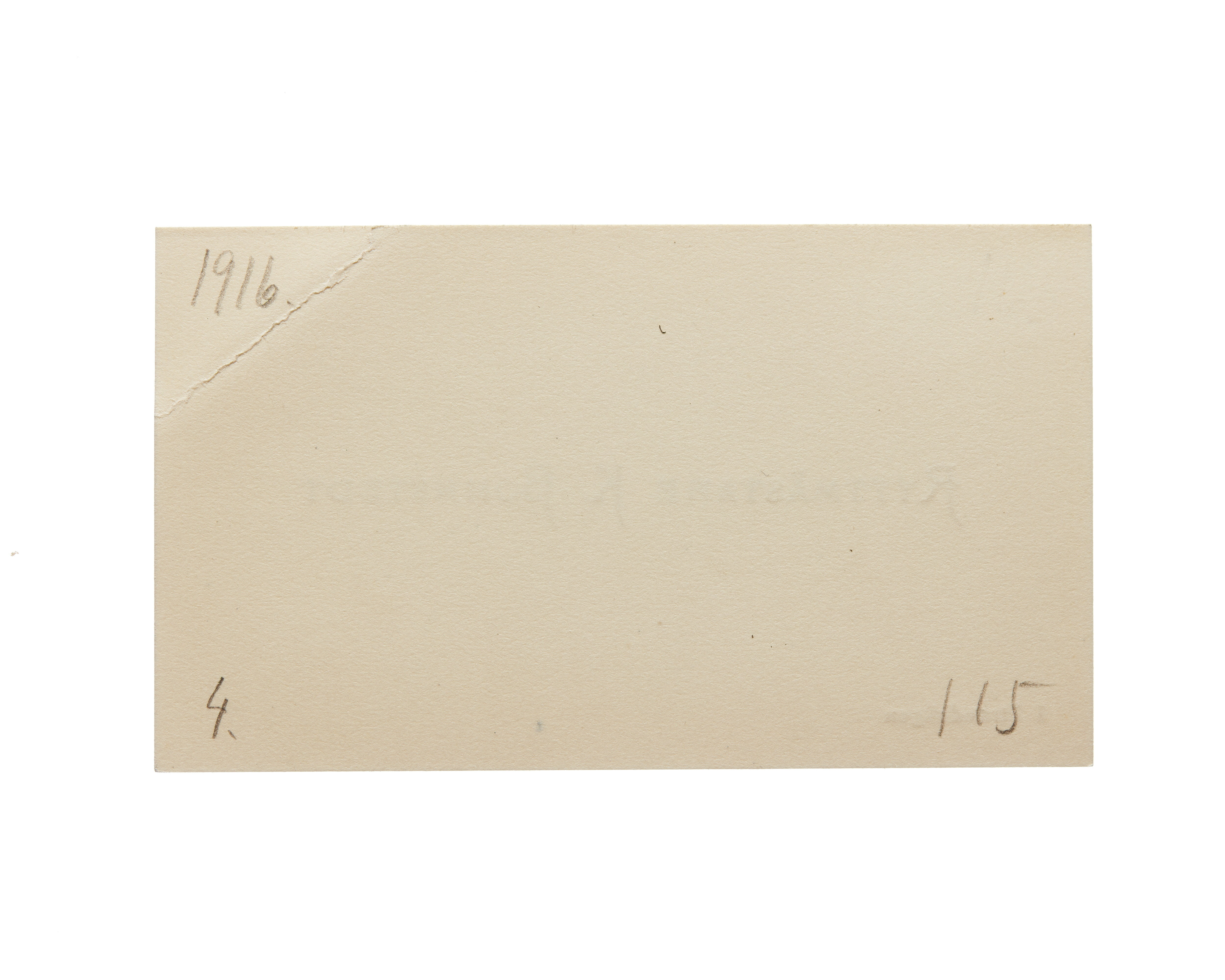 Fyra visitkort från Ryttmästare Knut Bohnstedt. Första kortet är utan datum, vikt i övre högra hörnet, adress (nedre vänstra hörnet) 1 Strandvägen. Andra kortet daterat 1915, vikt i övre högraq hörnet. Överlämnat i samband med Vilhelminas bilolycka i 1915. Tredje kortet daterat 1916, vikt i övre högra hörnet. Fjärde kortet daterat 1916, vikt i övre högra hörnet.