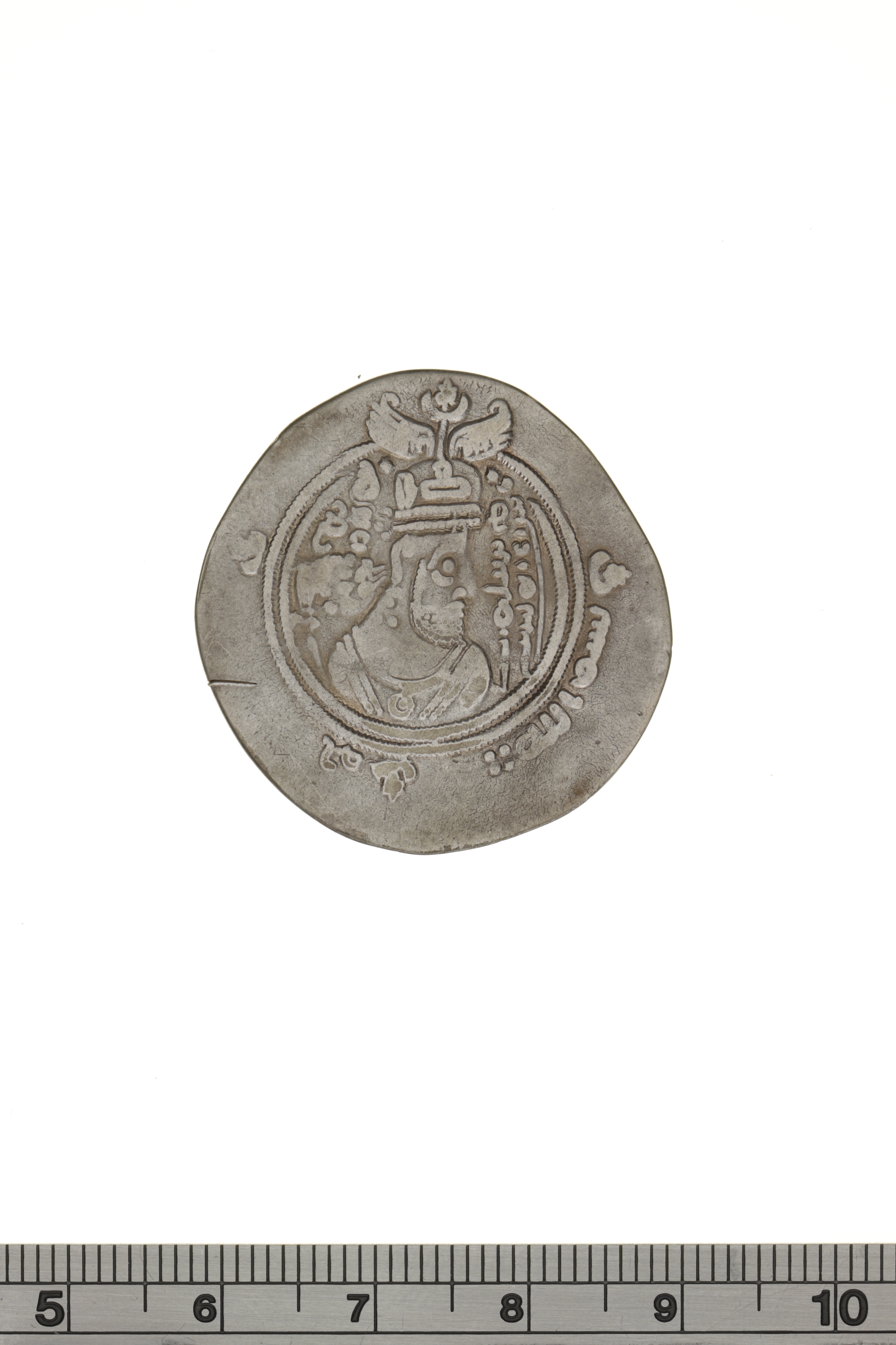 Upphov: Al-Muhallab ibn Abi Suffrah. Media: Audy, Florent. Ekonomiska museet - Kungliga myntkabinettet/SHM, (CC BY 4.0) Du får bearbeta och dela verket för alla ändamål, även kommersiella, så länge du anger upphovsperson och licensgivare.