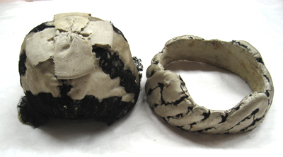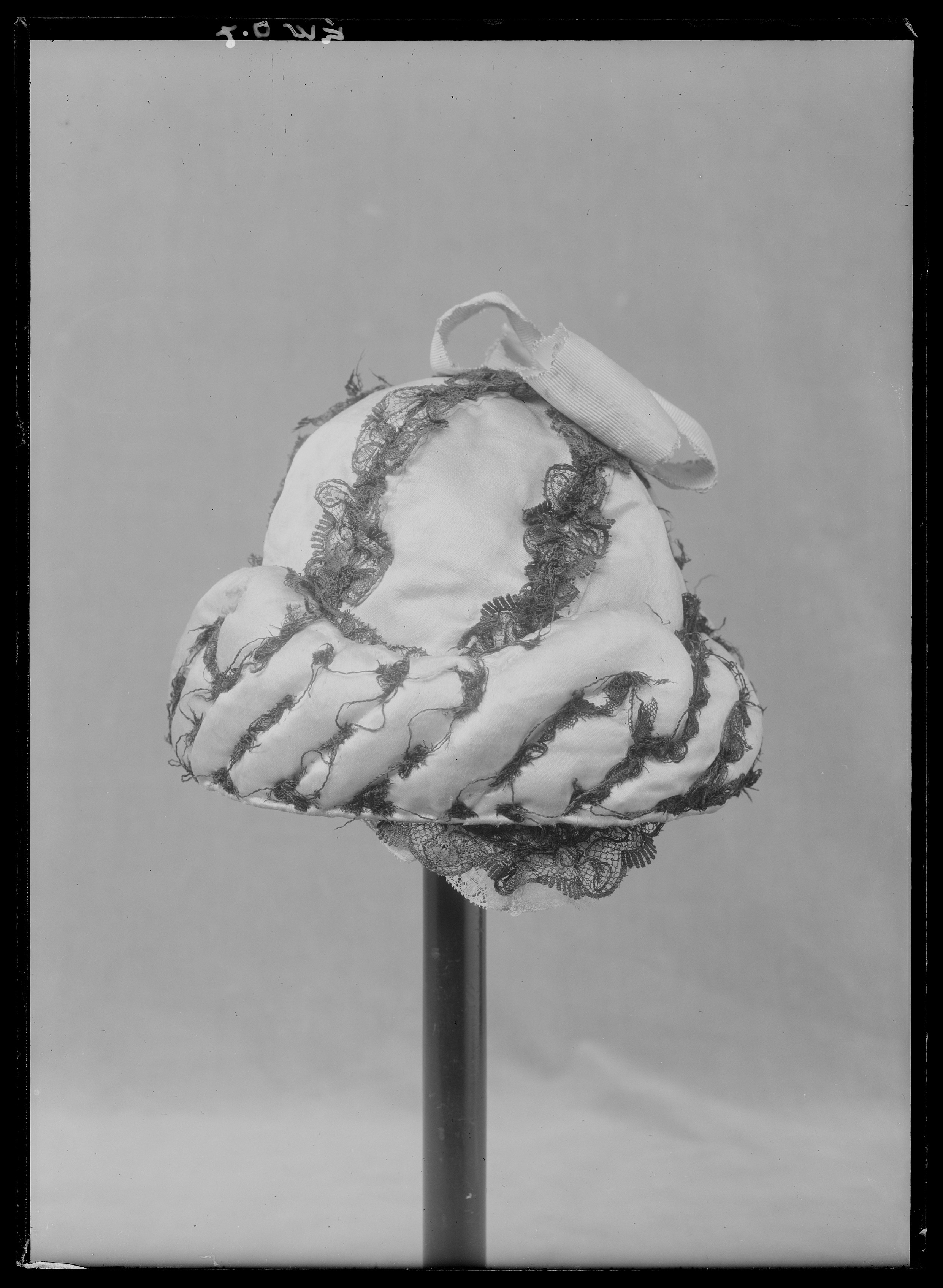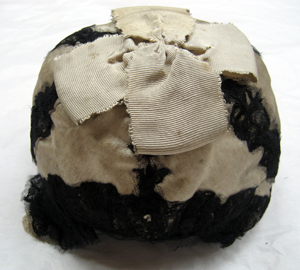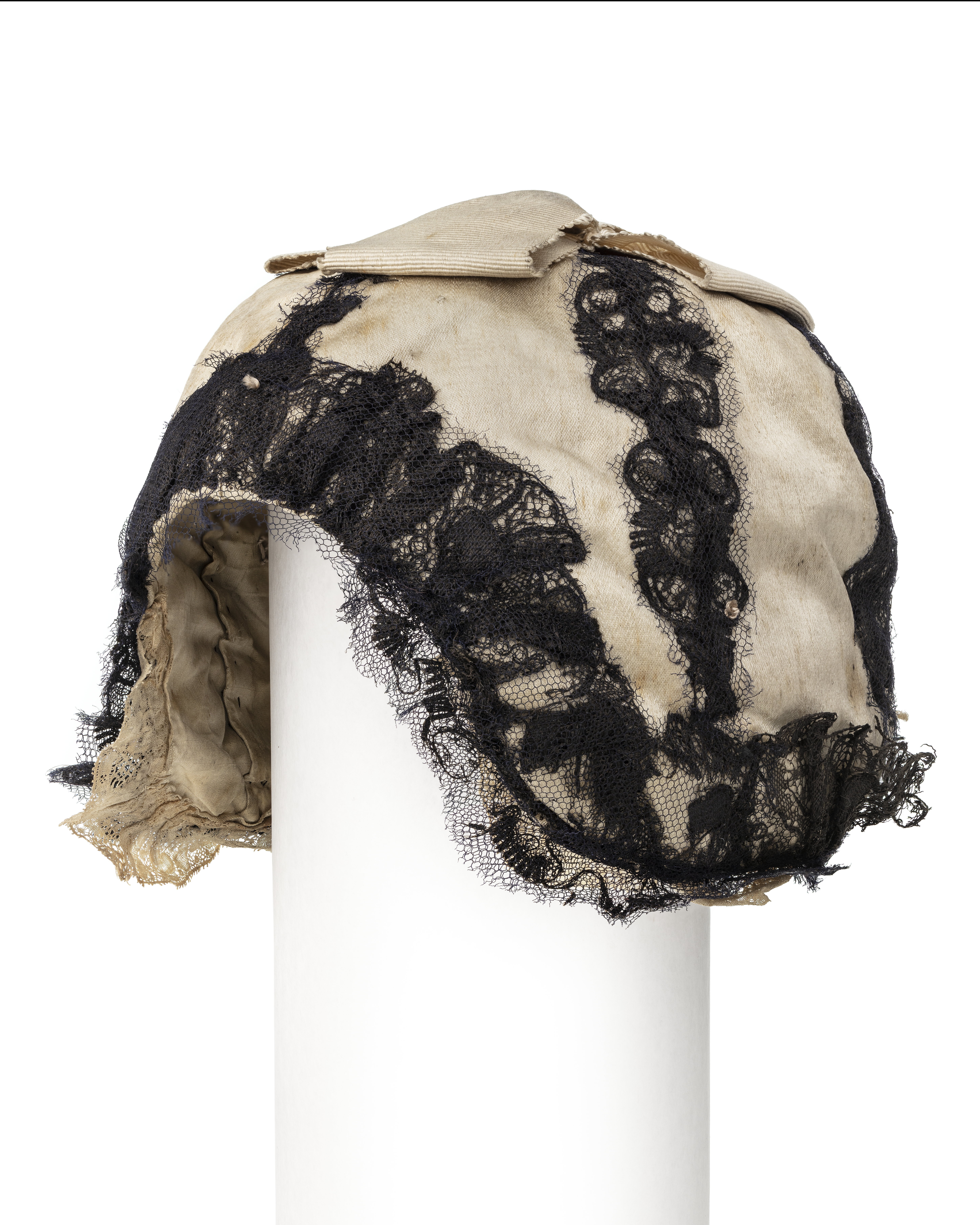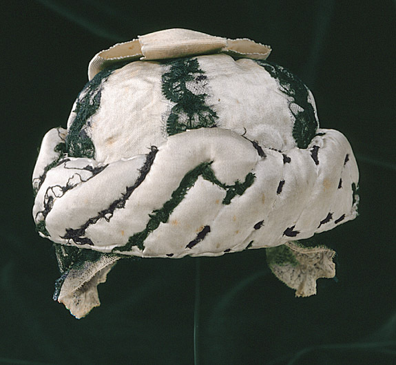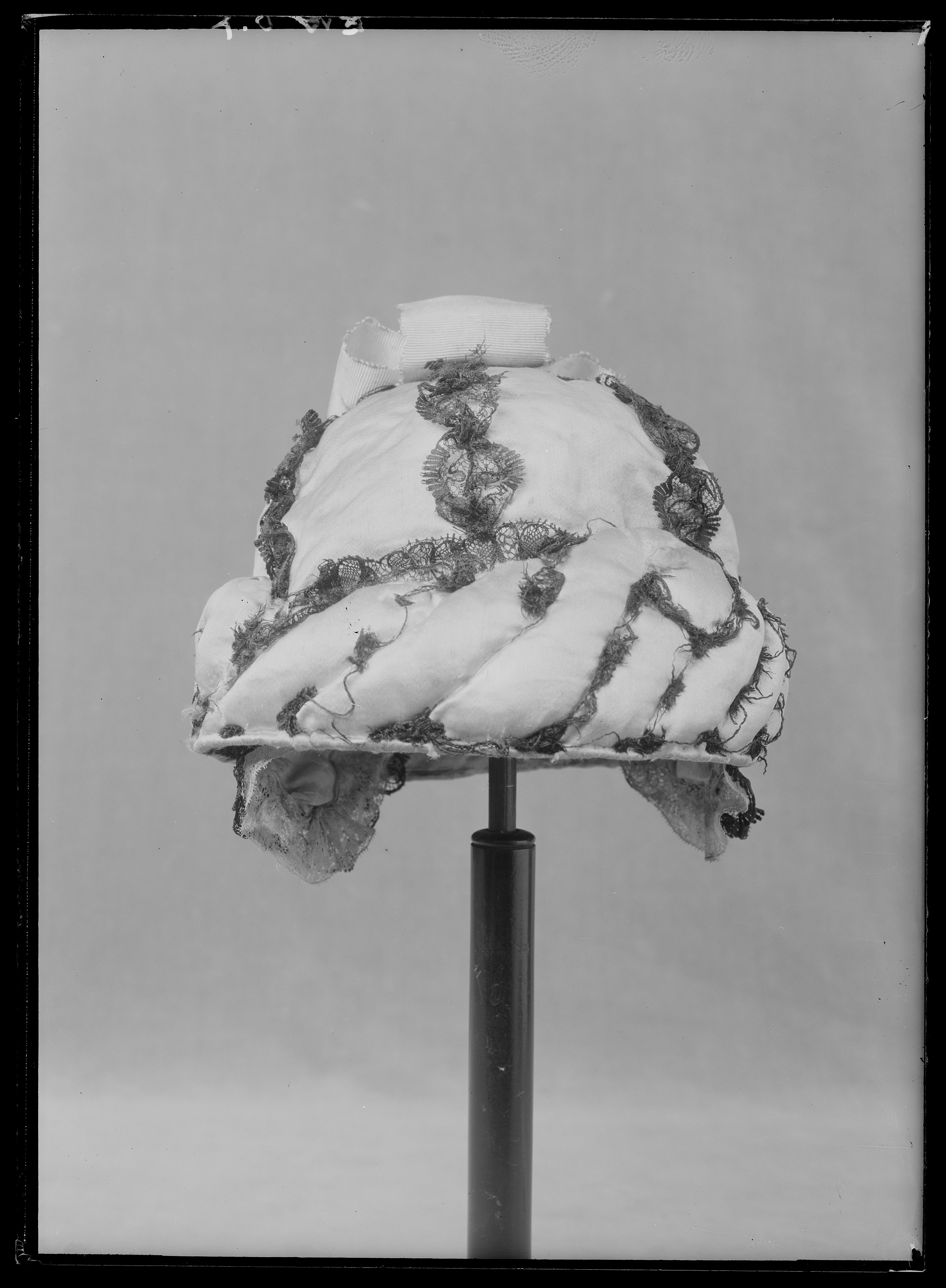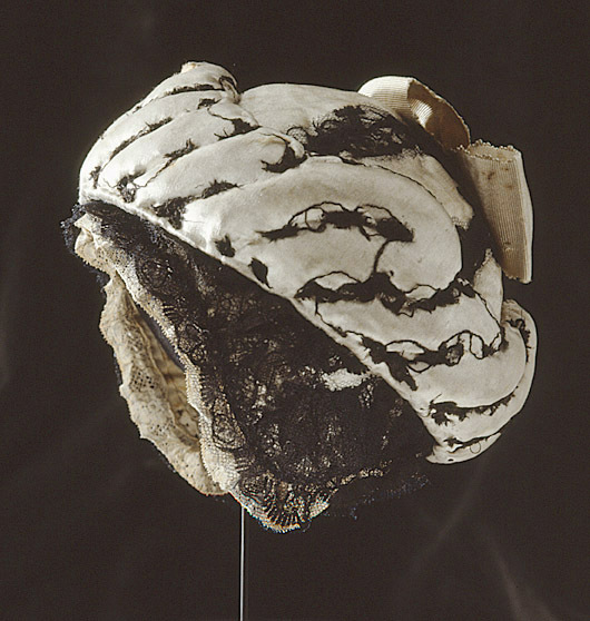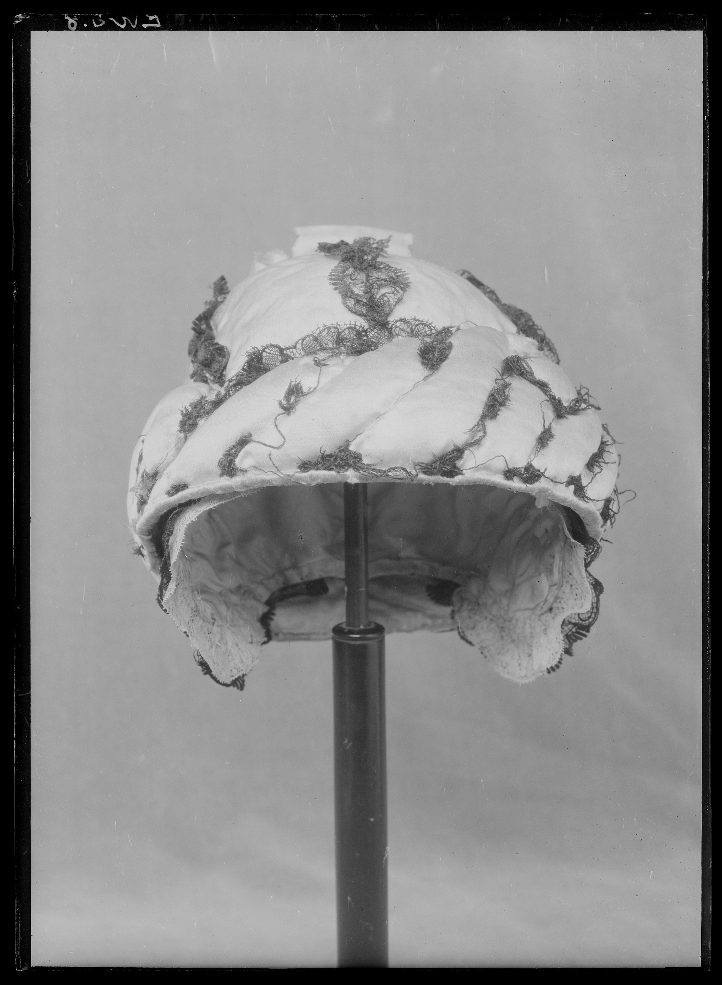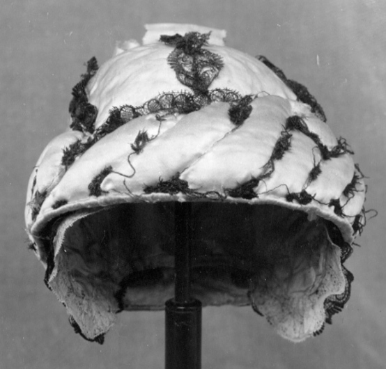 Mössan är av vitt siden, sydd i sex kilar med sömmarna täckta av svarta spetsar. En vit sidenkokard toppar mössan. Hörande till Gustav III:s serafimerdräkt som han bar vid ordens instiftande den 18 (29) april 1748. Till mössan hör en vadderad fallvalk av vitt siden att träs över mössan, formad som en snedräfflad vulst. Valken var ursprungligen garnerad med svarta spetsar, nu bortsprättade.